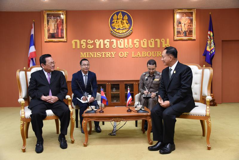 วันที่ ๑๘ มิถุนายน ๒๕๖๑ เวลา ๑๑.๓๐ น. พลตำรวจเอก อดุลย์ แสงสิงแก้ว รัฐมนตรีว่าการกระทรวงแรงงาน ให้การต้อนรับ นายอิทธิ์ ซัมเฮง (H.E.ITH SAMHENG) รัฐมนตรีว่าการกระทรวงแรงงานและฝึกอาชีพแห่งราชอาณาจักรกัมพูชา และคณะ เข้าเยี่ยมวารวะ ณ ห้องรับรอง รัฐมนตรีว่าการกระทรวงแรงงาน ชั้น ๖ อาคารกระทรวงแรงงาน โดยได้หารือถึงความร่วมมือการจดทะเบียนแรงงานต่างด้าวที่ผ่านมา เรื่องของการพิสูจนสัญชาติแรงงานกัมพูชาในประเทศไทยที่ได้ดำเนินการร่วมกันอย่างเต็มที่ ทำให้กระบวนการดังกล่าวมีความคืบหน้าที่ดี และการดำเนินการพิสูจนสัญชาติแรงงานกัมพูชาในส่วนที่เหลือ เพื่อเสร็จทันภายในสิ้นเดือนมิถุนายน ๒๕๖๑