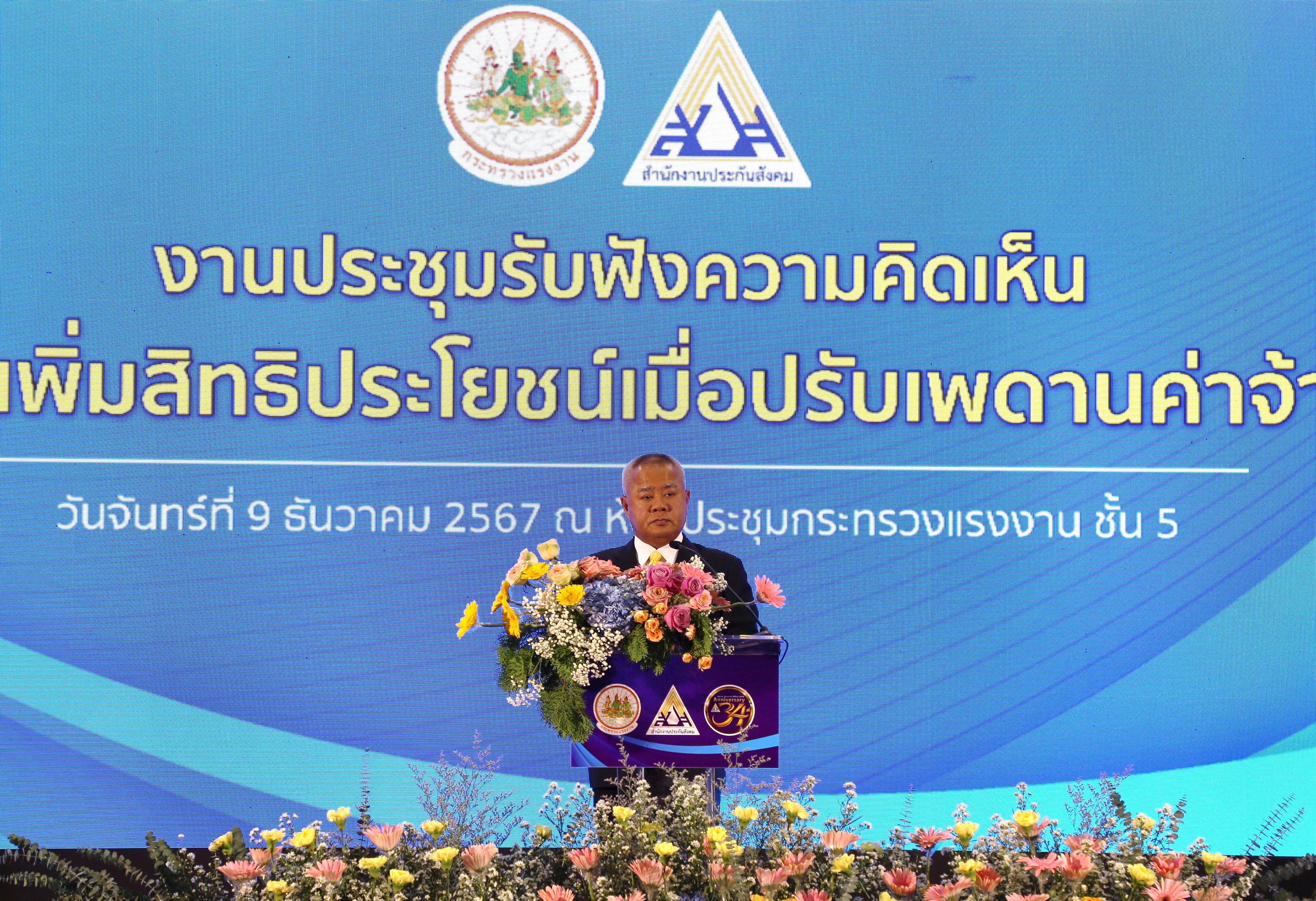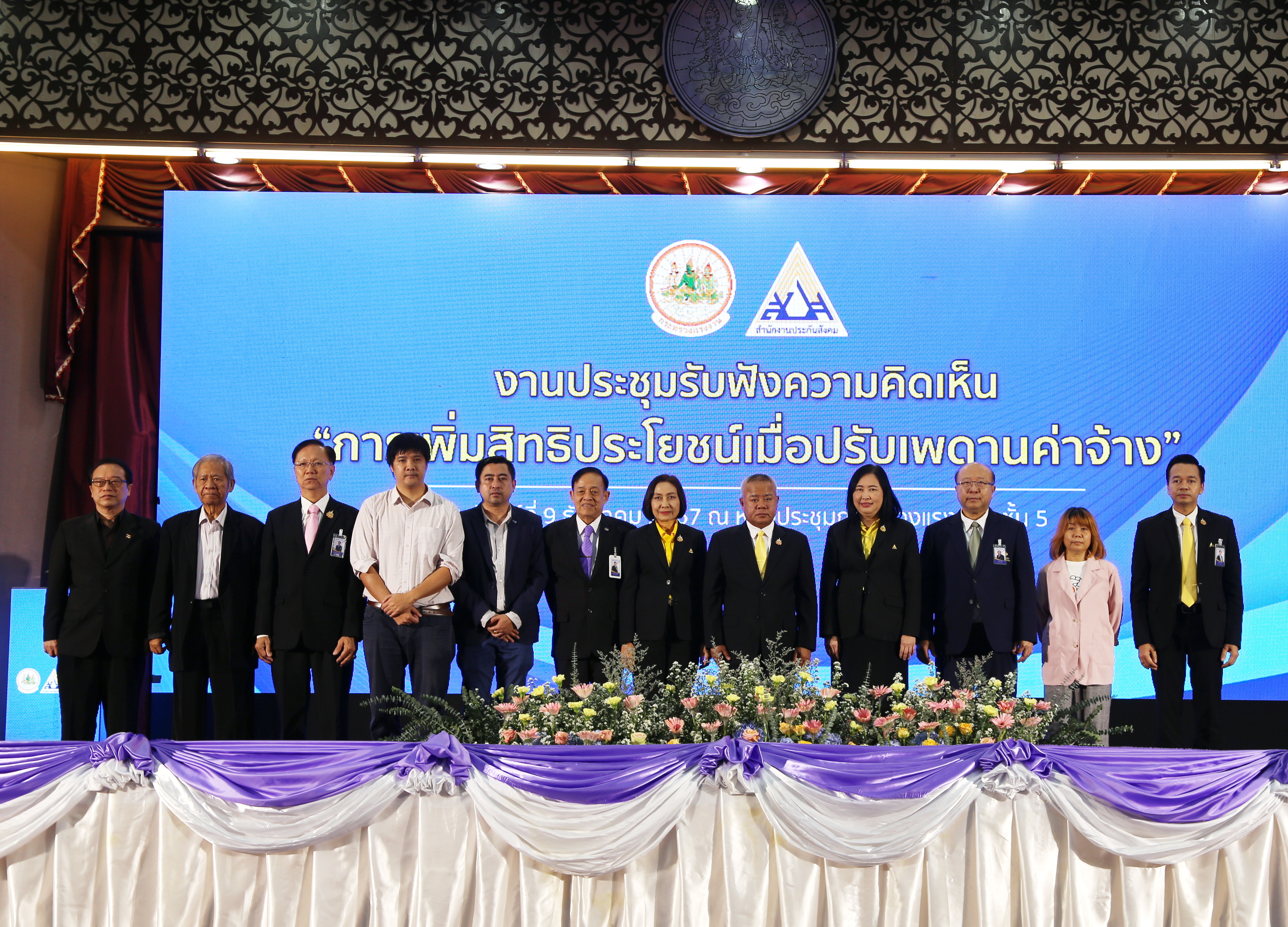 วันที่ 9 ธันวาคม 67 เวลา 13.30 น. นายบุญสงค์ ทัพชัยยุทธ์ ปลัดกระทรวงแรงงาน เป็นประธานการจัดการประชุมรับฟังความคิดเห็น “การเพิ่มสิทธิประโยชน์เมื่อปรับเพดานค่าจ้าง” โดยมี นางมารศรี ใจรังษี เลขาธิการสำนักงานประกันสังคม ผู้บริหารกระทรวงแรงงาน นายสันติ นันตสุวรรณ ผู้ตรวจราชการกระทรวงแรงงาน นายพิเชษฐ์ ทองพันธ์ ผู้ตรวจราชการกระทรวงแรงงาน นายณัฐวุฒิ ภัทรประยูร จัดหางานจังหวัดร้อยเอ็ด รักษาการในตำแหน่งที่ปรึกษาวิชาการแรงงาน นายเกริกไกร นาสมยนต์ ผู้ตรวจราชการกรมสวัสดิการและคุ้มครองแรงงาน รักษาการในตำแหน่งที่ปรึกษากฎหมาย นางสาวกรจิรัฏฐ์ พงจันทร์ศธร ผู้ช่วยปลัดกระทรวงแรงงาน นายศักดินาถ สนธิศักดิ์โยธิน ผู้ช่วยปลัดกระทรวงแรงงาน คณะกรรมการประกันสังคม นักวิชาการ ผู้แทนพรรคการเมือง ผู้แทนสื่อมวลชน และผู้แทนจากหน่วยงานต่างๆ เข้าร่วม ณ ห้องประชุมกระทรวงแรงงาน อาคารกระทรวงแรงงาน เขตดินแดง กรุงเทพมหานคร