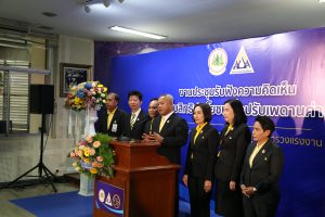 นายบุญสงค์ ทัพชัยยุทธ์ ปลัดกระทรวงแรงงาน กล่าวว่า กองทุนประกันสังคมจัดตั้งขึ้นเพื่อเป็นทุนใช้จ่ายสําหรับให้ผู้ประกันตนได้รับประโยชน์ทดแทนตามพระราชบัญญัติประกันสังคม พ.ศ. 2533 ซึ่งเป็นเวลา 34 ปีแล้ว ที่กองทุนประกันสังคมอยู่เคียงข้างผู้ประกันตน เป็นส่วนหนึ่งในการดูแลคุณภาพชีวิตของผู้ประกันตน ดังตัวอย่างที่เห็นได้ชัดคือ สิทธิประโยชน์กรณีชราภาพ ในปัจจุบันมีผู้ได้รับบำนาญจากสำนักงานประกันสังคม จำนวน 792,149 คน ซึ่งเป็นผู้ประกันตนที่ได้รับเงินบำนาญตลอดชีวิต ทั้งนี้ การจัดเก็บเงินสมทบเข้ากองทุนประกันสังคมได้กำหนดเพดานค่าจ้างขั้นสูงที่ใช้เป็นฐานในการคำนวณเงินสมทบของผู้ประกันตนมาตรา 33 ไว้ไม่เกิน 15,000 บาท ตั้งแต่ พ.ศ. 2534 และไม่เคยมีการแก้ไขถึงปัจจุบัน เป็นระยะเวลา 34 ปี สำนักงานประกันสังคมได้ตระหนักถึงความเพียงพอและความมั่นคงของสิทธิประโยชน์สำหรับผู้ประกันตน จึงได้ดำเนินการ จัดประชุมรับฟังความคิดเห็น “การเพิ่มสิทธิประโยชน์เมื่อปรับเพดานค่าจ้าง” ในครั้งนี้ขึ้น เพื่อรับฟังความคิดเห็นจากผู้มีส่วนเกี่ยวข้อง ไม่ว่าจะเป็น คณะกรรมการประกันสังคมและที่ปรึกษา ผู้บริหารกระทรวงแรงงานและผู้บริหารสำนักงานประกันสังคม ผู้แทนสภาอุตสาหกรรมแห่งประเทศไทย ผู้แทนสภาหอการค้าแห่งประเทศไทย ผู้แทนสภาองค์การนายจ้าง – องค์การลูกจ้าง ผู้แทนจากพรรคการเมือง นายจ้างและลูกจ้างทั่วไป ผู้แทนสื่อมวลชน ถึงการปรับเพดานค่าจ้างในรูปแบบขั้นบันได 3 ครั้ง เพื่อไม่ให้กระทบต่อนายจ้างและผู้ประกันตน โดยมีรายละเอียด ดังนี้