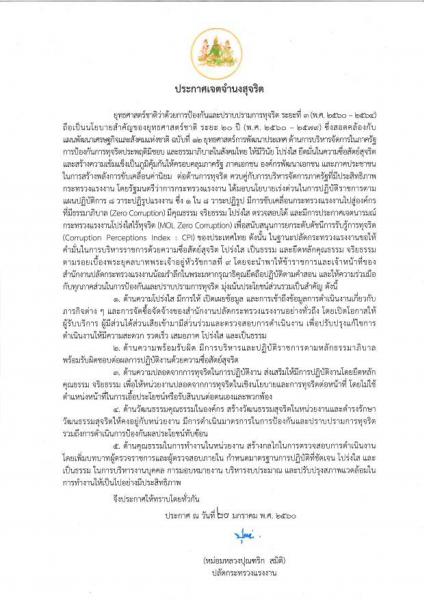 ประกาศเจตจำนงสุจริตของกระทรวงแรงงาน