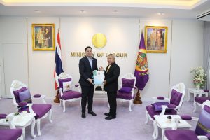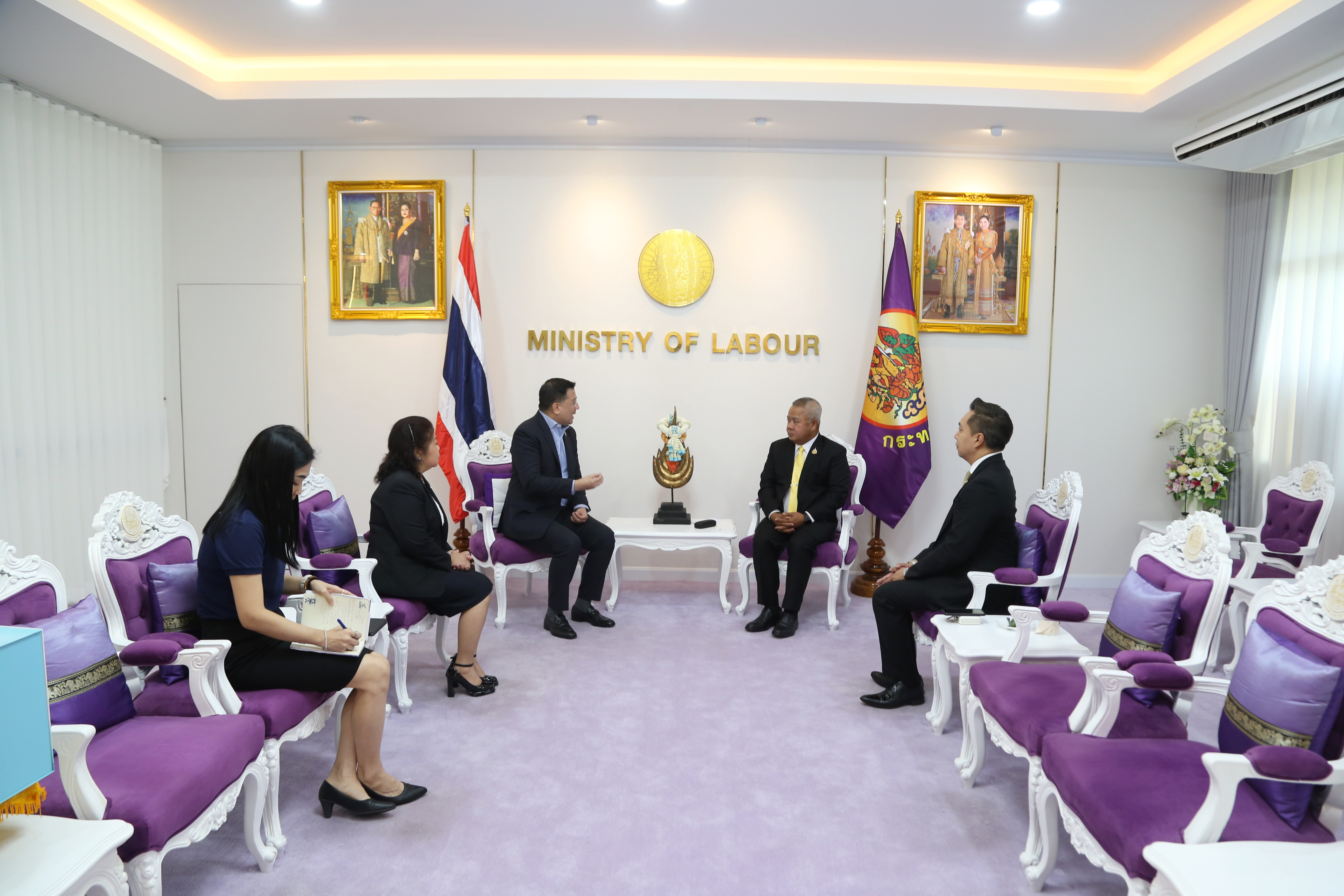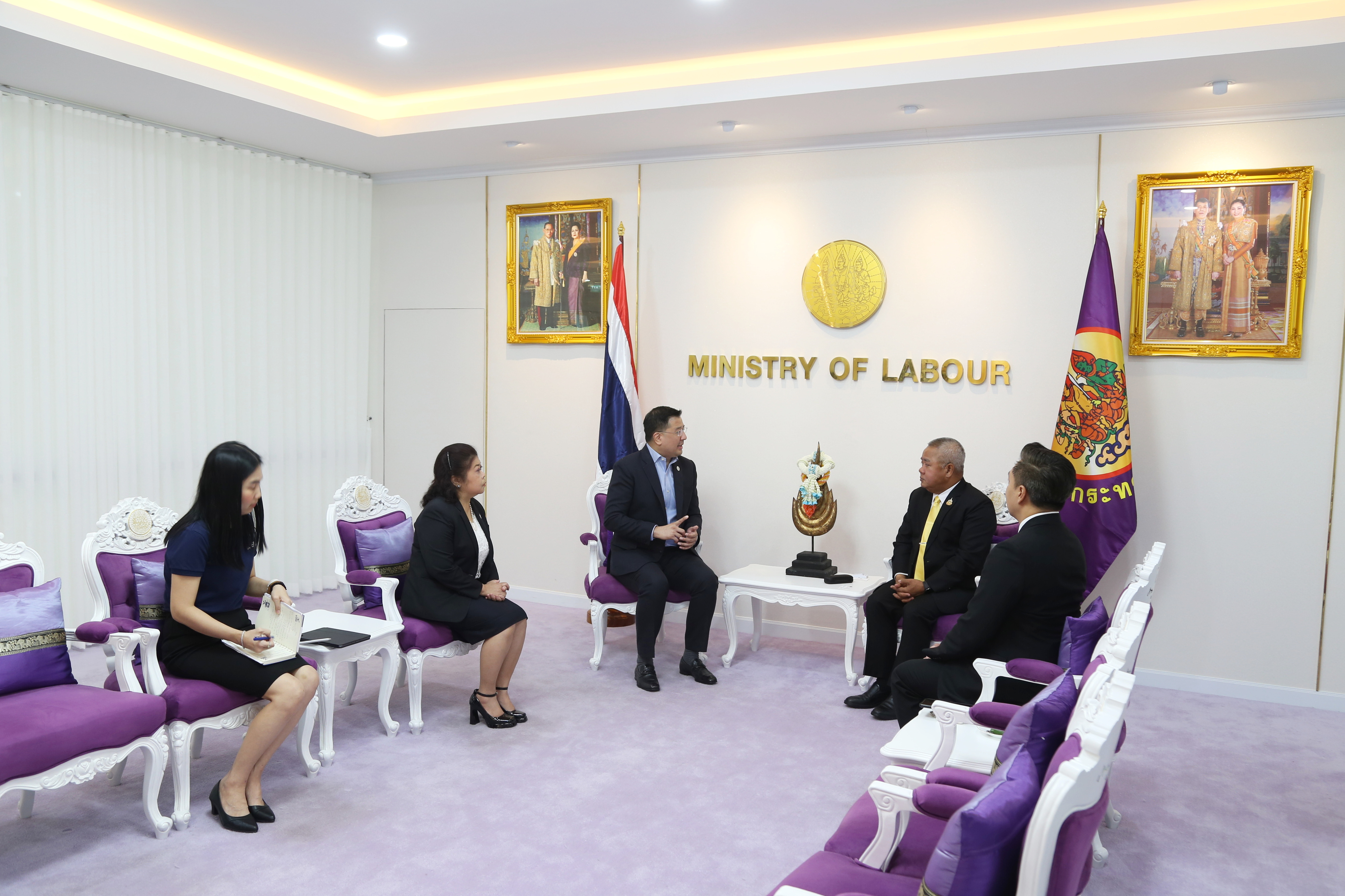 วันที่ 10 มีนาคม 2568 เวลา 08.00 น. นายบุญสงค์ ทัพชัยยุทธ์ ปลัดกระทรวงแรงงาน ให้การต้อนรับ นายสิทธิกร ดิเรกสุนทร กรรมการและผู้จัดการทั่วไป บรรษัทประกันสินเชื่ออุตสาหกรรมขนาดย่อม (บสย.) นายณัฐกิจ รุ่งจรูญ ผู้ช่วยรองเลขาธิการนายกรัฐมนตรีฝ่ายการเมือง และคณะ ในโอกาสเข้าพบเพื่อหารือข้อราชการด้านแรงงานในประเด็นการปล่อยสินเชื่อเพื่อผู้ประกันตนที่ประกอบอาชีพอิสระ ณ ห้องรับรองปลัดกระทรวงแรงงาน ชั้น 7 อาคารกระทรวงแรงงาน