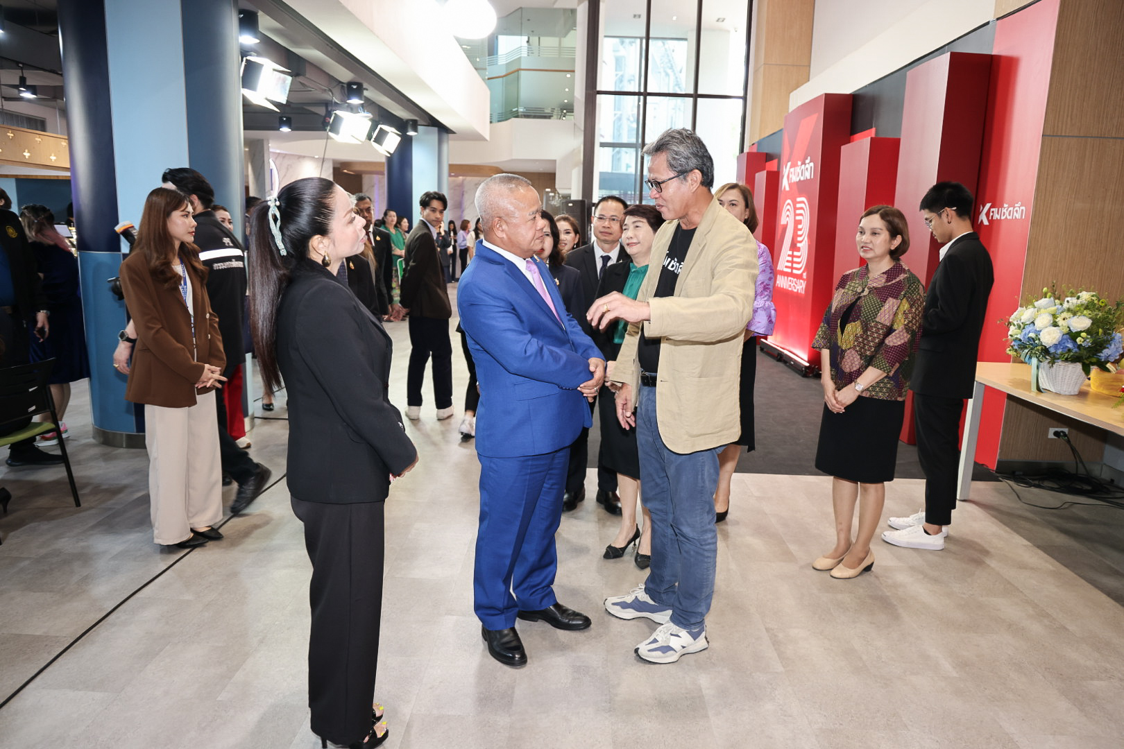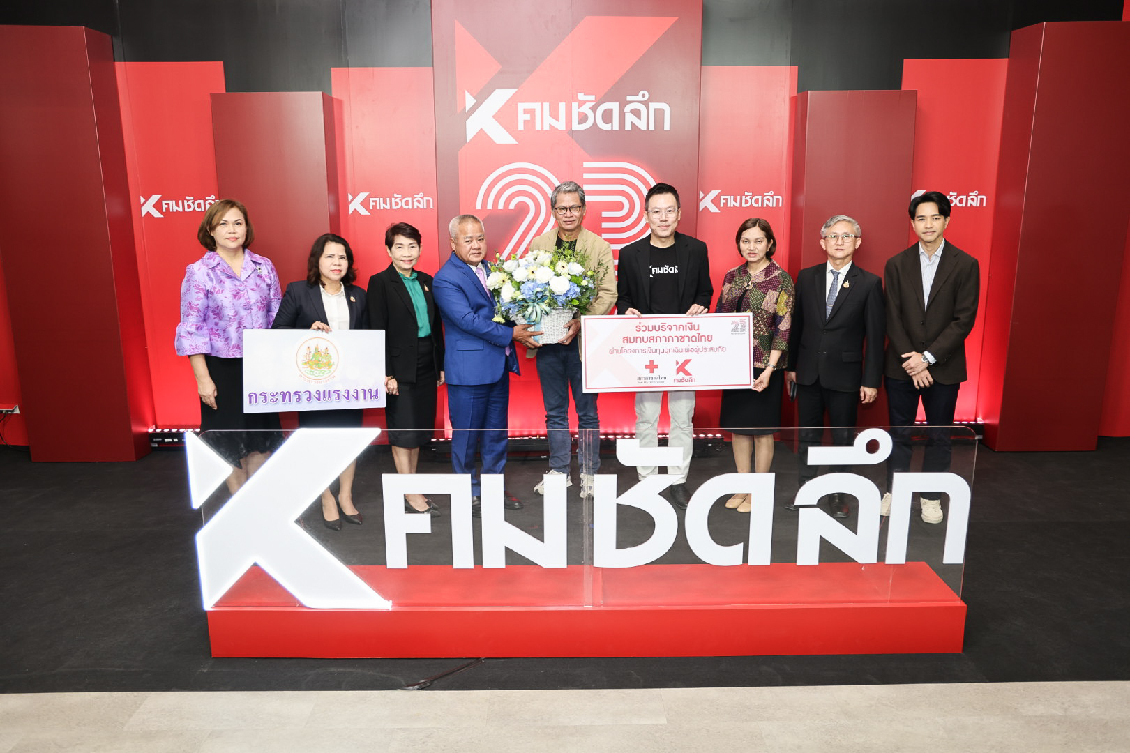 วันที่ 16 ตุลาคม 2567 เวลา 10.30 น.นายบุญสงค์ ทัพชัยยุทธ์ ปลัดกระทรวงแรงงาน พร้อมด้วย นางสาวกรจิรัฏฐ์ พงจันทร์ศธร ผู้ช่วยปลัดกระทรวงแรงงาน นำคณะผู้บริหารและผู้แทนหน่วยงานในสังกัดกระทรวงแรงงาน ร่วมแสดงความยินดีเนื่องในโอกาสคมชัดลึกออนไลน์ครบรอบ 23 ปี โดยมี คุณบากบั่น บุญเลิศ รองประธานกรรมการบริหาร บริษัท เนชั่น กรุ๊ป (ไทยแลนด์) จำกัด (มหาชน) คุณณฤชภณ ธุวะประดิษฐ์ กรรมการผู้จัดการ คมชัดลึก ออนไลน์ และคุณวราวิทย์ ฉิมมณี พิธีกร รายการ คมชัดลึก เป็นผู้รับมอบและร่วมให้การต้อนรับ ณ บริเวณชั้น 1 อาคาร 1 อินเตอร์ลิ้งค์ ทาวเวอร์ (ตึกเนชั่น) ถนนบางนา – ตราด เขตบางนา กรุงเทพมหานคร