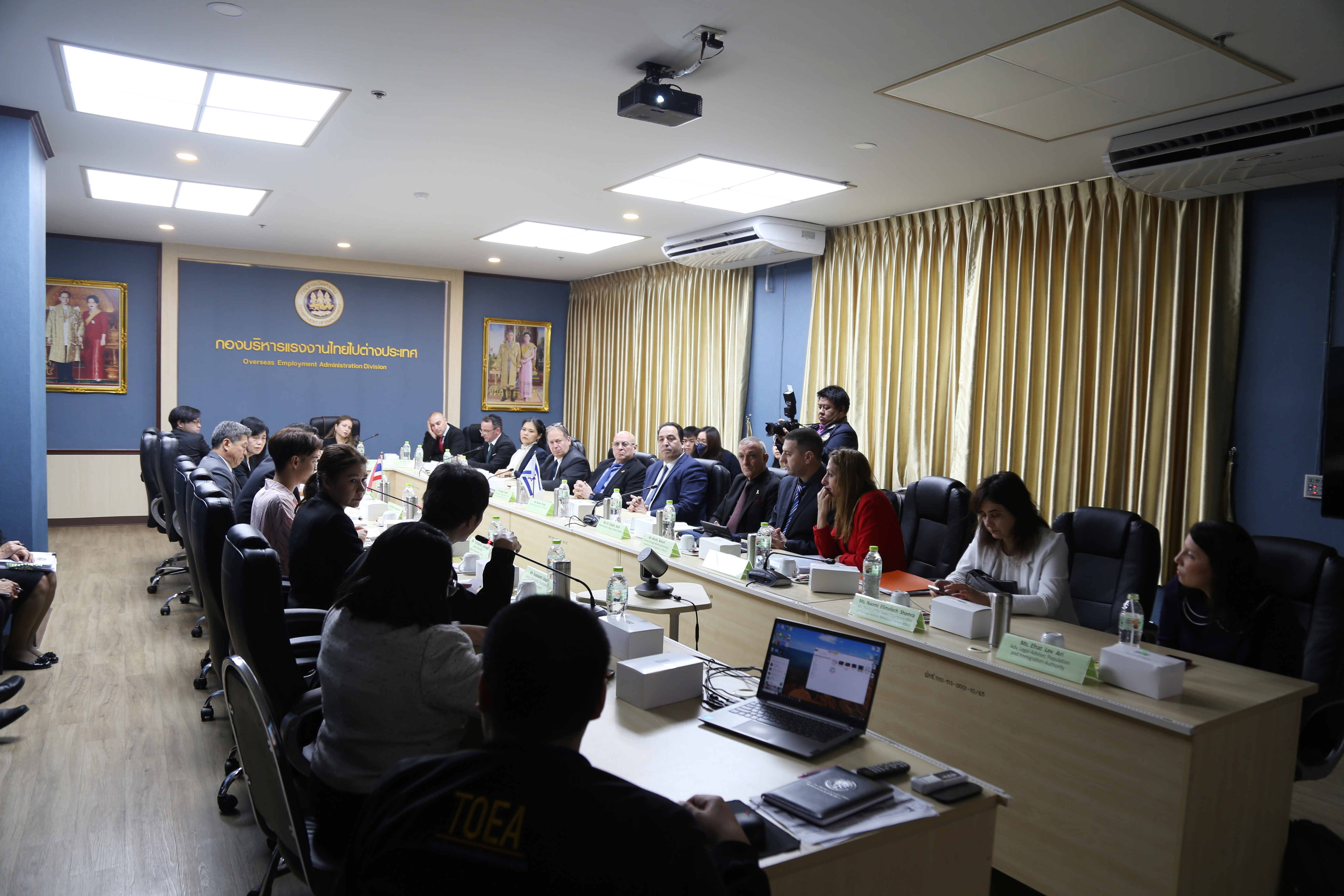 วันที่ 5 กุมภาพันธ์ 2568 เวลา 09.00 น. นายบุญสงค์ ทัพชัยยุทธ์ ปลัดกระทรวงแรงงาน มอบหมายให้ นายศักดินาถ สนธิศักดิ์โยธิน ผู้ช่วยปลัดกระทรวงแรงงาน เข้าร่วมการประชุมคณะกรรมการร่วม (Joint Committee Meeting) ไทย – อิสราเอล โดยมี Mr. RONEN PERETS DIRECTOR GENERAL, MINISTRY OF INTERIOR และคณะจากประเทศอิสราเอลเข้าร่วมการประชุม ซึ่งการประชุมของคณะกรรมการร่วมในครั้งนี้ได้หารือในประเด็น การจัดเตรียมการเดินทางของแรงงาน การจ่ายเงินค่าธรรมเนียมตามกฎหมายให้กับบริษัทจัดหางานอิสราเอล การลงนามเอกสารทางอิเล็กทรอนิกส์ กระบวนการรับสมัครและคัดเลือก ระยะเวลาสำหรับกระบวนการจับคู่ใบแจ้งความต้องการจ้าง และการเดินทางถึงอิสราเอลของแรงงาน การส่งเสริมสิทธิของแรงงานและช่องทางอิเล็กทรอนิกส์ การใช้บริษัทเอกชนให้ดำเนินกระบวนการยื่นวีซ่าให้แก่แรงงาน การตรวจสอบระดับความเชี่ยวชาญของแรงงานที่รับสมัครไว้ให้มีคุณสมบัติอย่างน้อยตรงตามสาขาที่จะเข้าไปทำงาน และการตรวจสอบความเชี่ยวชาญภาษาอังกฤษพื้นฐาน รวมถึงร่างความตกลงฉบับใหม่และร่างแนวปฏิบัติแนบท้ายความตกลงสำหรับแรงงานอุตสาหกรรม ณ ห้องประชุมกองบริหารแรงงานไทยไปต่างประเทศ ชั้น 10 อาคารสำนักงานประกันสังคมเขตพื้นที่ 3 กระทรวงแรงงาน