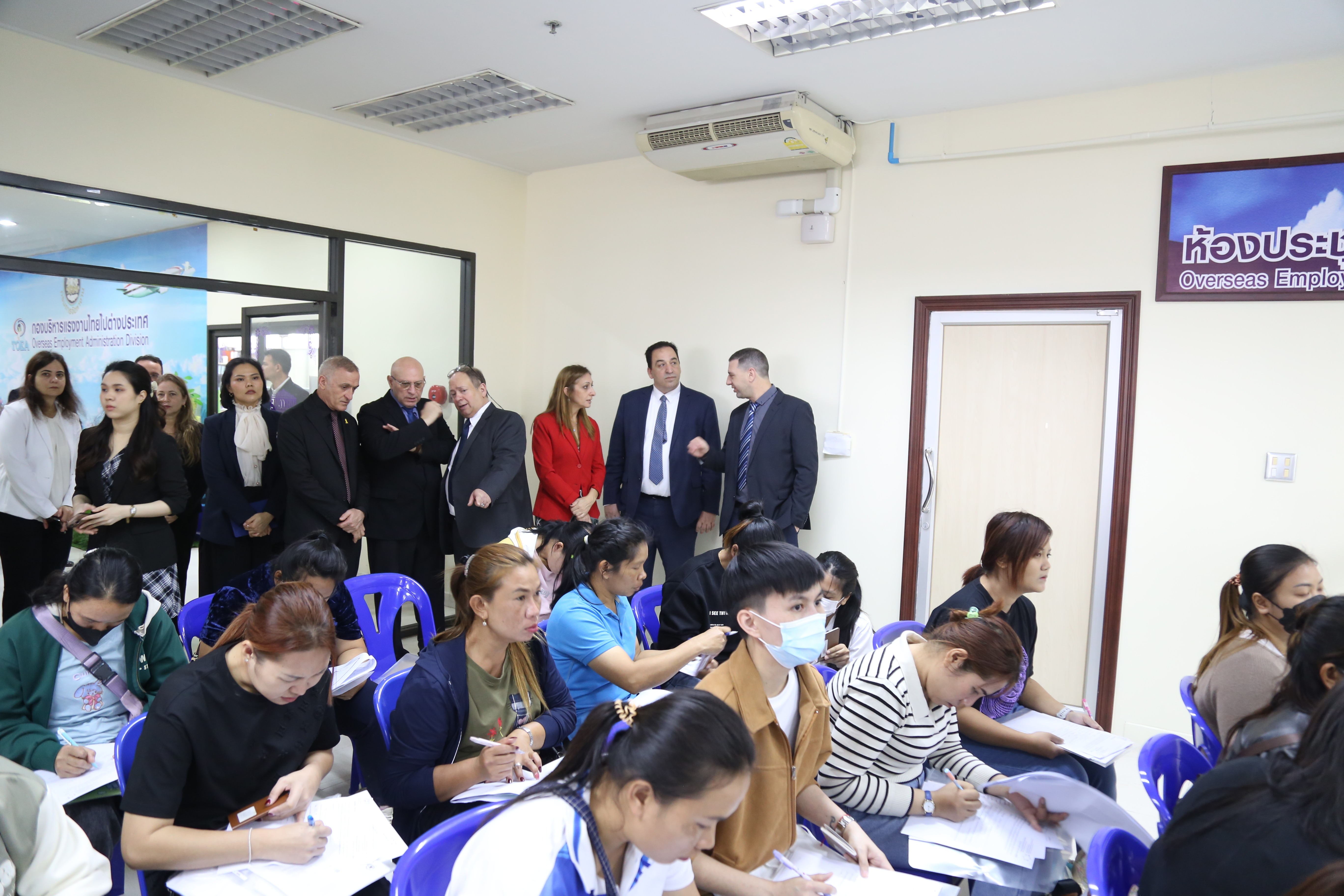 นอกจากนี้ ผู้ช่วยปลัดกระทรวงแรงงาน ได้นำคณะจากประเทศอิสราเอลเยี่ยมชมสถานที่และกระบวนการรับสมัครและคัดเลือกแรงงานไทย และพูดคุยกับแรงงานไทยที่จะเดินทางไปทำงานภาคเกษตรที่ประเทศอิสราเอล