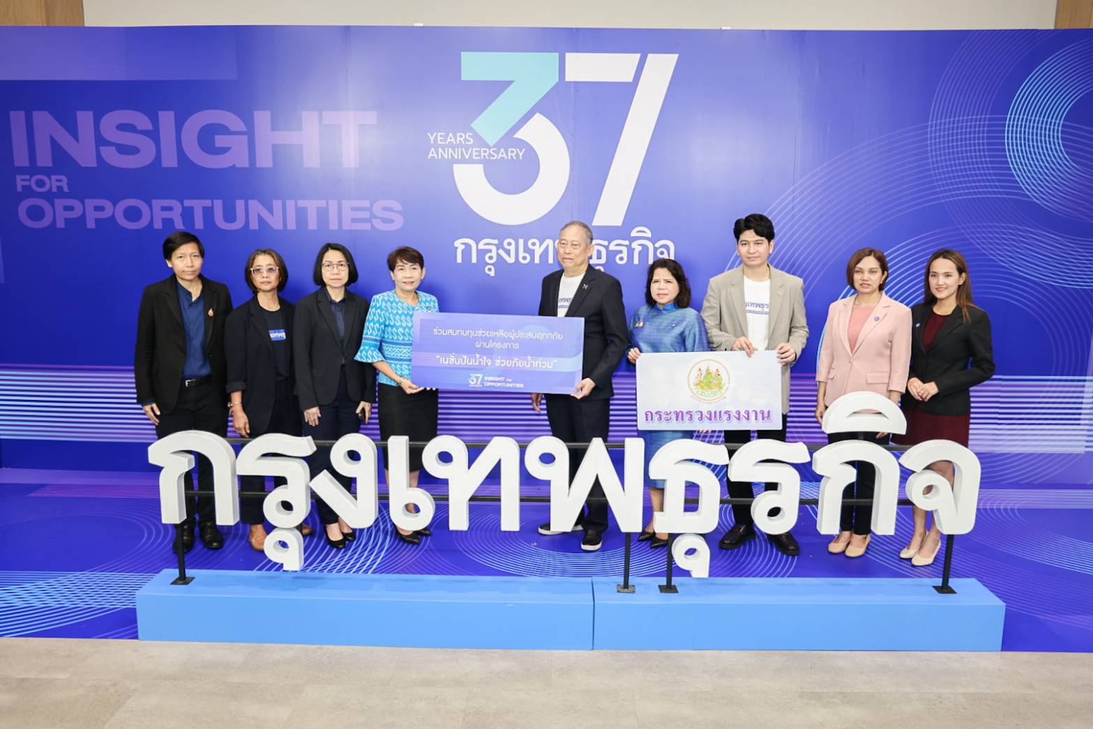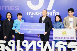 วันที่ 4 ตุลาคม 2567 เวลา 10.30 น. นายบุญสงค์ ทัพชัยยุทธ์ ปลัดกระทรวงแรงงาน มอบหมายให้ นางสาวกรจิรัฏฐ์ พงจันทร์ศธร ผู้ช่วยปลัดกระทรวงแรงงาน นำคณะผู้บริหารและผู้แทนหน่วยงานในสังกัดกระทรวงแรงงานร่วมแสดงความยินดีเนื่องในโอกาสหนังสือพิมพ์กรุงเทพธุรกิจครบรอบ 37 ปี ก้าวสู่ปีที่ 38 ในการนี้ กระทรวงแรงงาน ร่วมบริจาคเงินเพื่อสมทบช่วยเหลือผู้ประสบภัยน้ำท่วมในพื้นที่จังหวัดทางภาคเหนือ โดยมี นายมารุต อรรถไกวัลวที ประธานกรรมการและที่ปรึกษาคณะกรรมการบริหาร บริษัท เนชั่น กรุ๊ป (ไทยแลนด์) จำกัด (มหาชน) และ นายวีรยุทธ แสงกระจ่าง กรรมการผู้จัดการกรุงเทพธุรกิจ เป็นผู้รับมอบและร่วมให้การต้อนรับ ณ บริเวณชั้น 1 อาคาร 1 อินเตอร์ลิ้งค์ ทาวเวอร์ (ตึกเนชั่น) ถนนบางนา – ตราด เขตบางนา กรุงเทพมหานคร