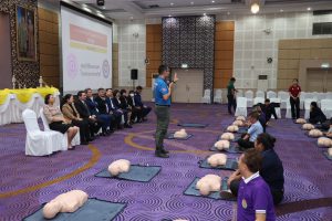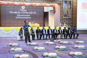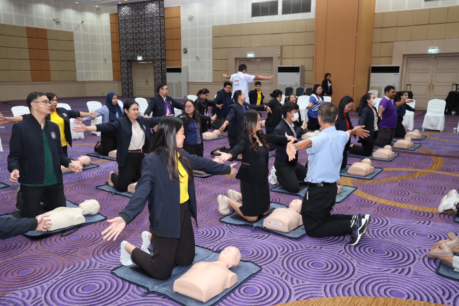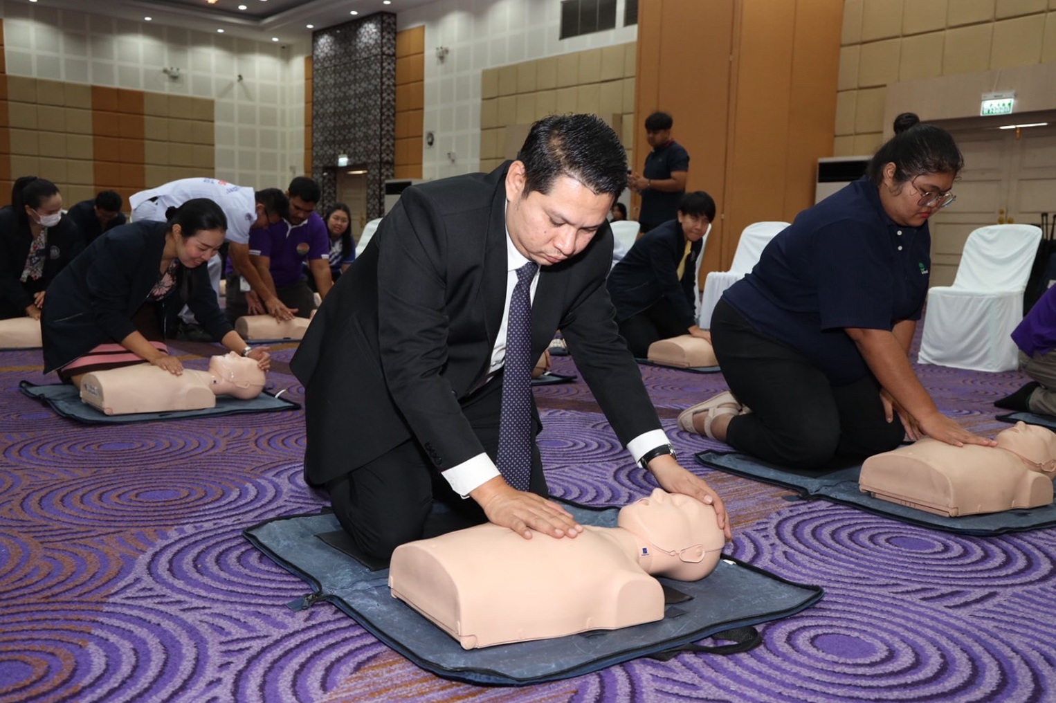 สำหรับ การฝึกอบรมหลักสูตร Wellness Together เสริมพลังกาย สร้างพลังใจ กองบริหารทรัพยากรบุคคล สำนักงานปลัดกระทรวงแรงงาน ได้ดำเนินโครงการตามดำริของปลัดกระทรวงแรงงาน โดยมีวัตถุประสงค์เพื่อส่งเสริมให้บุคลากรในสังกัดได้มีความรู้และมีความเข้าใจในการดูแลสุขภาพกายใจของตนเองและเพื่อนร่วมงาน และเป็นการสร้างวัฒนธรรมองค์กรที่ให้ความสำคัญกับการดูแลสุขภาพ รวมทั้งให้ได้รับความรู้และฝึกทักษะการกู้ชีพแบบองค์รวม เพื่อเป็นการเตรียมความพร้อมให้บุคลากรสามารถช่วยเหลือผู้อื่นในสถานการณ์ฉุกเฉินได้อย่างถูกต้องและรวดเร็ว มีรูปแบบการฝึกอบรมเป็นการบรรยายให้ความรู้และฝึกปฏิบัติ โดยวิทยากรผู้มีความรู้ความเชี่ยวชาญเฉพาะทาง ดำเนินการระหว่างวันที่ 5 – 6 สิงหาคม 2568 มีผู้เข้ารับการฝึกอบรมเป็นบุคลากรสำนักงานปลัดกระทรวงแรงงาน ส่วนกลาง รวมทั้งสิ้น 40 คน เพื่อนำความรู้จากการฝึกไปสร้างเครือข่ายองค์กรรักสุขภาพต่อไป