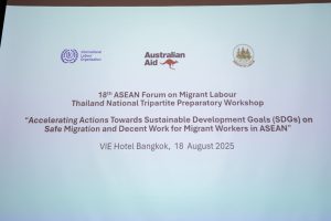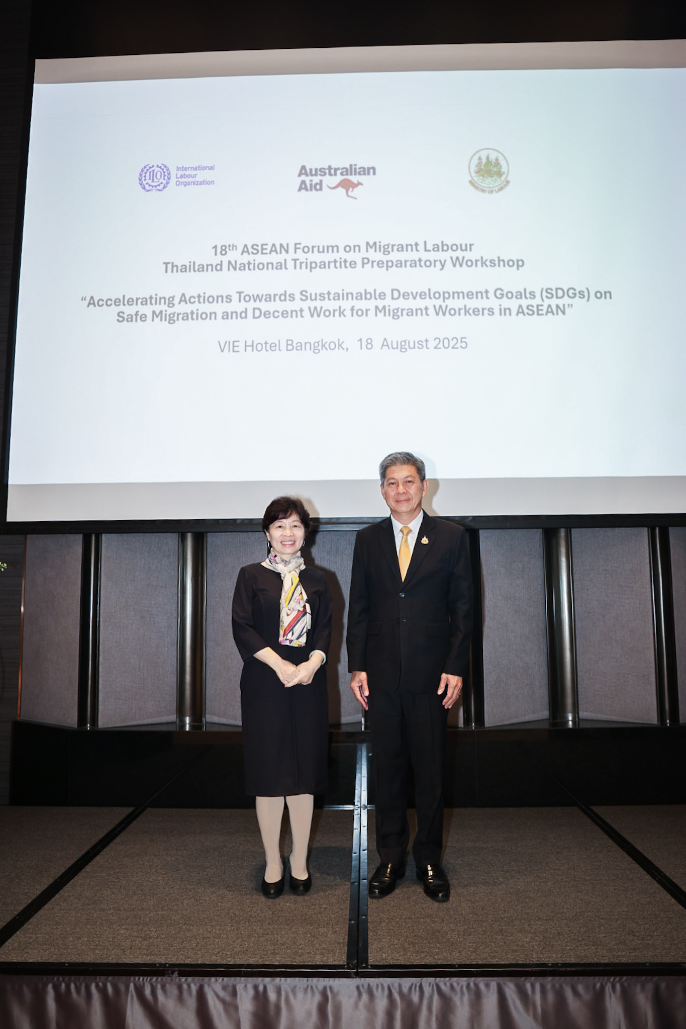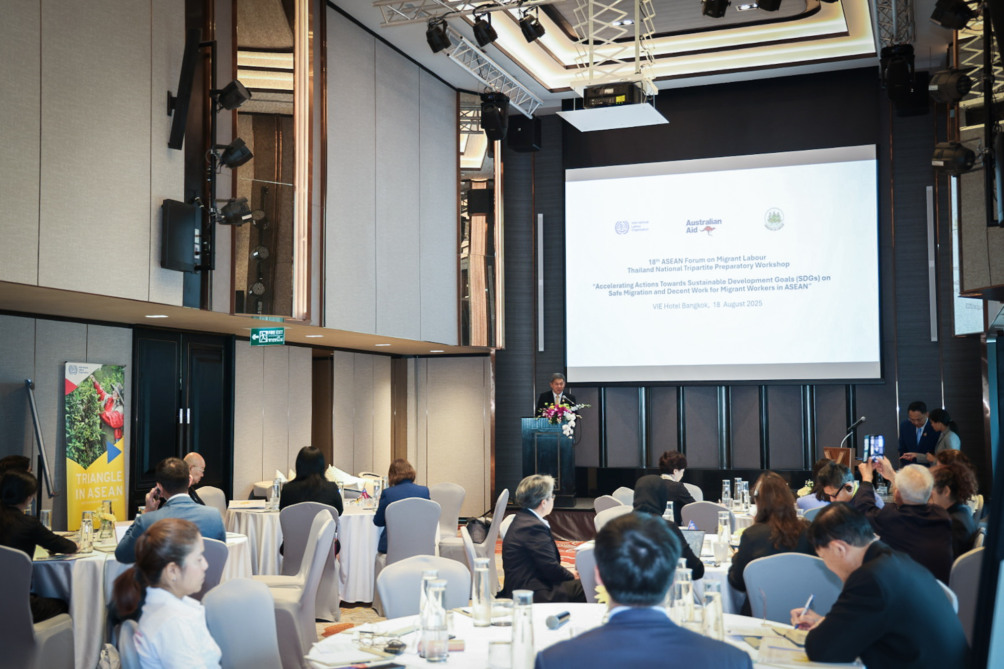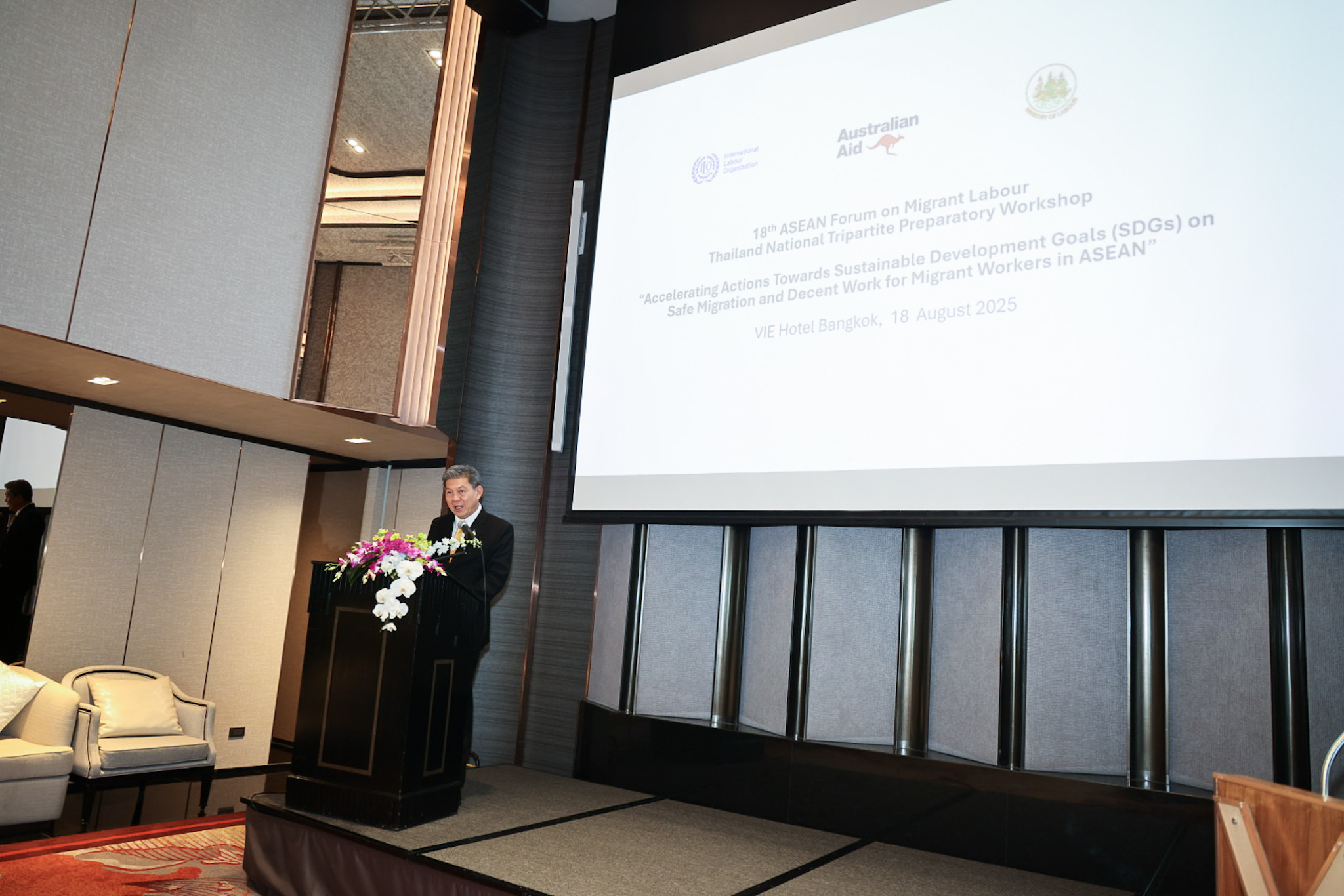 วันที่ 18 สิงหาคม 2568 เวลา 09.30 น. นายบุญสงค์ ทัพชัยยุทธ์ ปลัดกระทรวงแรงงาน มอบหมายให้ นายศักดินาถ สนธิศักดิ์โยธิน ผู้ช่วยปลัดกระทรวงแรงงาน เป็นประธานเปิดการประชุมเชิงปฏิบัติการไตรภาคีเพื่อเตรียมความพร้อมระดับชาติสำหรับการประชุมอาเซียนว่าด้วยแรงงานต่างด้าว (AFML) ครั้งที่ 18 โดยมี Ms. Xiaoyan Qian ผู้อำนวยการสำนักงานแรงงานระหว่างประเทศประจำประเทศไทย กัมพูชา และ สปป.ลาว (ILO) เป็นผู้กล่าวต้อนรับ ณ ห้องบอลรูม ชั้น 12 โรงแรม VIE ถนนพญาไท เขตราชเทวี กรุงเทพฯ