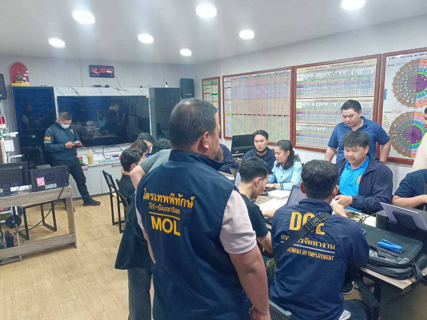 วันที่ 9 มกราคม 2568 เวลา 12.00 น.นายบุญสงค์ ทัพชัยยุทธ์ ปลัดกระทรวงแรงงาน มอบหมายให้ นายพิเชษฐ์ ทองพันธ์ ผู้ตรวจราชการกระทรวงแรงงาน ประธานคณะทำงานเฉพาะกิจตรวจสอบการจ้างงาน สภาพการจ้าง การบังคับใช้แรงงานหรือบริการ และ การใช้แรงงานเด็กในรูปแบบที่เลวร้าย ในกลุ่มแรงงานต่างด้าว นำชุดเฉพาะกิจ (ไตรเทพพิทักษ์) ประกอบด้วย สำนักงานปลัดกระทรวงแรงงาน นายทวีศักดิ์ สวัสดิ์สิงห์ นิติกรชำนาญการ และนางสาวเกศกนก กมลเดช เจ้าหน้าที่สนับสนุน NRM ด้านภาษา กรมการจัดหางาน นายกรินทร์ พละชัย นักวิชาการแรงงานชำนาญการ นายสุธร ภูริเอกสุวรรณ นักวิชาการแรงงานปฏิบัติการ นายภูริวัฒน์ ประธานวัฒนกุล นิติกรปฎิบัติการ กรมสวัสดิการและคุ้มครองแรงงาน นายเอกภพ บุญถม ผู้อำนวยการกลุ่มงานคดีอาญา นางสาวฉัตราภรณ์ สังข์ประไพ นิติกรปฏิบัติการ นายบุรัชย์ จันทรักษ์ นักวิชาการแรงงานชำนาญการสำนักงานตำรวจแห่งชาติ พ.ต.ต.ชาตรี รัตนะ สว.บก.สอท.5 ด.ต.เอกธนา หนูชุม ผบ.หมู่ กก.4 บก.สอท.5 ด.ต.สานนท์ บุญกาญจน์ ผบ.หมู่ กลุ่มงานสอบสวน บก.สอท.5 จ.ส.ต.ประสพชัย คงเจริญ กองบังคับการปราบปรามการกระทำความผิดเกี่ยวกับการคุ้มครองผู้บริโภค สำนักงานตรวจคนเข้าเมือง ร.ต.อ.อภิราม รัตนสุภา รอง สว.กก.สืบสวน บก.ตม.1 ส.ต.อ.สันติสุข แสงโทน ผบ.หมู่ กก.สืบสวน บก.ตม.1 บูรณาการออกตรวจสถานประกอบการบริเวณภายในตลาดพระโขนง ซอยสุขอุทิศ แขวงพระโขนงเหนือ เขตวัฒนา กรุงเทพมหานคร