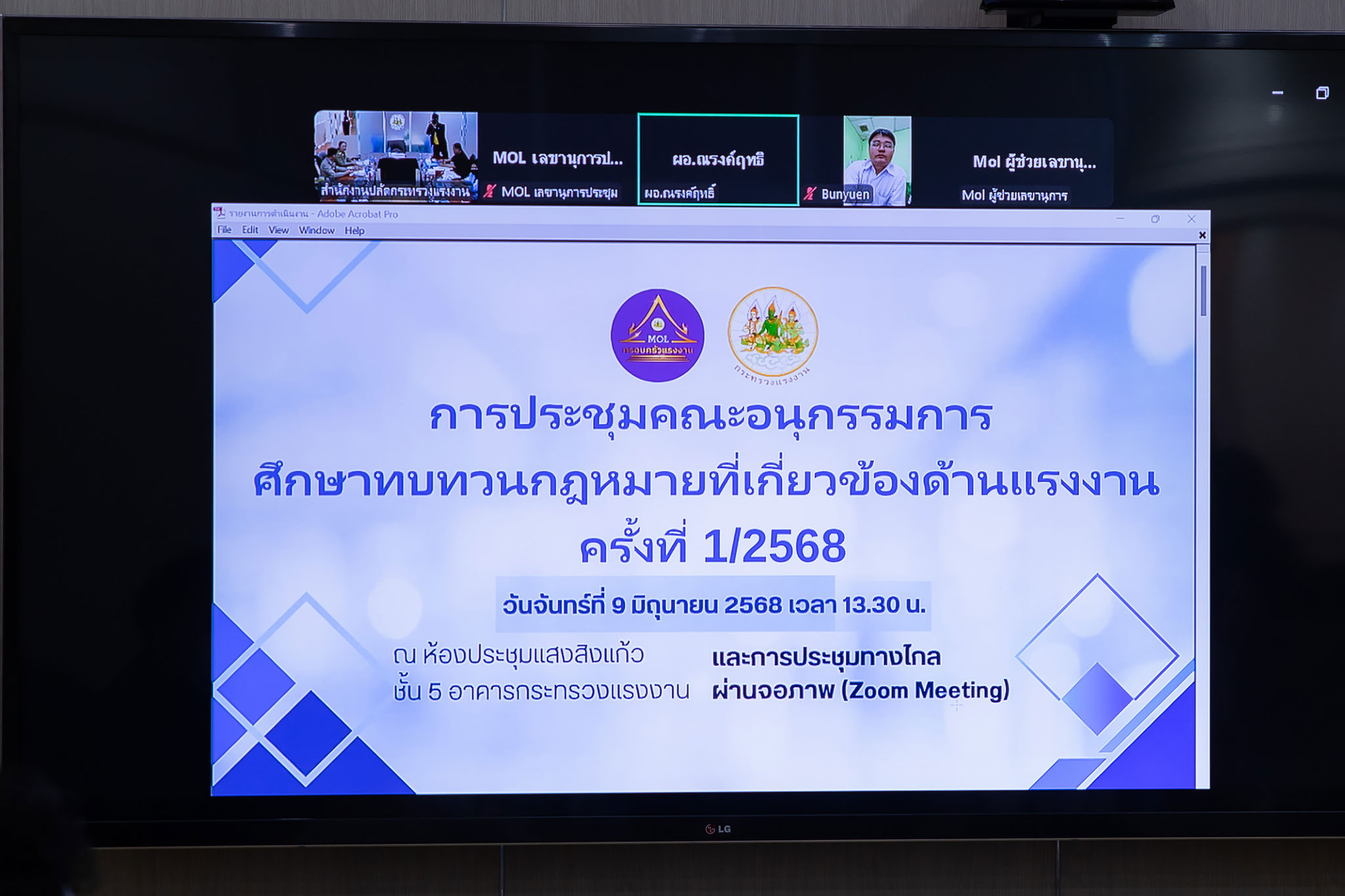 วันที่ 9 มิถุนายน 2568 เวลา 13.30 น. นายสิรภพ ดวงสอดศรี ผู้ช่วยรัฐมนตรีประจำกระทรวงแรงงาน มอบหมายให้ นางสาวกาญจนา พูลแก้ว ผู้ตรวจราชการกระทรวงแรงงาน เป็นประธานการประชุมคณะอนุกรรมการทบทวนกฎหมาย ที่เกี่ยวข้องด้านแรงงาน ครั้งที่ 1/2568 ผ่านสื่ออิเล็กทรอนิกส์ (Zoom meeting) ณ ห้องประชุมแสงสิงแก้ว ชั้น 5 อาคารกระทรวงแรงงาน สำหรับการประชุมครั้งนี้ ที่ประชุมได้พิจารณาเรื่อง รูปแบบ วิธีการดำเนินการและรายละเอียดในการจัดเวทีรับฟังความคิดเห็นในประเด็นกฎหมายด้านการคุ้มครองแรงงาน และด้านการประกันสังคม อาทิ จำนวนผู้เข้าร่วมรับฟังความคิดเห็นผู้รับผิดชอบในการจัดงาน/การประสานงาน งบประมาณ วิทยากร และรายละเอียดของสถานที่จัดงาน