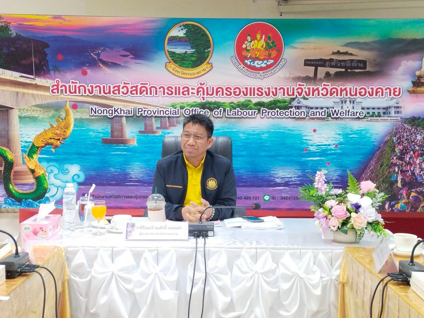 วันที่ 18 สิงหาคม 2568 เวลา 15.30 น. นายบุญสงค์ ทัพชัยยุทธ์ ปลัดกระทรวงแรงงาน มอบหมายให้ ว่าที่ร้อยตรี สมศักดิ์ พรหมดำ ผู้ตรวจราชการกระทรวงแรงงาน เป็นประธานการประชุมหัวหน้าส่วนราชการสังกัดกระทรวงแรงงาน จังหวัดบึงกาฬ เพื่อตรวจติดตามประเมินผลการปฏิบัติงานตามประเด็นแผนการตรวจราชการของผู้ตรวจราชการกระทรวงแรงงาน ประจำปีงบประมาณ พ.ศ. 2568 รอบที่ 3 (Monitoring/Evaluation) เขตตรวจราชการที่ 10 ณ ห้องประชุมสำนักงานสวัสดิการและคุ้มครองแรงงานจังหวัดหนองคาย ศาลากลาง จังหวัดหนองคาย