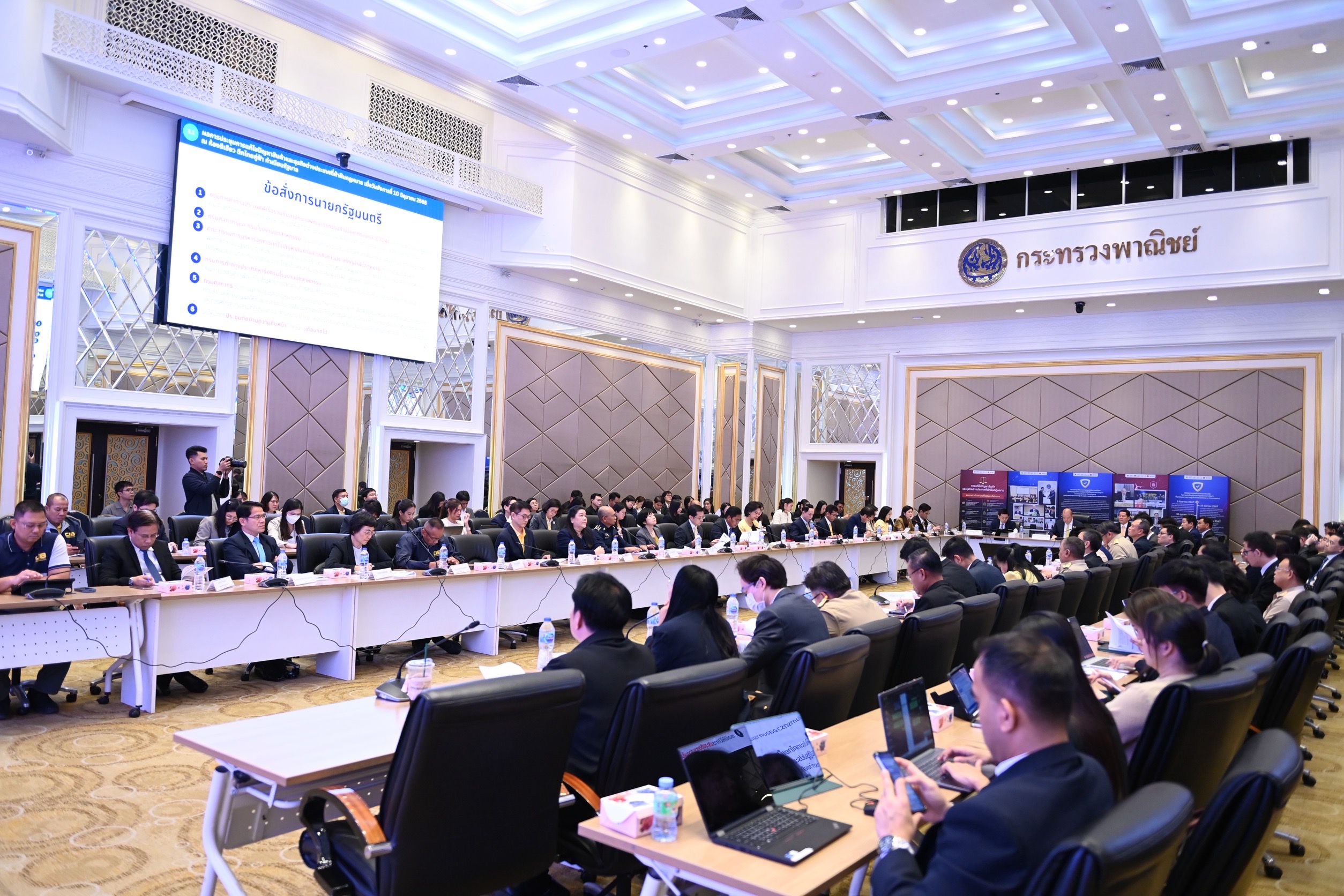 สำหรับการประชุมดังกล่าว ที่ประชุมได้พิจารณา ในประเด็น ดังนี้ 1. การติดตามความคืบหน้าข้อสั่งการนายกรัฐมนตรีในการแก้ไขปัญหาสินค้าและธุรกิจต่างประเทศที่ฝ่าฝืนกฎหมาย อาทิ การบังคับใช้กฎหมายกับ Platform e-commerce การเข้มงวดในการตรวจสอบคุณภาพมาตรฐานในเขต Freezone เป็นต้น และ2. การมอบหมายคณะทำงานเพื่อปฏิบัติการปราบปรามการกระทำความผิดเกี่ยวกับการประกอบธุรกิจที่ฝ่าฝืนกฎหมาย (เพิ่มเติม)