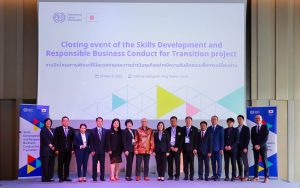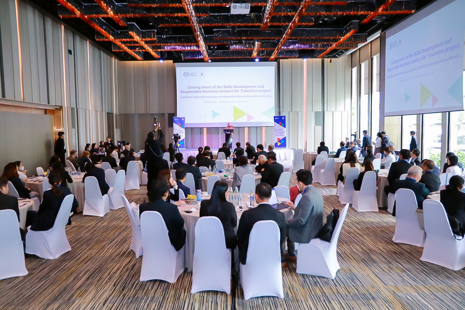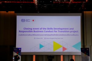 นางสาวบุปผา กล่าวต่อว่า ตลอดระยะเวลาการดำเนินโครงการเราได้เห็นถึงความก้าวหน้าและผลลัพธ์ที่เป็นรูปธรรมไม่ว่าจะเป็นการพัฒนาทักษะแรงงานเพื่อเสริมสร้างความสามารถในการปรับตัวและเพิ่มผลิตภาพแรงงาน การส่งเสริมความร่วมมือระหว่างภาครัฐและเอกชน เพื่อการพัฒนาทักษะที่สอดคล้องกับหลักการดำเนินธุรกิจที่มีความรับผิดชอบ การพัฒนาแนวทางเชิงนโยบายและแนวปฏิบัติ ที่ช่วยเสริมสร้างความเข้มแข็งให้กับห่วงโซ่อุปทานของภาคอุตสาหกรรมยานยนต์ ความสำเร็จของโครงการนี้เกิดขึ้นจาก ความร่วมมือของทุกภาคส่วน ไม่ว่าจะเป็น หน่วยงานภาครัฐ องค์กรนายจ้าง องค์กรลูกจ้าง สถาบันการศึกษา และพันธมิตรจากภาคเอกชน ที่ได้ร่วมกันผลักดันให้เกิดการพัฒนาที่ครอบคลุมและยั่งยืน ดิฉันหวังเป็นอย่างยิ่งว่า จะได้รับฟังท่านผู้มีเกียรติทุกท่านสะท้อนถึงผลลัพธ์ของโครงการ โดยการถ่ายทอดประสบการณ์และบทเรียน รวมถึงการแลกเปลี่ยนความคิดเห็นเพื่อการขยายผลและต่อยอดความร่วมมือ ในอนาคต เพื่อความต่อเนื่องและยั่งยืนของการพัฒนาทักษะแรงงานและแนวทางการดำเนินธุรกิจที่มีความรับผิดชอบในภาคอุตสาหกรรมยานยนต์ต่อไปดิฉันขอขอบคุณ องค์การแรงงานระหว่างประเทศ (ILO) และรัฐบาลญี่ปุ่น ที่ให้การสนับสนุนโครงการนี้ รวมถึงขอบคุณทุกท่านที่มีส่วนร่วมในการขับเคลื่อนโครงการ และหวังเป็นอย่างยิ่งว่าความรู้ ประสบการณ์ และเครือข่ายความร่วมมือที่เกิดขึ้นจากโครงการนี้ จะถูกนำไปต่อยอดเพื่อพัฒนาฝีมือแรงงาน ส่งเสริมสภาพแวดล้อมการทำงานที่เป็นธรรม และขับเคลื่อนภาคอุตสาหกรรมของไทยให้ก้าวสู่อนาคตที่ยั่งยืน