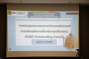 สำหรับการประชุมดังกล่าว ที่ประชุมได้พิจารณาแผนการดำเนินงานการจัดงานมอบรางวัล และ หลักเกณฑ์รางวัล “การบริหารจัดการเรื่องร้องทุกข์โดดเด่น” (CCEO Outstanding Award)