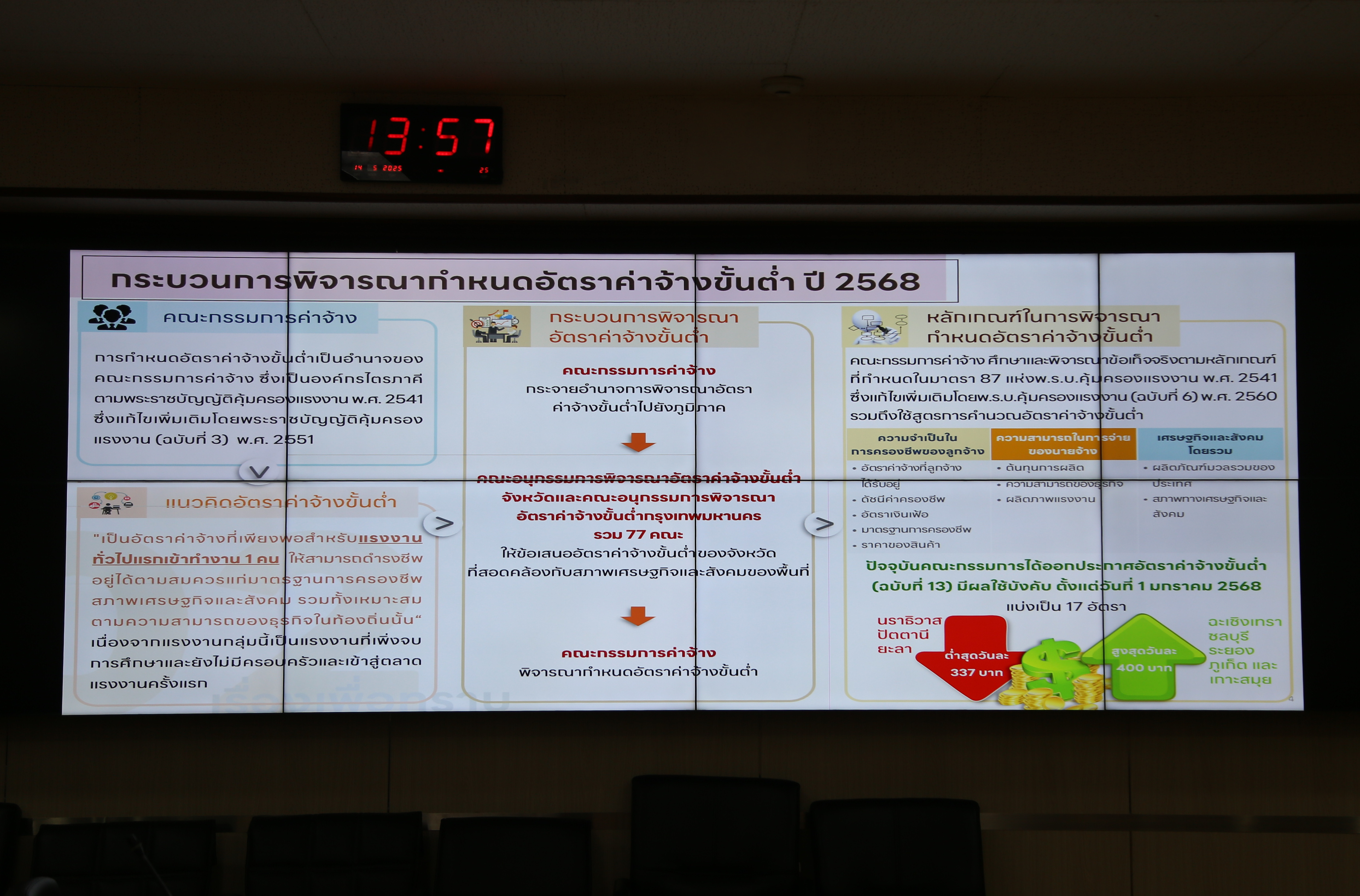 สำหรับการประชุมในครั้งนี้ คณะทำงานได้พิจารณาข้อมูลประกอบการพิจารณาทบทวนอัตราค่าจ้างขั้นต่ำ ปี 2568