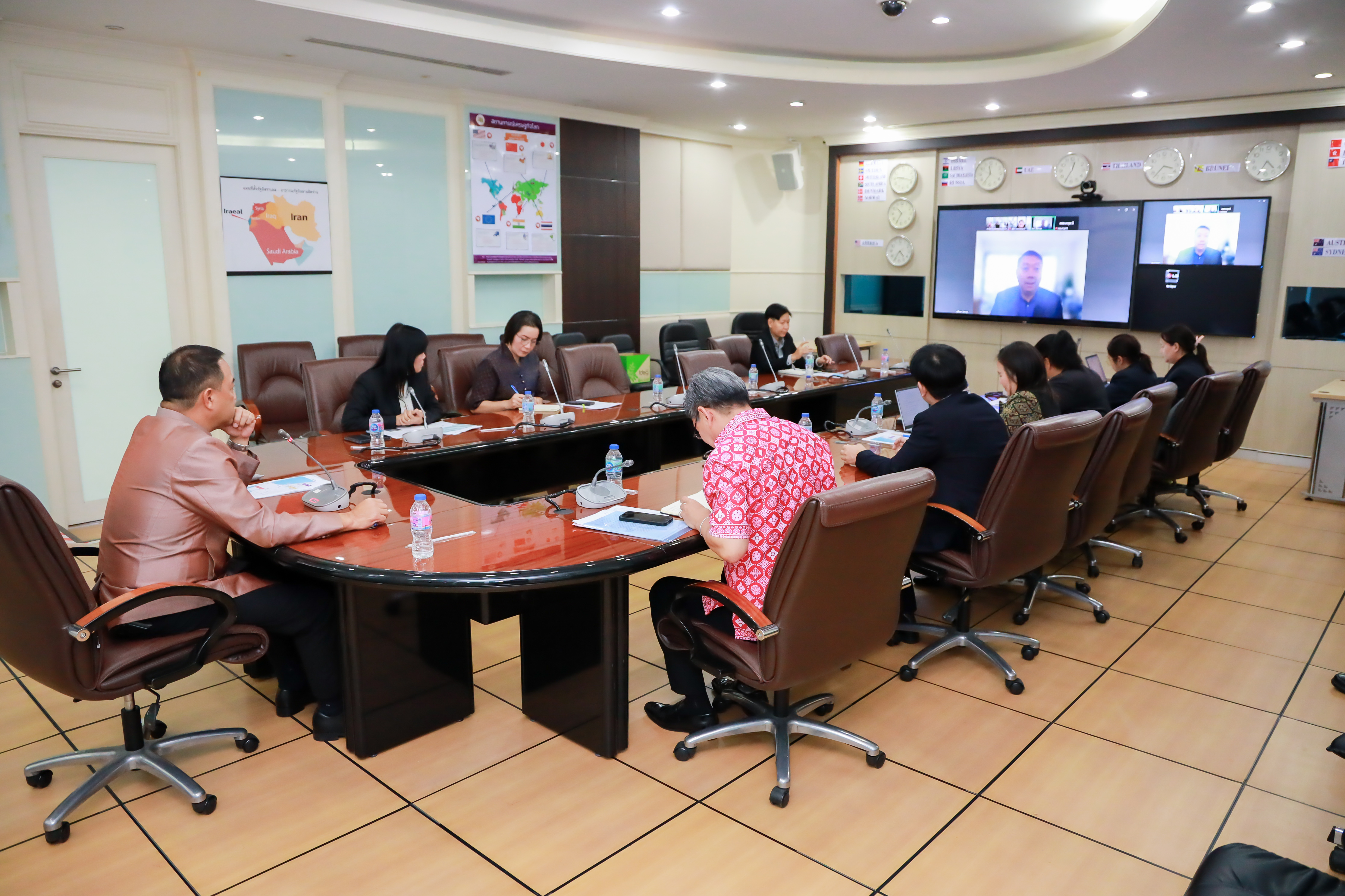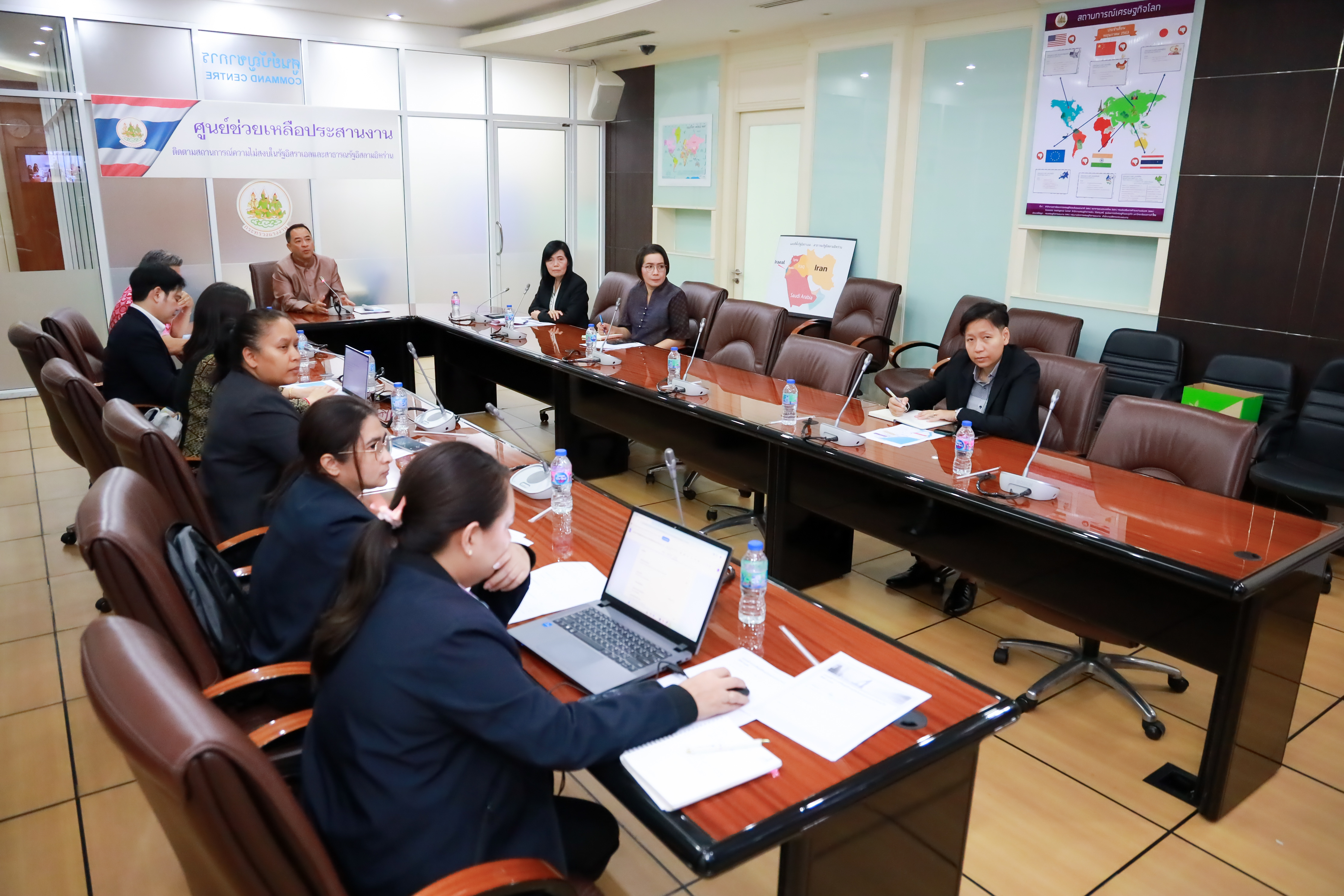 วันที่ 17 มิถุนายน 2568 เวลา 15.00 น. นายบุญสงค์ ทัพชัยยุทธ์ ปลัดกระทรวงแรงงาน มอบหมายให้ นายสมาสภ์ ปัทมะสุคนธ์ รองปลัดกระทรวงแรงงาน ในฐานะผู้อำนวยการศูนย์ช่วยเหลือประสานงานติดตามสถานการณ์ความไม่สงบในรัฐอิสราเอลและสาธารณรัฐอิสลามอิหร่าน เป็นประธานการประชุมหารือเพื่อติดตามสถานการณ์ความไม่สงบในรัฐอิสราเอลและสาธารณรัฐอิสลามอิหร่าน โดยมี นายศักดินาถ สนธิศักดิ์โยธิน ผู้ช่วยปลัดกระทรวงแรงงาน และหน่วยงานที่เกี่ยวข้องเข้าร่วมประชุม ณ ห้องประชุมแสงสิงแก้ว ชั้น 5 อาคารกระทรวงแรงงาน และผ่านระบบการประชุมทางไกล (Video Conference) สำหรับการประชุมในครั้งนี้ ที่ประชุมได้รับทราบรายงานสถานการณ์ความไม่สงบและสถานการณ์ด้านแรงงานความไม่สงบในรัฐอิสราเอลและสาธารณรัฐอิสลามอิหร่าน โดย นายกิตติ์ธนา ศรีสุริยะ อัครราชทูตที่ปรึกษา (ฝ่ายแรงงาน) ประจำสถานเอกอัครราชทูต ณ กรุงเทลอาวีฟ และ นางอลิสา สุภาพ อัครราชทูตที่ปรึกษา (ฝ่ายแรงงาน) ประจำสถานเอกอัครราชทูต ณ กรุงอาบูดาบี เป็นผู้รายงาน เพื่อประเมินสถานการณ์และกำหนดมาตรการในการประสานความช่วยเหลือแรงงานไทยที่ได้รับผลกระทบจากสถาการณ์ดังกล่าวต่อไป