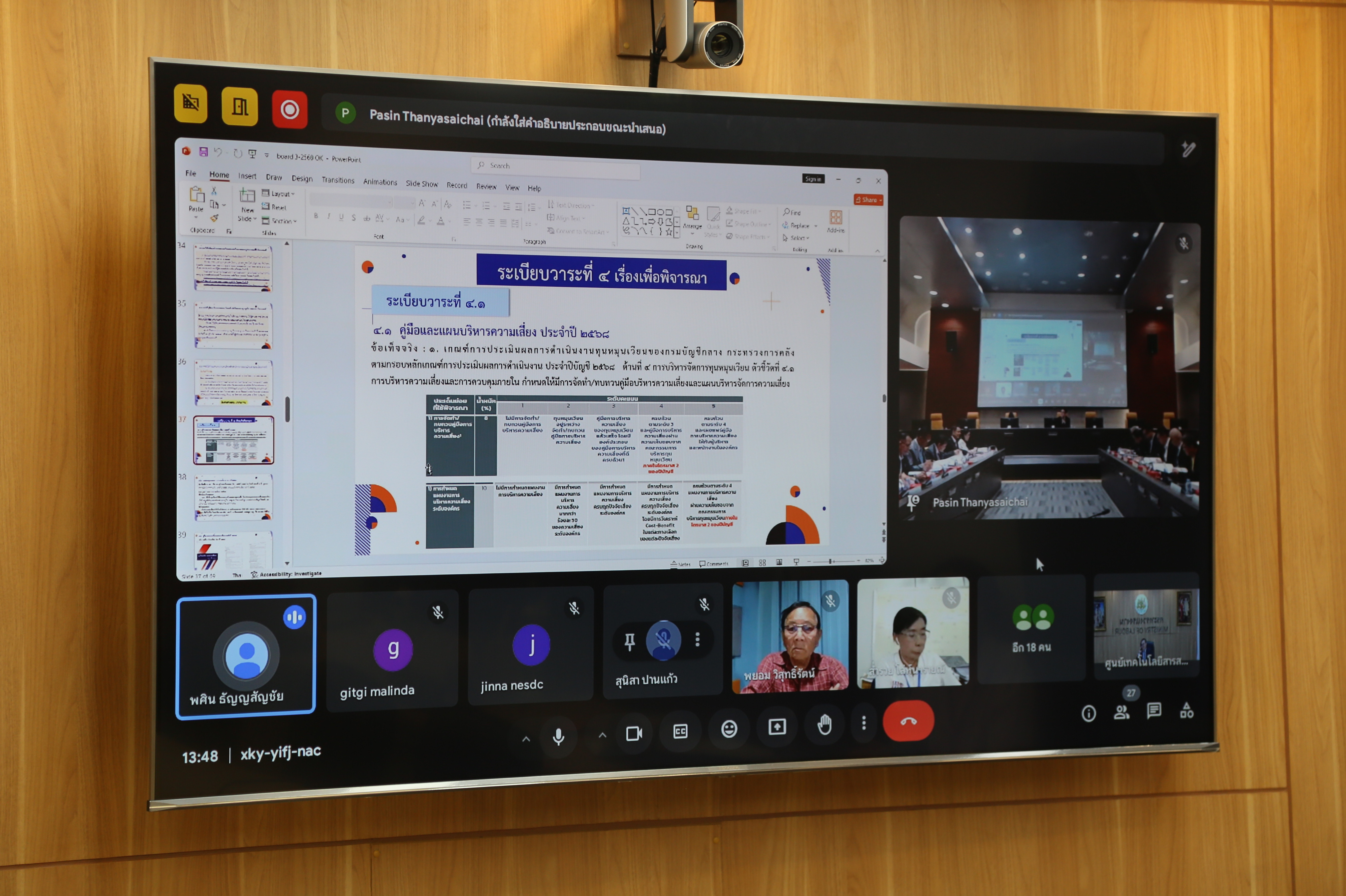 ในการนี้ ที่ประชุมได้หารือและพิจารณาคู่มือและแผนบริหารความเสี่ยง ประจำปี 2568 การดำเนินโครงการสนับสนุน เสริมสร้าง ศักยภาพกองทุนหมู่บ้านและชุมชนเมืองอย่างมั่นคง การกำหนดวงเงินจัดสรรงบประมาณโครงการสนับสนุน เสริมสร้าง ศักยภาพกองทุนหมู่บ้านและชุมชนเมืองอย่างมั่นคง ให้กับกองทุนหมู่บ้านและชุมชนเมือง การขอรับสนับสนุนงบกลางรายการเงินสำรองจ่ายเพื่อกรณีฉุกเฉินหรือจำเป็น ประจำปีงบประมาณ พ.ศ. 2568 เพื่อดำเนินโครงการสนับสนุน เสริมสร้าง ศักยภาพกองทุนหมู่บ้านและชุมชนเมืองอย่างมันคง แนวทางการสนับสนุนงบประมาณโครงการสนับสนุน เสริมสร้าง ศักยภาพกองทุนหมู่บ้านและชุมชนเมืองอย่างมั่นคง ในพื้นพื้นที่กรุงเทพมหานคร และ (ร่าง) คู่มือการดำเนินงานโครงการสนับสนุน เสริมสร้าง ศักยภาพกองทุนหมู่บ้านและชุมชนเมืองอย่างมั่นคง