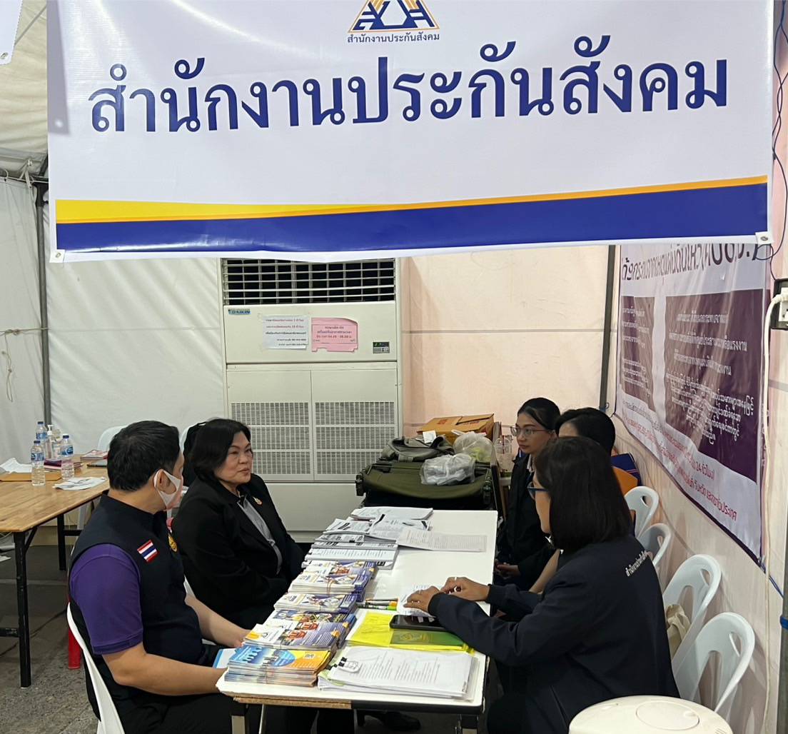 วันที่ 1 พฤษภาคม 2568 เวลา 13.30 น. นายบุญสงค์ ทัพชัยยุทธ์ ปลัดกระทรวงแรงงาน มอบหมายให้ นางสาวบุณยวีร์ ไขว้พันธุ์ หัวหน้าผู้ตรวจราชการกระทรวงแรงงาน ลงพื้นที่เยี่ยมให้กำลังใจเจ้าหน้าที่ผู้ปฏิบัติงาน เพื่อสร้างขวัญกำลังใจ และติดตามการให้ความช่วยเหลือด้านสิทธิประโยชน์แรงงาน บริเวณศูนย์ประสานงานและช่วยเหลือแรงงาน ผู้ได้รับผลกระทบจากเหตุแผ่นดินไหว (ศปช.รง.) และจุดรับแจ้งสิทธิประโยชน์ประกันสังคมผู้ได้รับผลกระทบจากเหตุโครงสร้างอาคารของโครงการก่อสร้างอาคารสำนักงานการตรวจเงินแผ่นดิน ถนนกำแพงเพชร 2 เขตจตุจักร กรุงเทพมหานคร ณ เต็นท์สำนักงานเขตจตุจักร กรุงเทพมหานคร ด้านข้างศูนย์การค้าเจเจมอลล์
