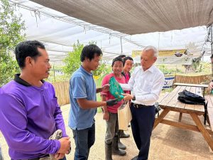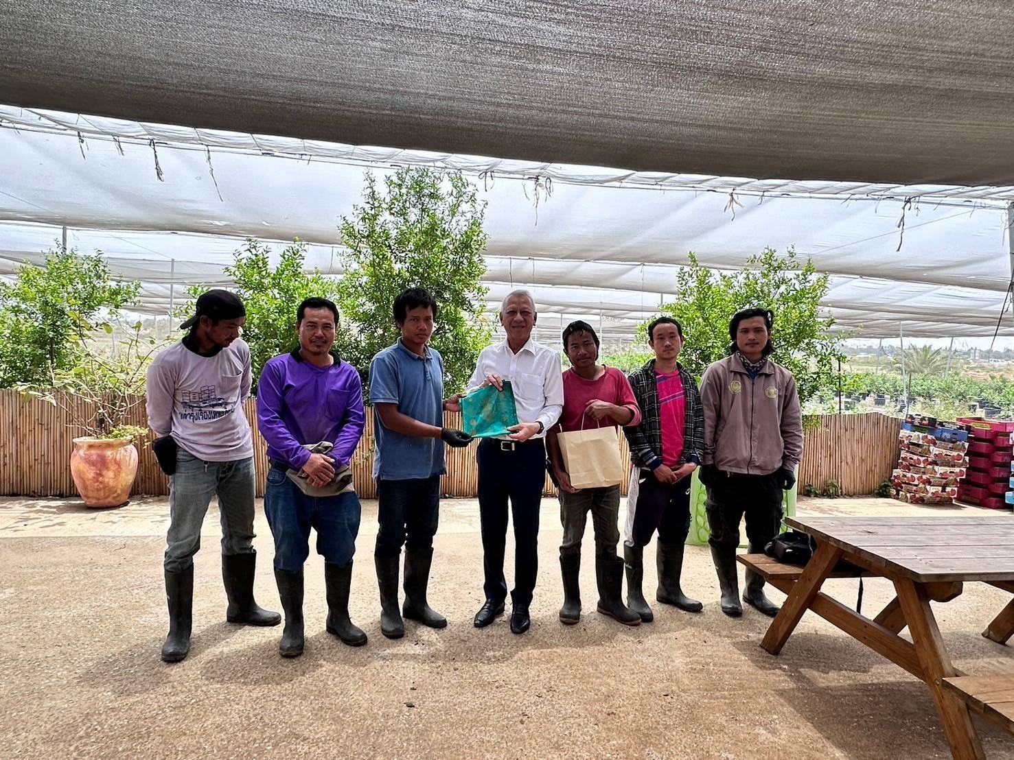 ทั้งนี้ ยังได้ร่วมมอบผ้ายันต์สมเด็จธงชัยและพระเครื่องให้กับแรงงานไทยเพื่อเป็นขวัญและกำลังใจด้วย
