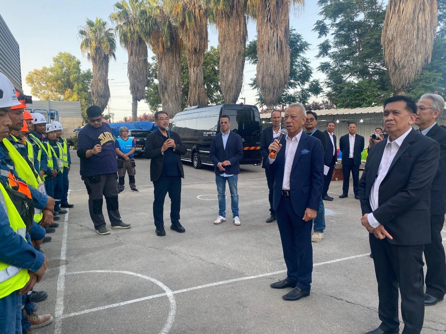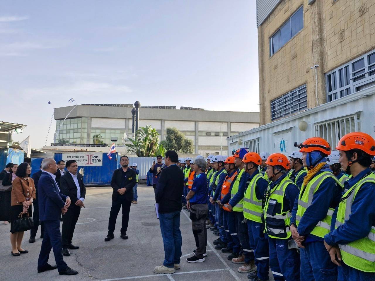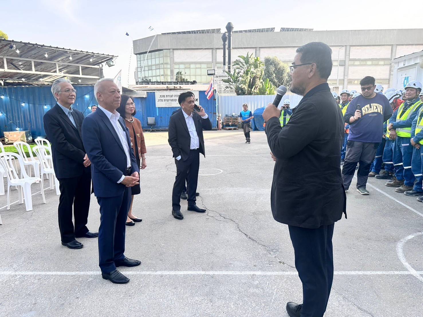 เมื่อวันที่ 26 พฤษภาคม 2567 นายไพโรจน์ โชติกเสถียร ปลัดกระทรวงแรงงาน พร้อมด้วย นายสมาสภ์ ปัทมะสุคนธ์ ผู้ตรวจราชการกระทรวงแรงงาน ร่วมคณะ นายพิพัฒน์ รัชกิจประการ รัฐมนตรีว่าการกระทรวงแรงงาน ลงพื้นที่ บริษัท Chemo Aharon Co. Ltd รัฐอิสราเอล เยี่ยมแรงงานไทยที่ทำงานในสาขาช่างเชื่อม พร้อมร่วมตรวจเยี่ยมสถานประกอบการ ที่พักแรงงานไทย รวมถึงร่วมมอบยันต์สมเด็จธงชัยเพื่อเป็นกำลังใจในการทำงาน โดยมี นาย ยอสซี่ เคโม่ (Mr.Yossi Chemo) นายจ้างบริษัทฯ ให้การต้อนรับ