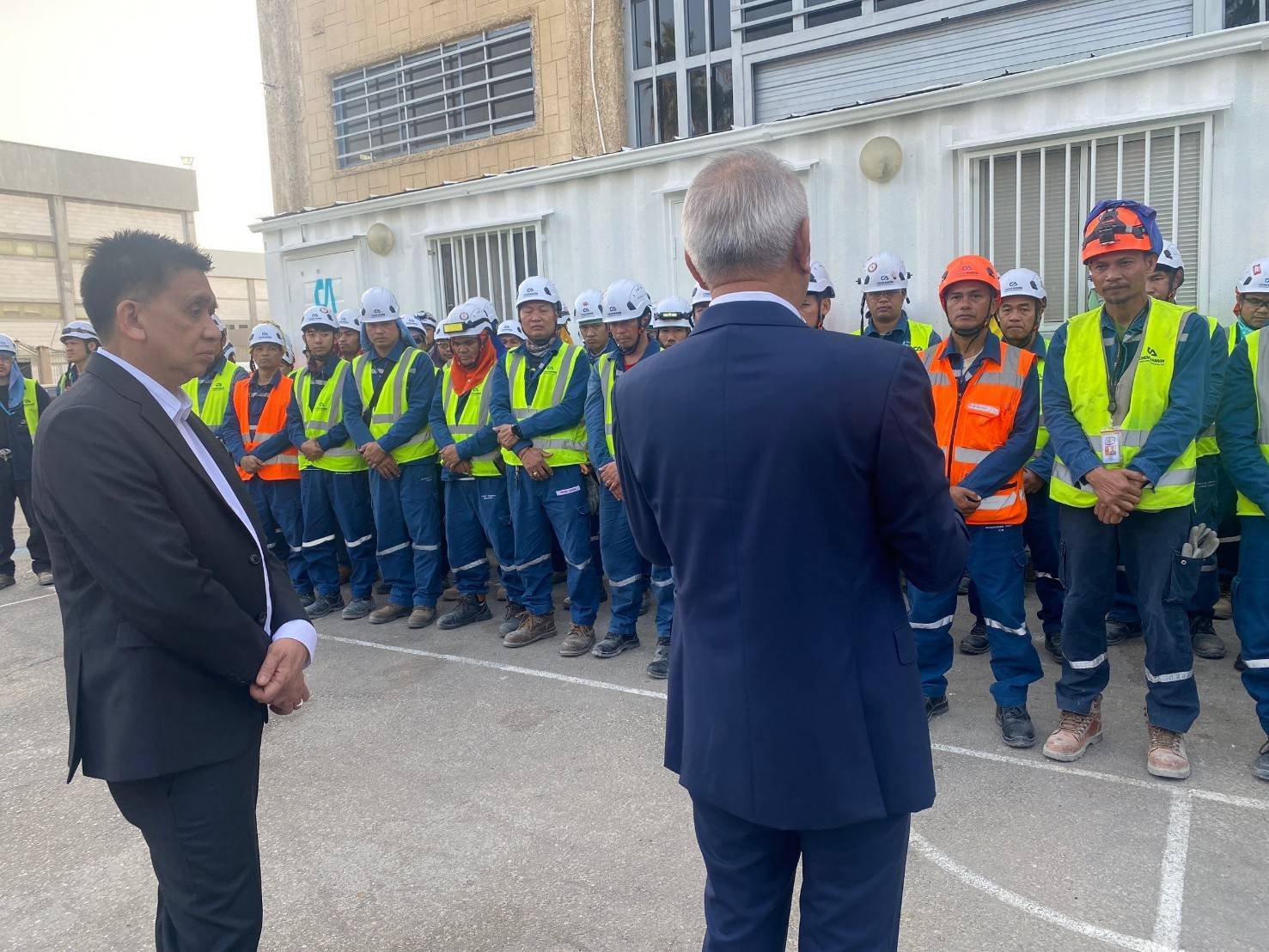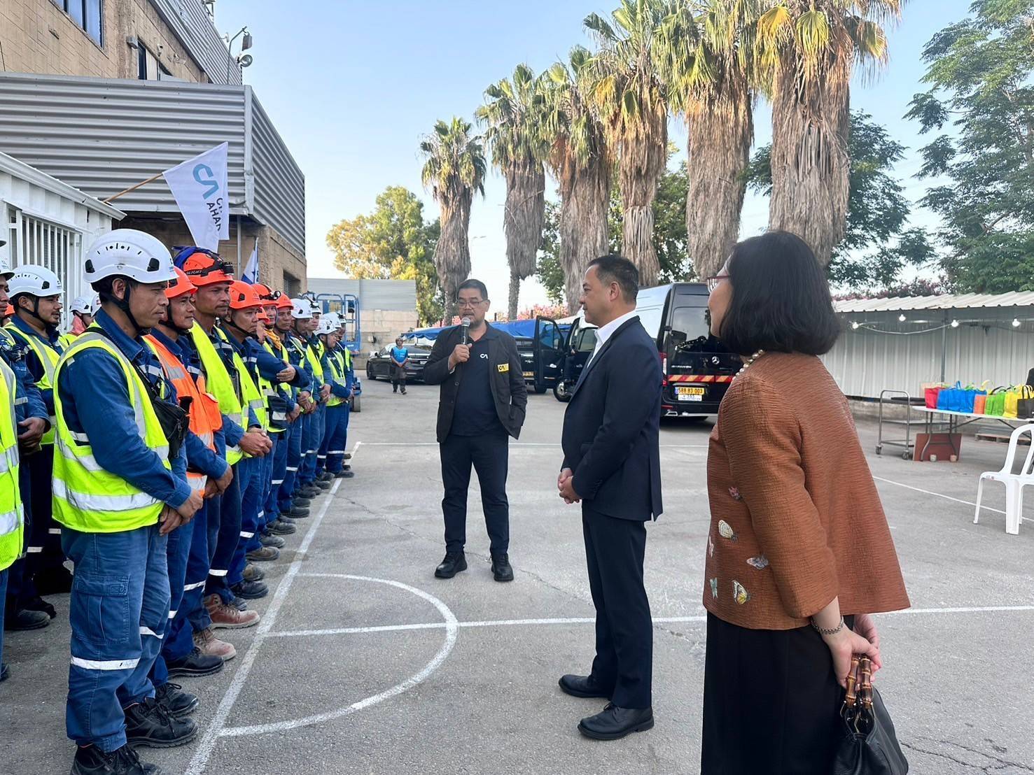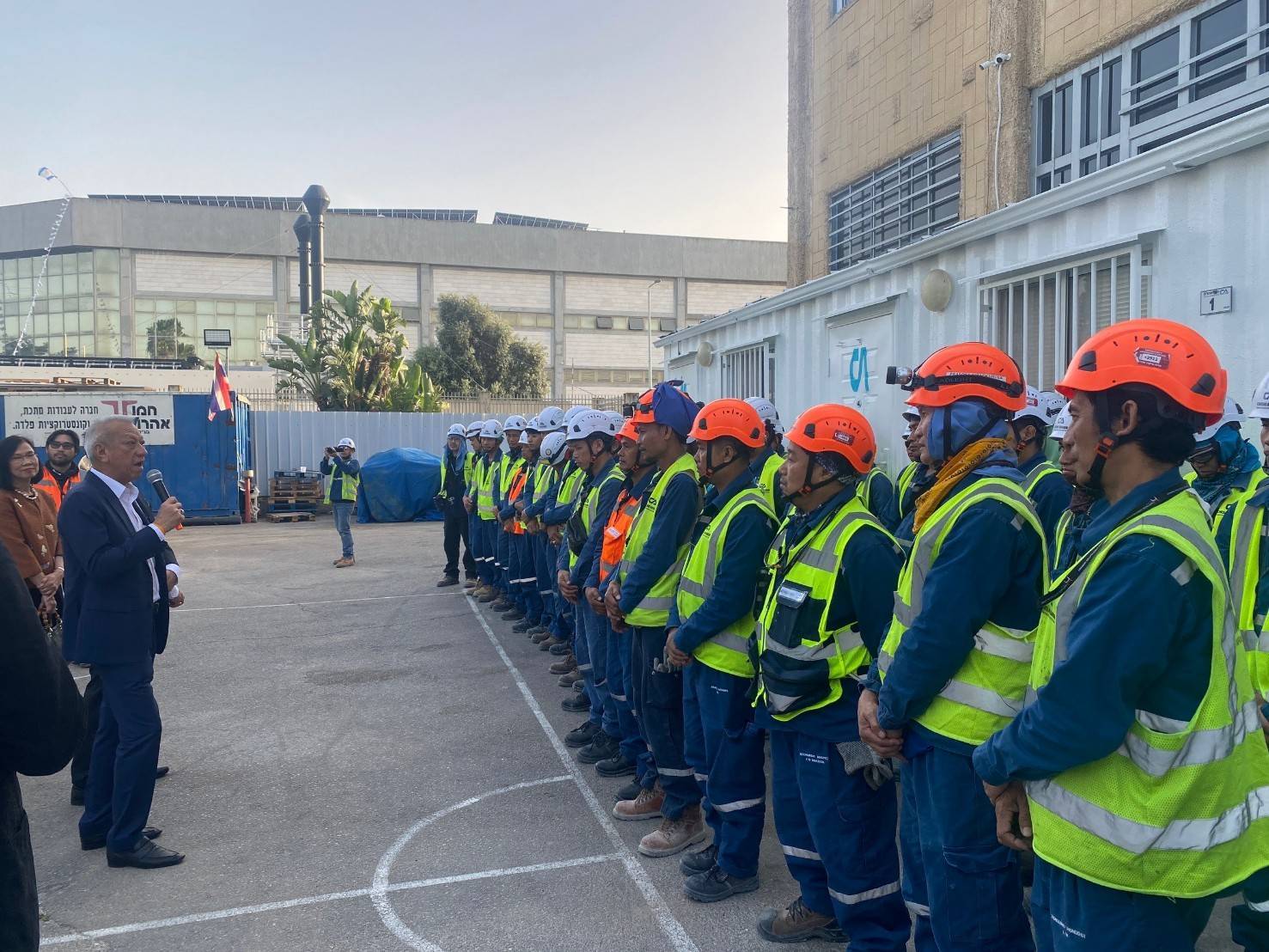 เมื่อวันที่ 26 พฤษภาคม 2567 นายไพโรจน์ โชติกเสถียร ปลัดกระทรวงแรงงาน พร้อมด้วย นายสมาสภ์ ปัทมะสุคนธ์ ผู้ตรวจราชการกระทรวงแรงงาน ร่วมคณะ นายพิพัฒน์ รัชกิจประการ รัฐมนตรีว่าการกระทรวงแรงงาน ลงพื้นที่ บริษัท Chemo Aharon Co. Ltd รัฐอิสราเอล เยี่ยมแรงงานไทยที่ทำงานในสาขาช่างเชื่อม พร้อมร่วมตรวจเยี่ยมสถานประกอบการ ที่พักแรงงานไทย รวมถึงร่วมมอบยันต์สมเด็จธงชัยเพื่อเป็นกำลังใจในการทำงาน โดยมี นาย ยอสซี่ เคโม่ (Mr.Yossi Chemo) นายจ้างบริษัทฯ ให้การต้อนรับ