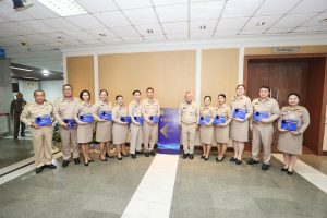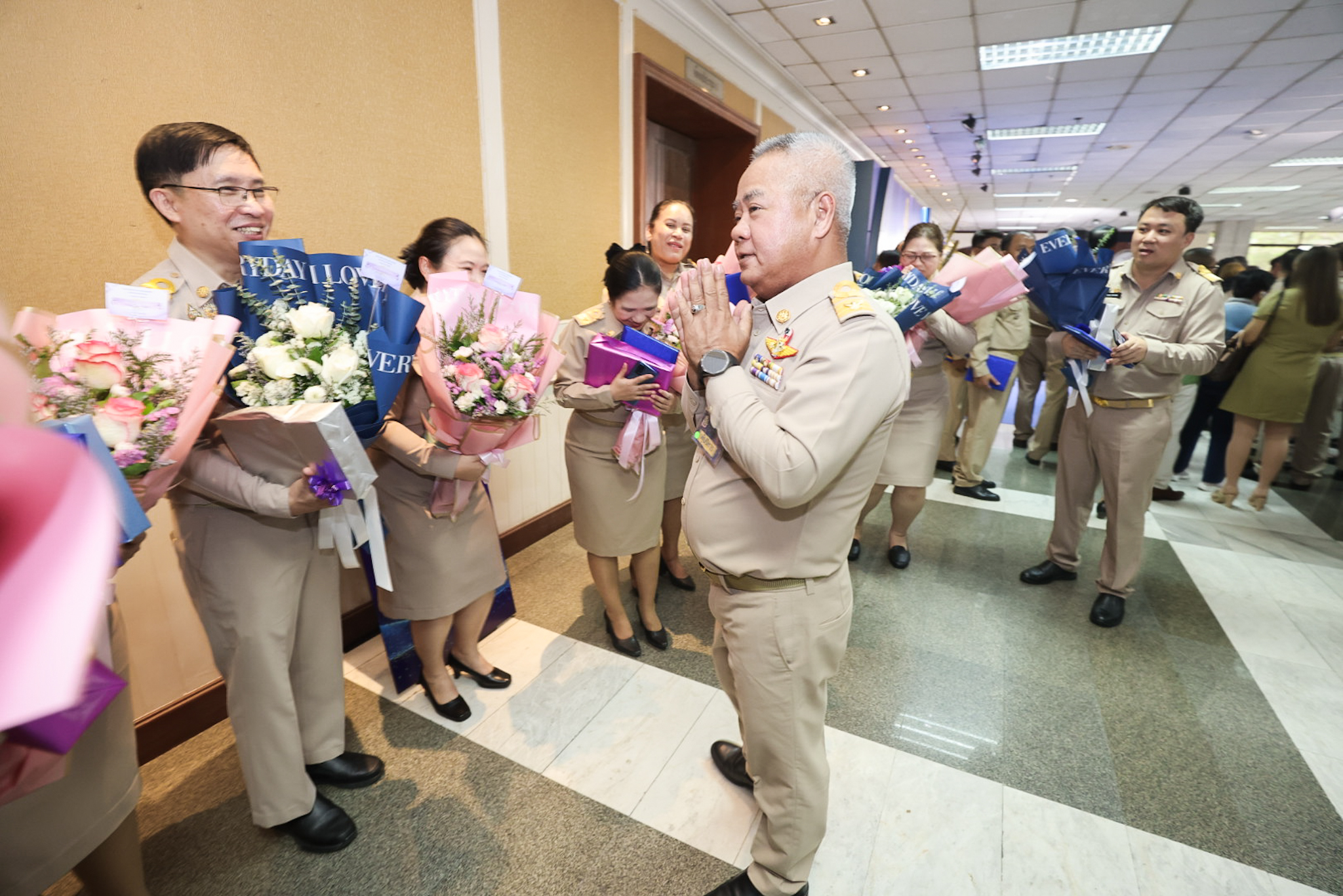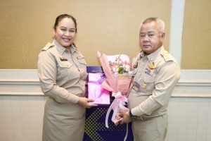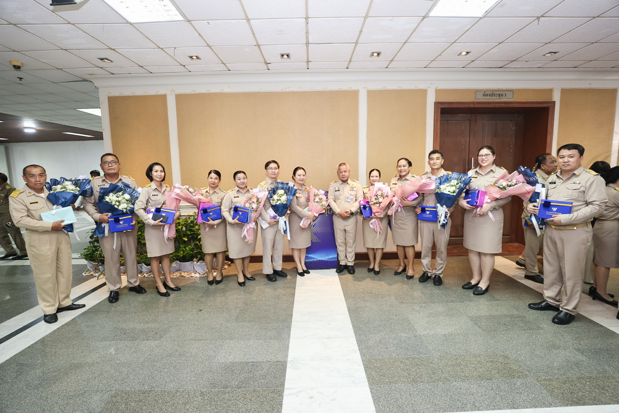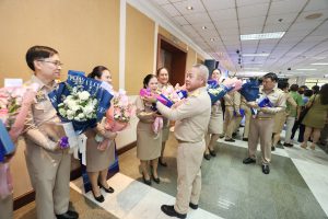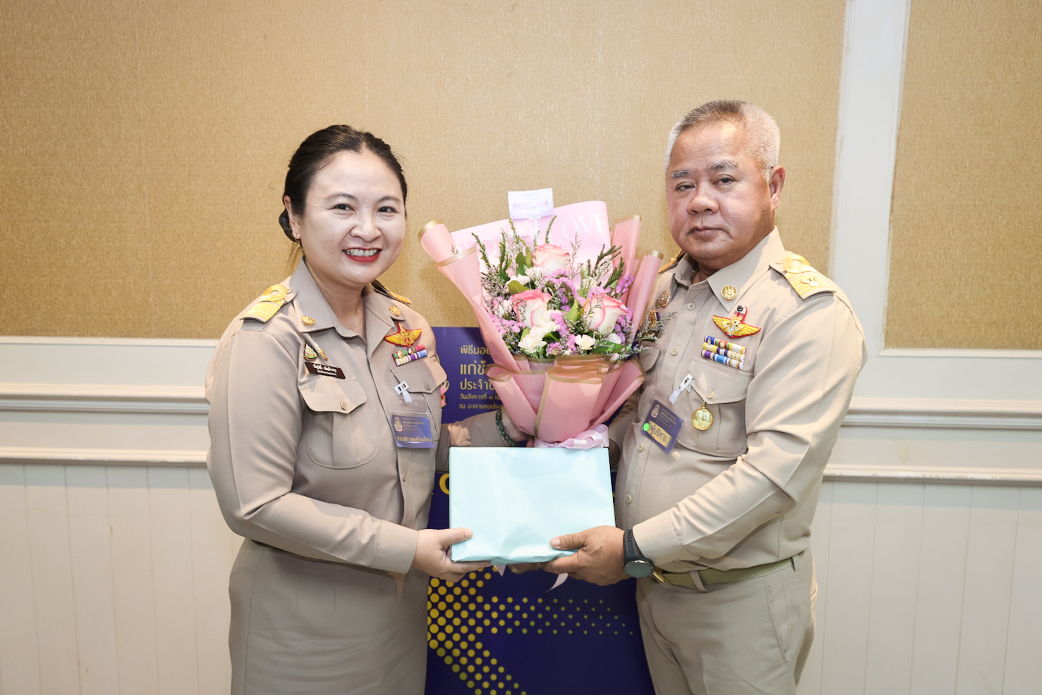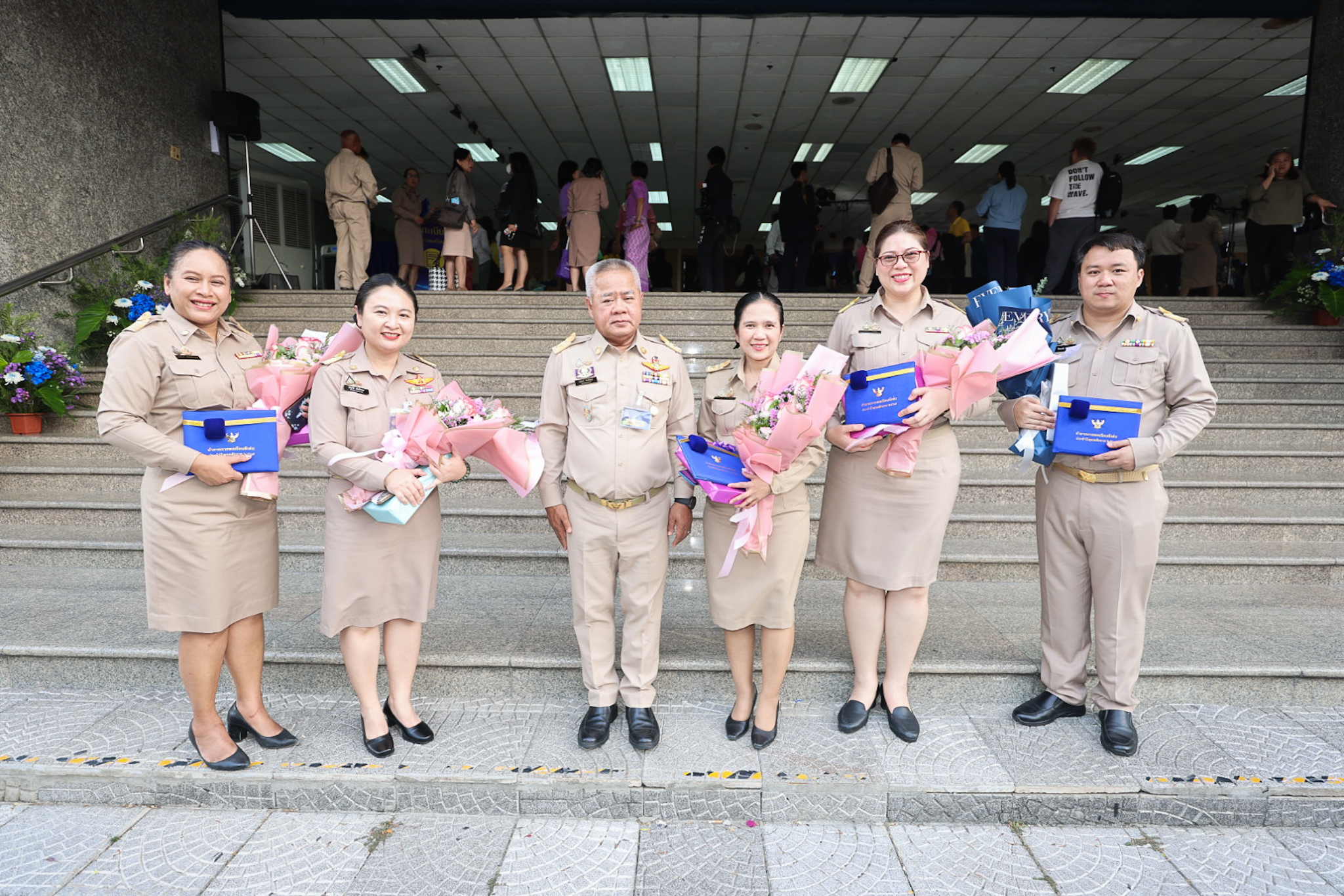 ในการนี้ ปลัดกระทรวงแรงงาน ได้มอบช่อดอกไม้และของที่ระลึก เพื่อแสดงความยินดีกับข้าราชการพลเรือนดีเด่นกระทรวงแรงงาน 12 คนที่เข้าร่วมพิธีรับมอบเกียรติบัตรและเข็มเชิดชูเกียรติในครั้งนี้ด้วย
