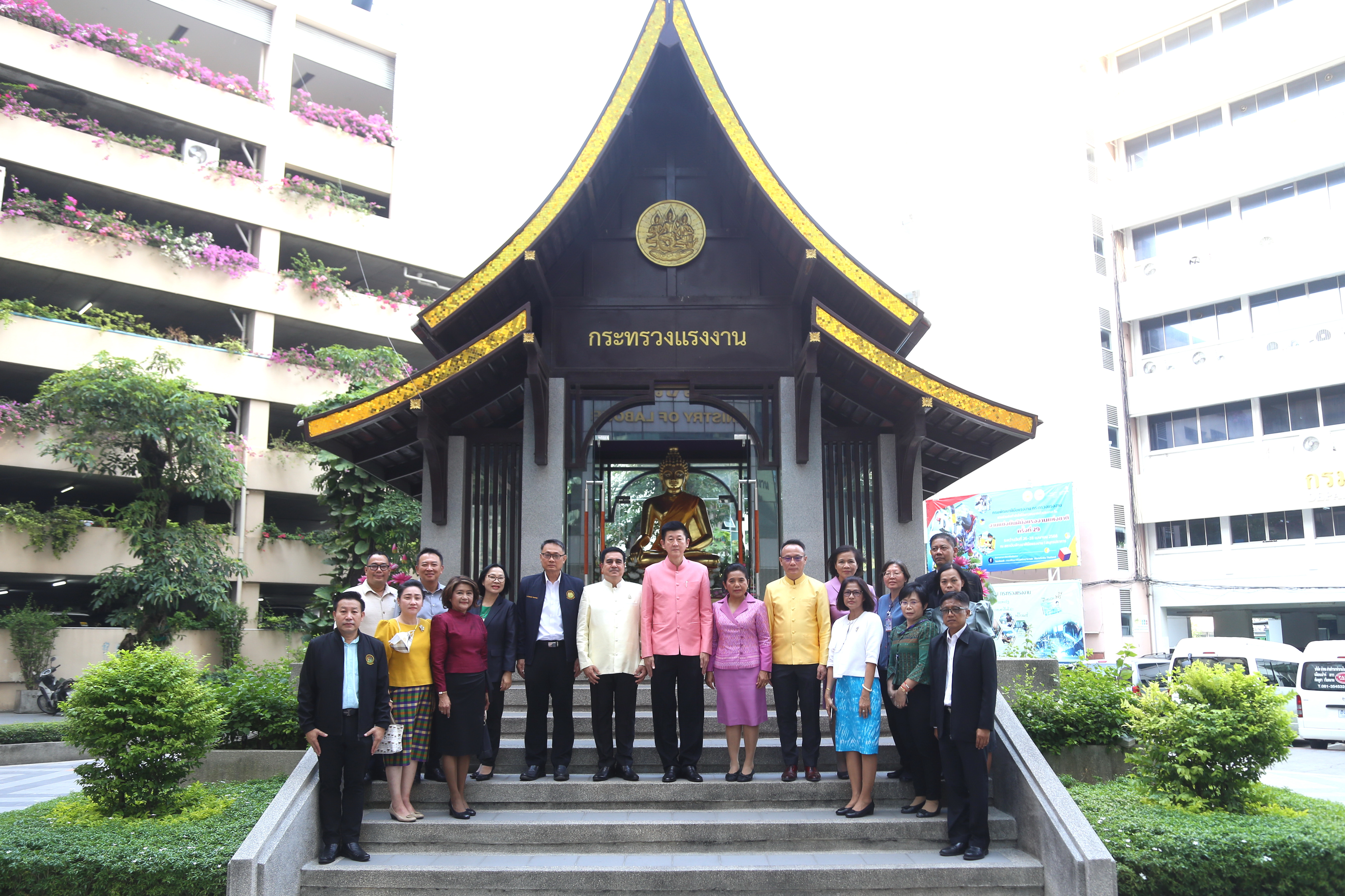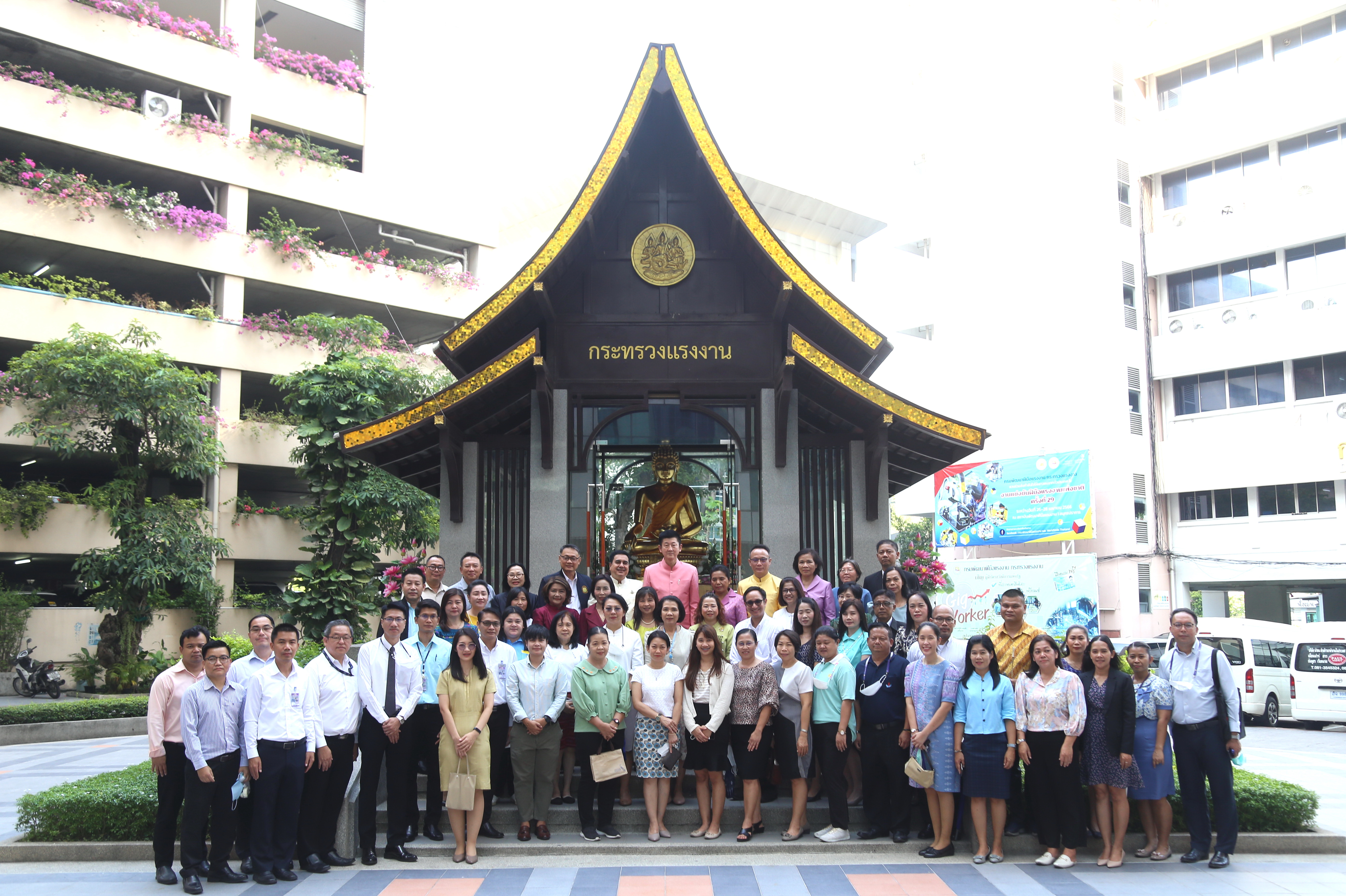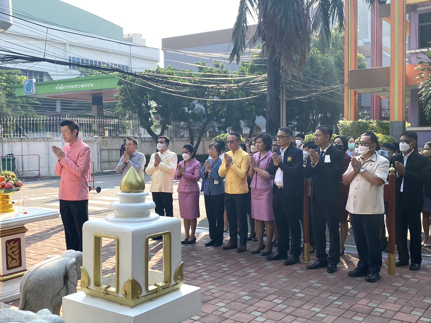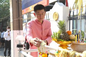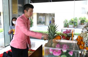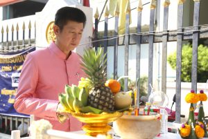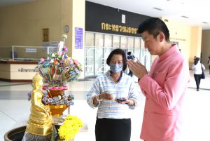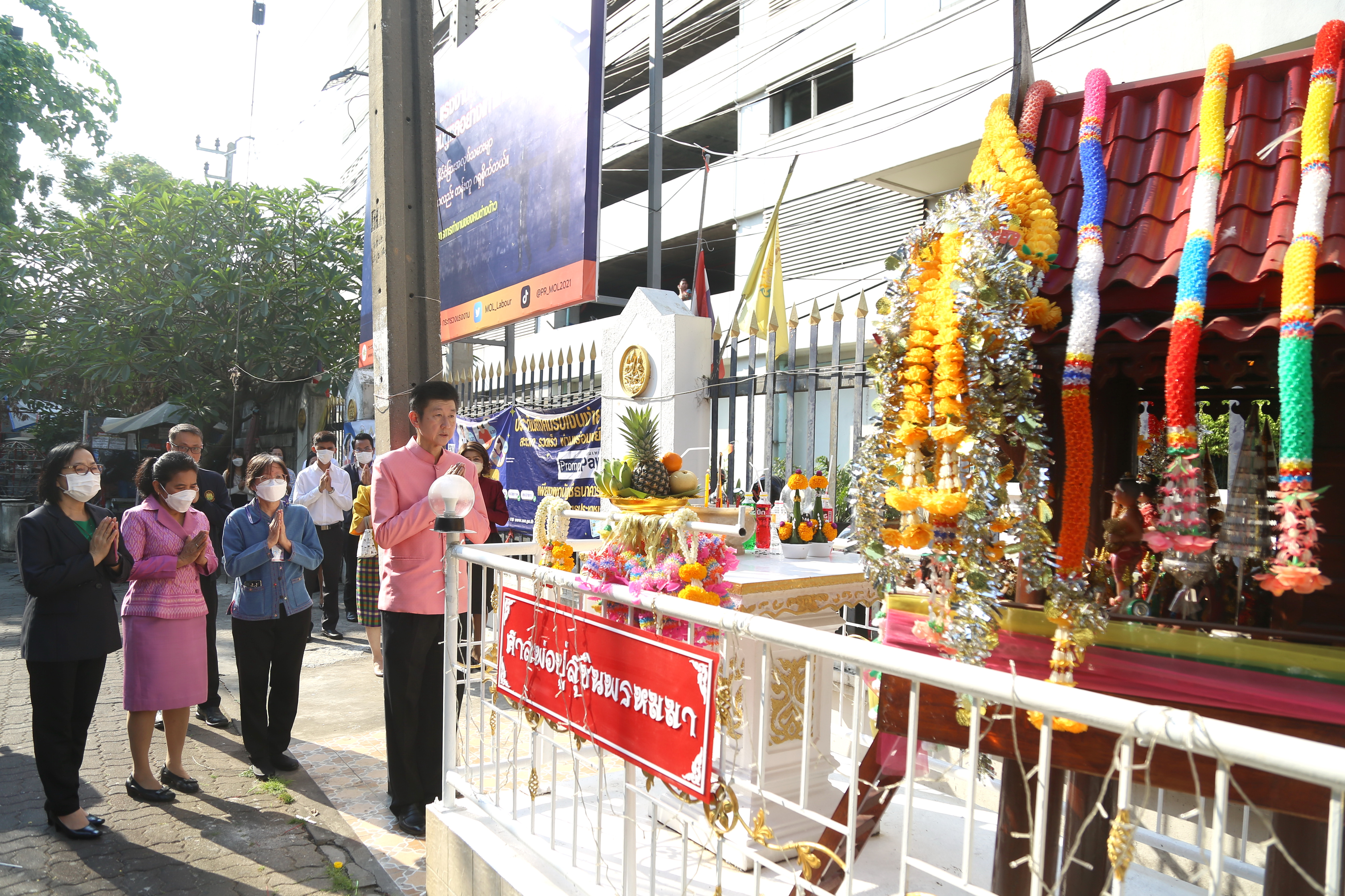 On April 5, 2023, at 08.00 hours, the Permanent Secretary of Labour, Mr. Boonchob Suttamanaswong, paid homage to the Ministry of Labour’s sacred objects, consisting of San Thao Mahaprom Thewarit, San Por Pu Chai Mongkhon, Phra Phut Chinnarat, Phra Phut Sutthitham Bophit, and San Por Pu Suchin Promma, for prosperity. The Ministry of Labour’s senior executives, civil servants, and officials also attended the ceremony at the Ministry of Labour.