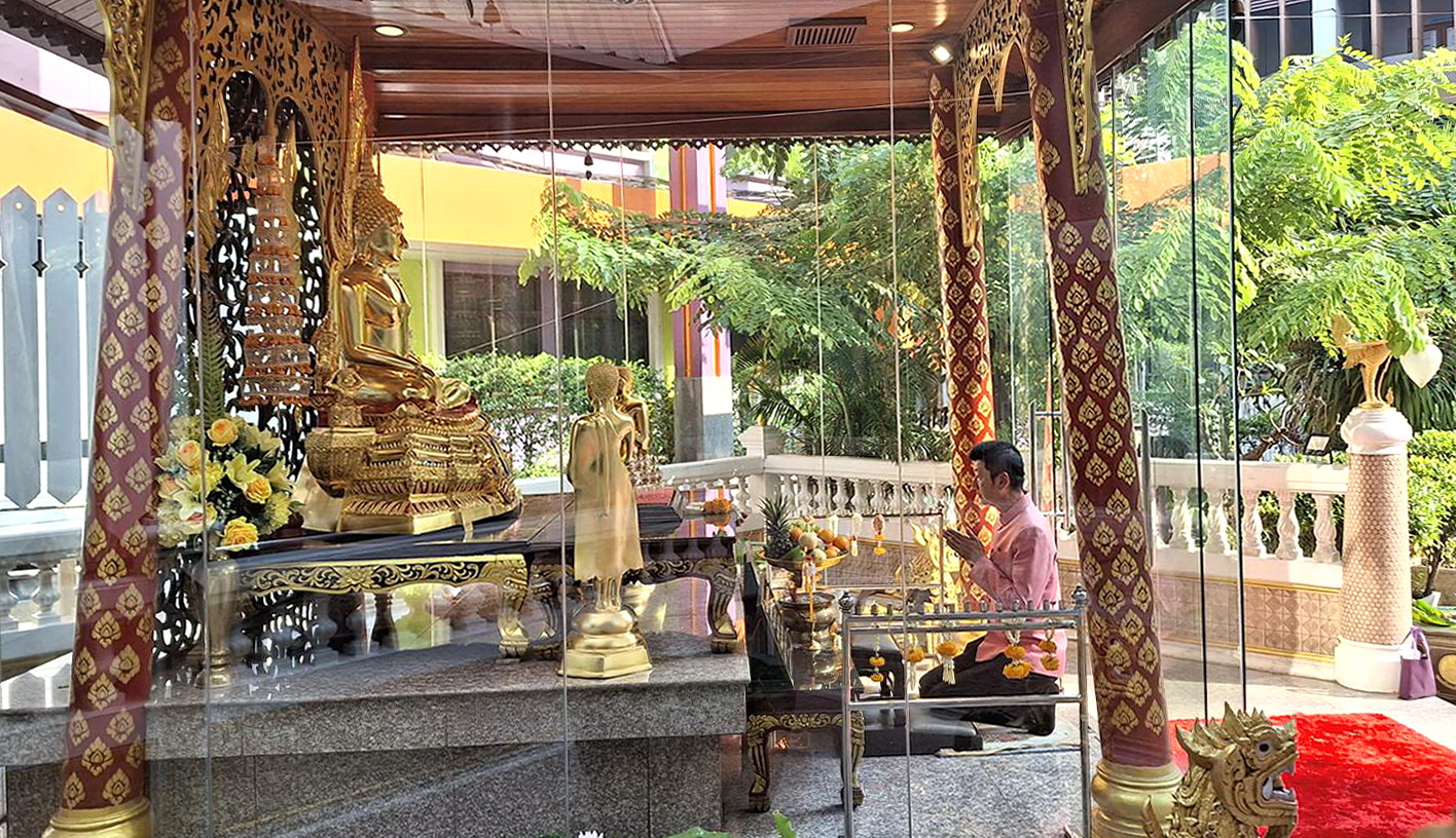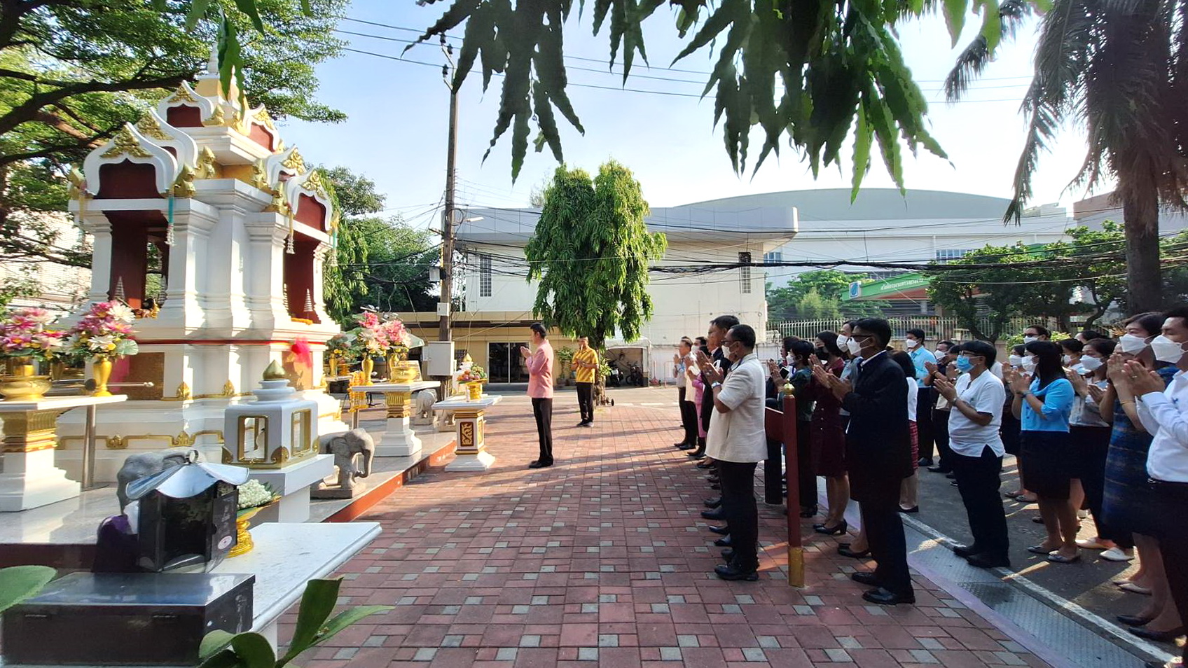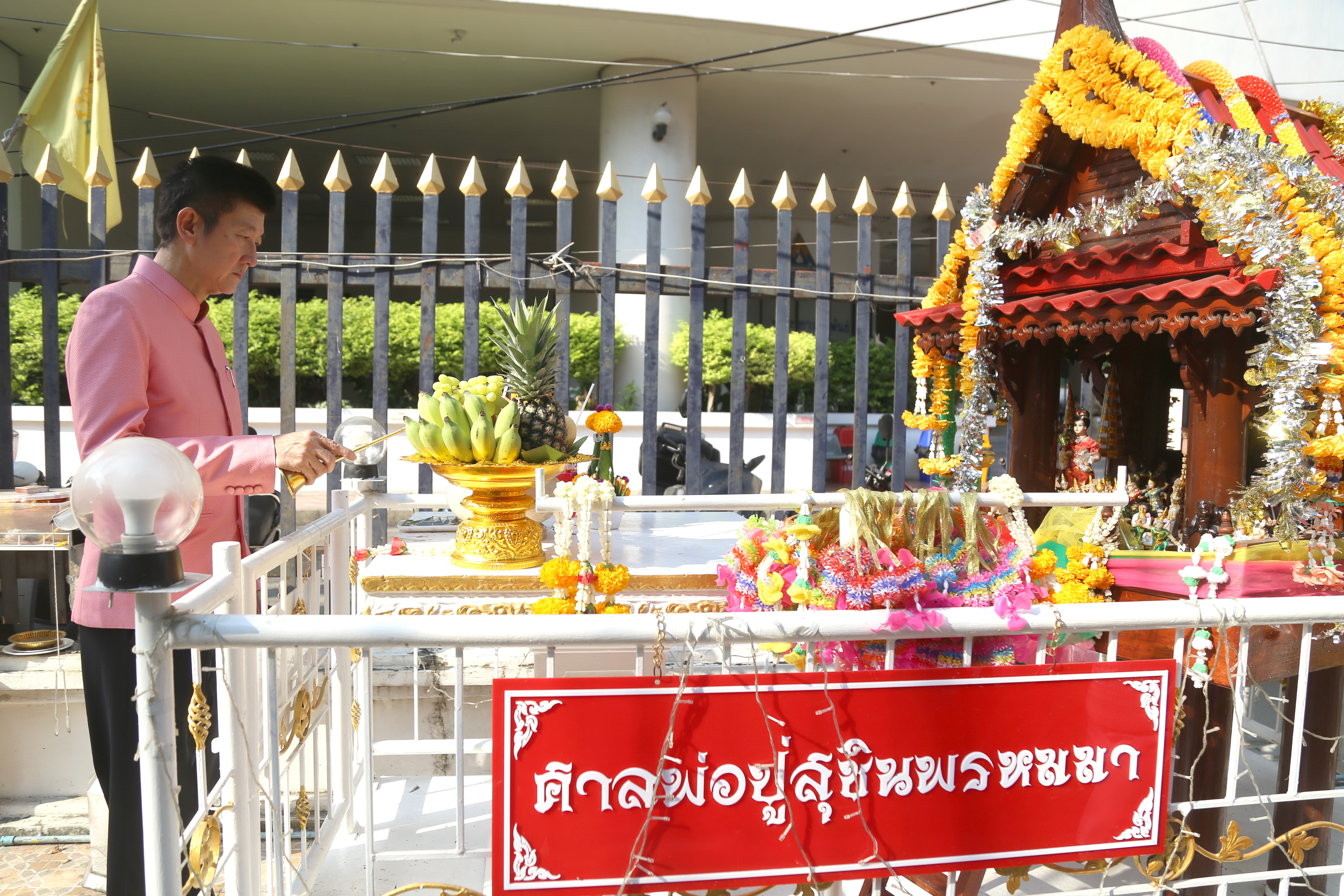 On April 5, 2023, at 08.00 hours, the Permanent Secretary of Labour, Mr. Boonchob Suttamanaswong, paid homage to the Ministry of Labour’s sacred objects, consisting of San Thao Mahaprom Thewarit, San Por Pu Chai Mongkhon, Phra Phut Chinnarat, Phra Phut Sutthitham Bophit, and San Por Pu Suchin Promma, for prosperity. The Ministry of Labour’s senior executives, civil servants, and officials also attended the ceremony at the Ministry of Labour.