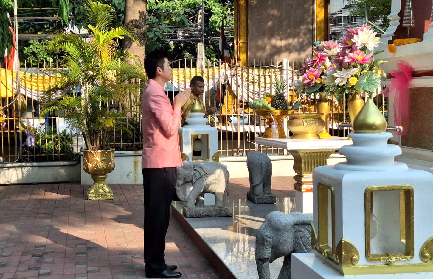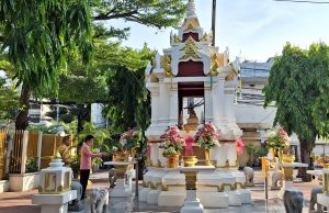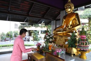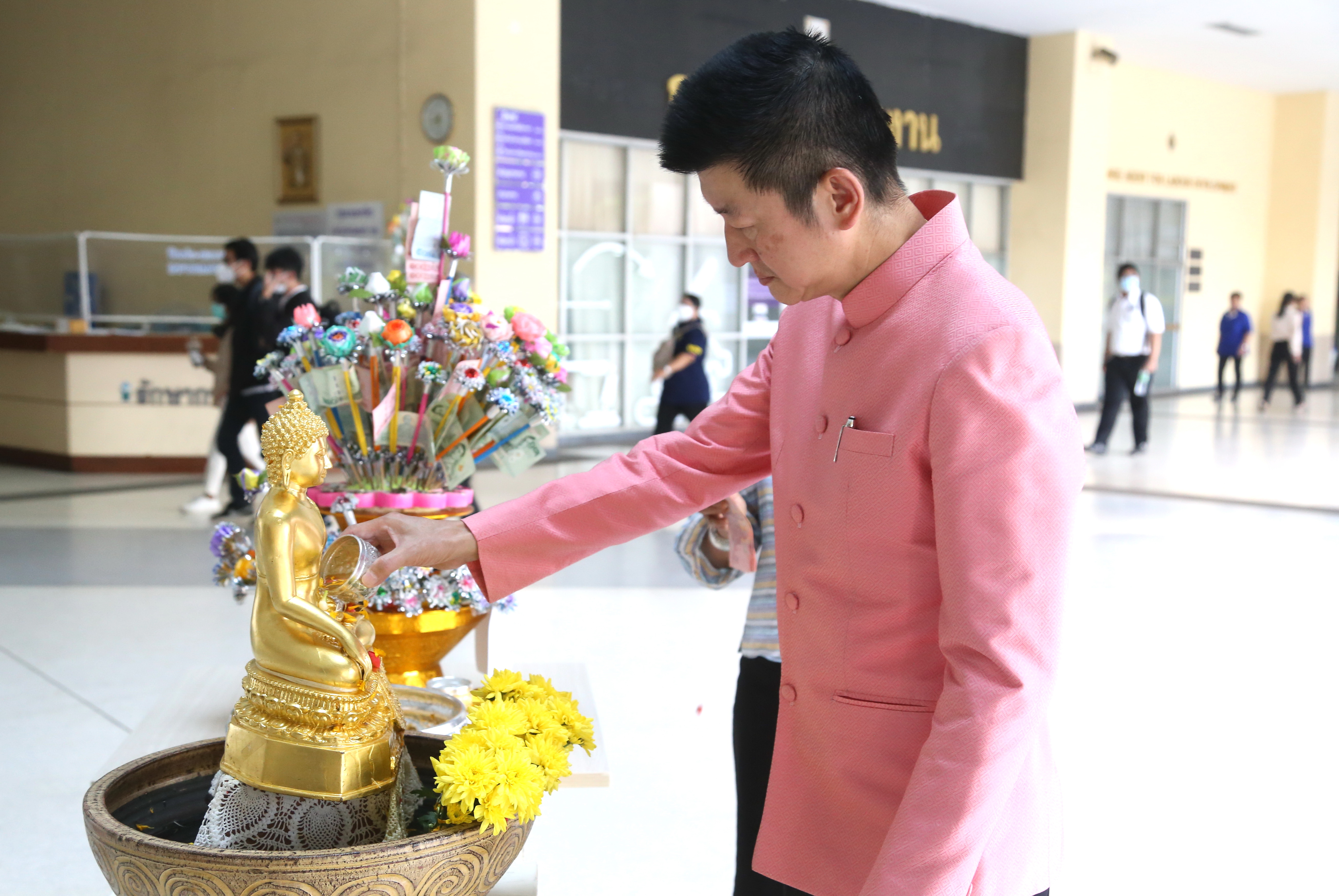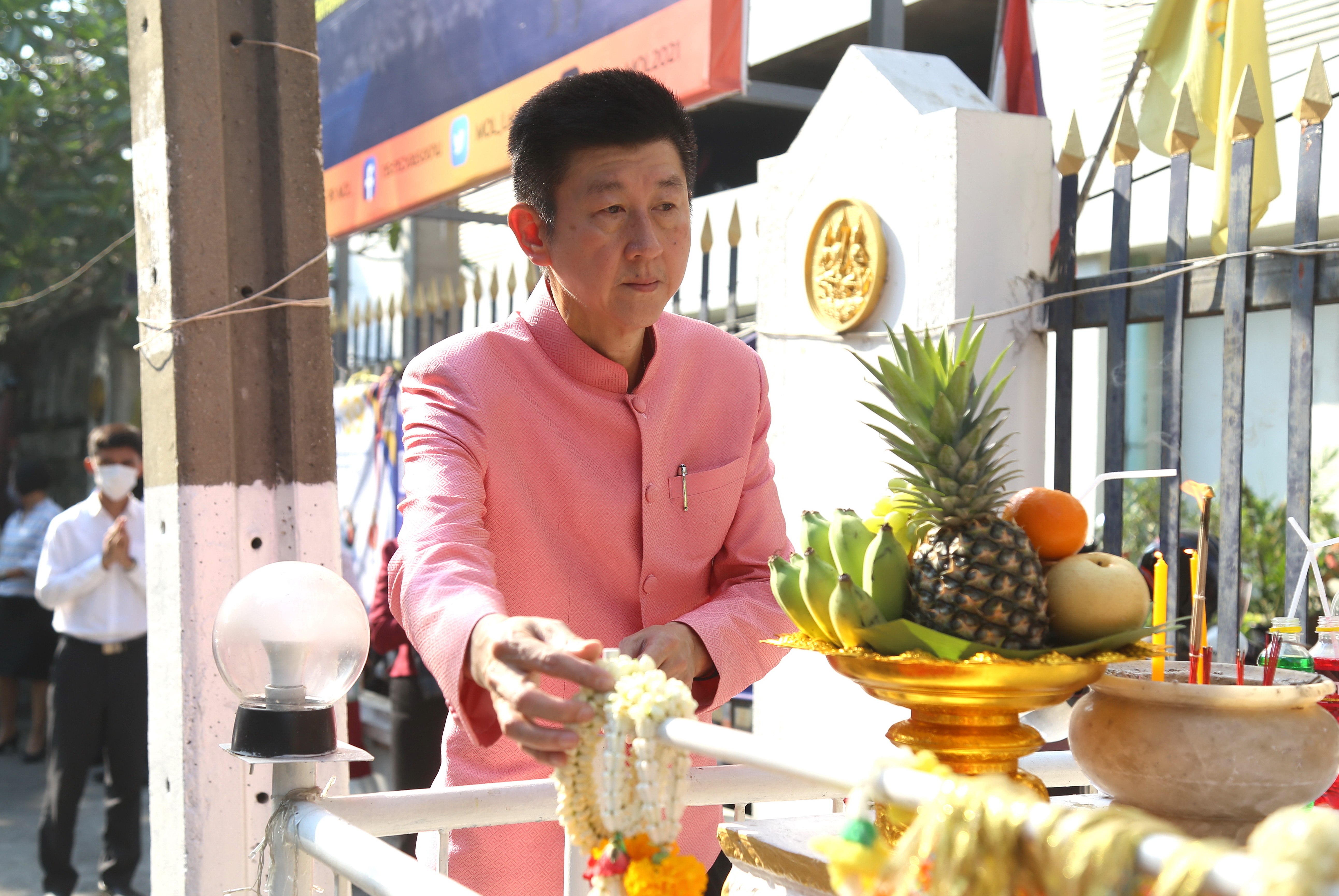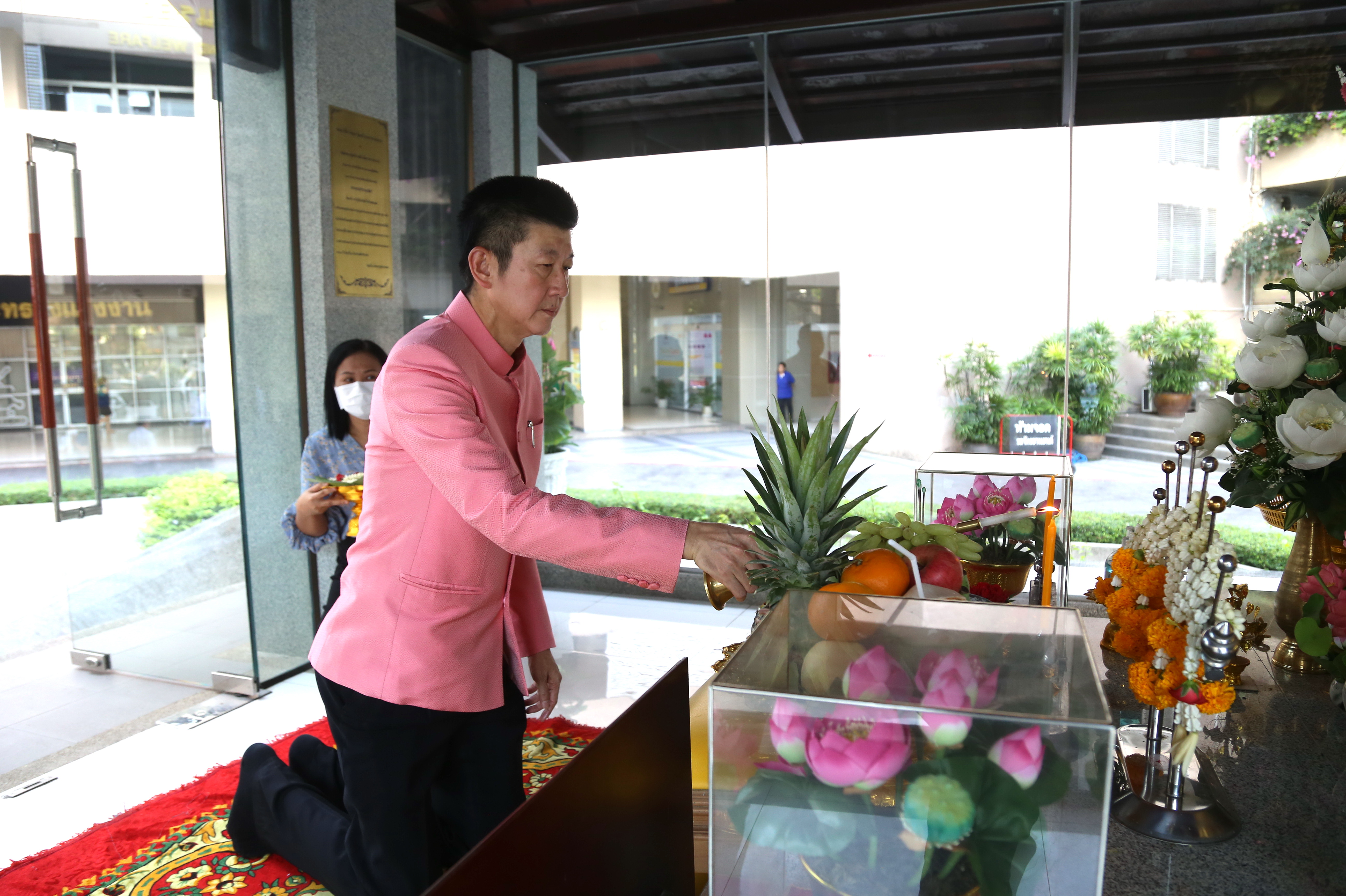 On April 5, 2023, at 08.00 hours, the Permanent Secretary of Labour, Mr. Boonchob Suttamanaswong, paid homage to the Ministry of Labour’s sacred objects, consisting of San Thao Mahaprom Thewarit, San Por Pu Chai Mongkhon, Phra Phut Chinnarat, Phra Phut Sutthitham Bophit, and San Por Pu Suchin Promma, for prosperity. The Ministry of Labour’s senior executives, civil servants, and officials also attended the ceremony at the Ministry of Labour.