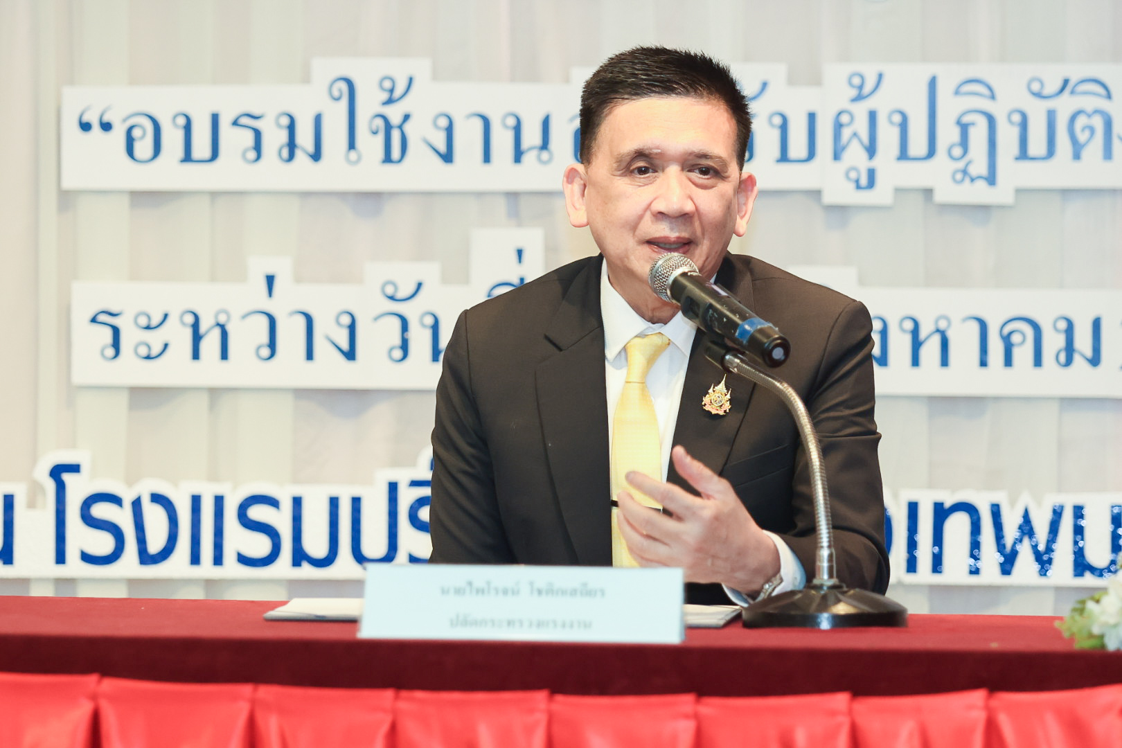 นายไพโรจน์ กล่าวว่า ผมรู้สึกยินดีและเป็นเกียรติอย่างยิ่งที่ได้มาเป็นประธานในพิธีเปิดการฝึกอบรมโครงการพัฒนาแพลตฟอร์มบริหารจัดการฐานข้อมูลและการบริการสำหรับแรงงานนอกระบบ ซึ่งสำนักงานปลัดกระทรวงแรงงาน โดยศูนย์เทคโนโลยีสารสนเทศและการสื่อสาร ได้จัดขึ้นในวันนี้ และขอชื่นชมกับความตั้งใจในการที่จะพัฒนาตัวเองของทุกท่านที่เข้ามาฝึกอบรมโครงการนี้ที่เป็นหลักสูตรการใช้งานระบบสำหรับผู้ปฏิบัติงาน ซึ่งเป็นส่วนสำคัญของการขับเคลื่อนงานบริการในรูปแบบอิเล็กทรอทรอนิกส์ของกระทรวงแรงงานในระดับพื้นที่ ให้บริการประชาชนกลุ่มเป้าหมายแรงงานนอกระบบได้เข้าถึงสวัสดิการและสิทธิประโยชน์ต่าง ๆ ตามพระราชบัญญัติส่งเสริมและคุ้มครองแรงงานอิสระที่จะเกิดขึ้น โดยมีแรงงานจังหวัดเป็นผู้แทน มีอาสาสมัครแรงงาน และบัณฑิตแรงงาน เป็นผู้ที่นำการบริการด้านแรงงานไปสู่ประชาชนในพื้นที่ โดยมุ่งหวังผลสัมฤทธิ์ในการดำเนินงานให้ประชาชนสามารถพึ่งพาตนเองได้อย่างยั่งยืน มีความมั่นคงในการทำงาน มีหลักประกัน และมีคุณภาพชีวิตที่ดี