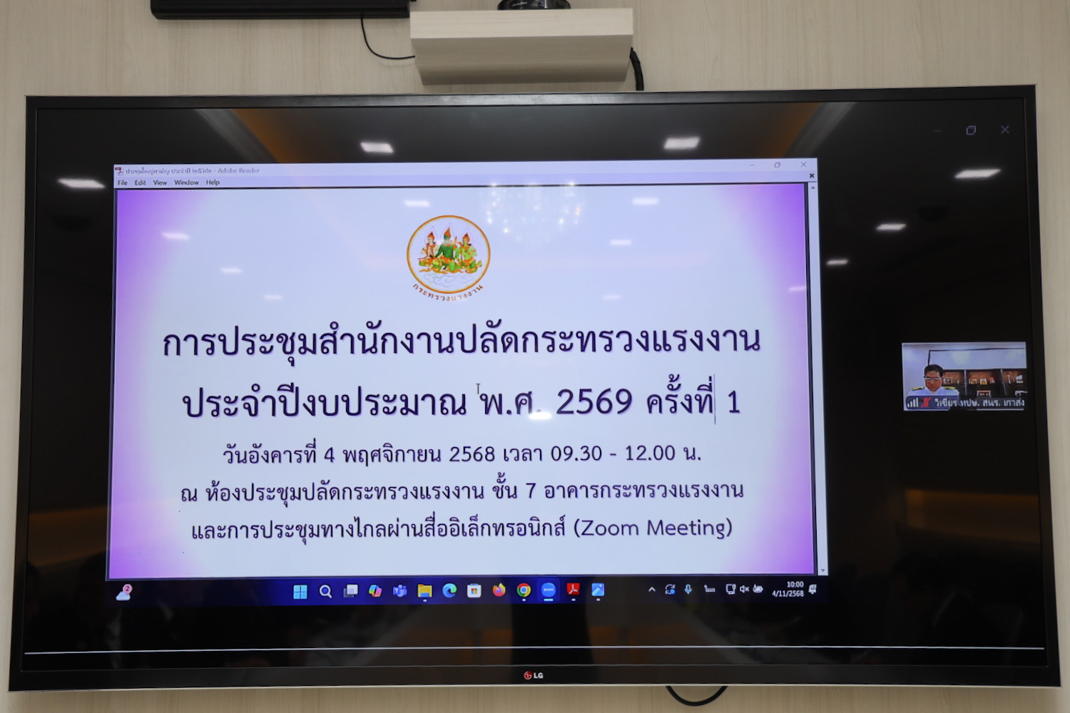 วันที่ 4 พฤศจิกายน 2568 เวลา 10.00 น. พันตำรวจโท วรรณพงษ์ คชรักษ์ ปลัดกระทรวงแรงงาน เป็นประธานการประชุมสำนักงานปลัดกระทรวงแรงงาน ประจำปีงบประมาณ พ.ศ.2569 ครั้งที่ 1 โดยมี นางสาวบุปผา เรืองสุด เลขาธิการสำนักงานประกันสังคม รักษาราชการแทนรองปลัดกระทรวงแรงงาน นายสันติ นันตสุวรรณ รองปลัดกระทรวงแรงงาน นายสมชาย มรกตศรีวรรณ หัวหน้าผู้ตรวจราชการกระทรวงแรงงาน นางสาวบุณยวีร์ ไขว้พันธุ์ ผู้ตรวจราชการกระทรวงแรงงาน นางสาวกาญจนา พูลแก้ว ผู้ตรวจราชการกระทรวงแรงงาน ว่าที่ร้อยตรี สมศักดิ์ พรหมดำ ผู้ตรวจราชการกระทรวงแรงงาน นางสาวจีระภา บุญรัตน์ ผู้ตรวจราชการกระทรวงแรงงาน นายสิบหมื่นชัย โพธิสินธุ์ ผู้ตรวจราชการกระทรวงแรงงาน นายเกริกไกร นาสมยนต์ ที่ปรึกษากฎหมาย นายณัฐวุฒิ ภัทรประยูร ที่ปรึกษาวิชาการแรงงาน นางสาวกรจิรัฏฐ์ พงจันทร์ศธร ผู้ช่วยปลัดกระทรวงแรงงาน นายศักดินาถ สนธิศักดิ์โยธิน ผู้ช่วยปลัดกระทรวงแรงงาน ร่วมประชุม ณ ห้องประชุมปลัดกระทรวงแรงงาน ชั้น 7 อาคารกระทรวงแรงงาน และผู้บริหารกระทรวงแรงงาน ทั้งส่วนกลาง ส่วนภูมิภาค และสำนักงานแรงงานในต่างประเทศ ร่วมการประชุมทางไกลผ่านสื่ออิเล็กทรอนิกส์ (Zoom Meeting)