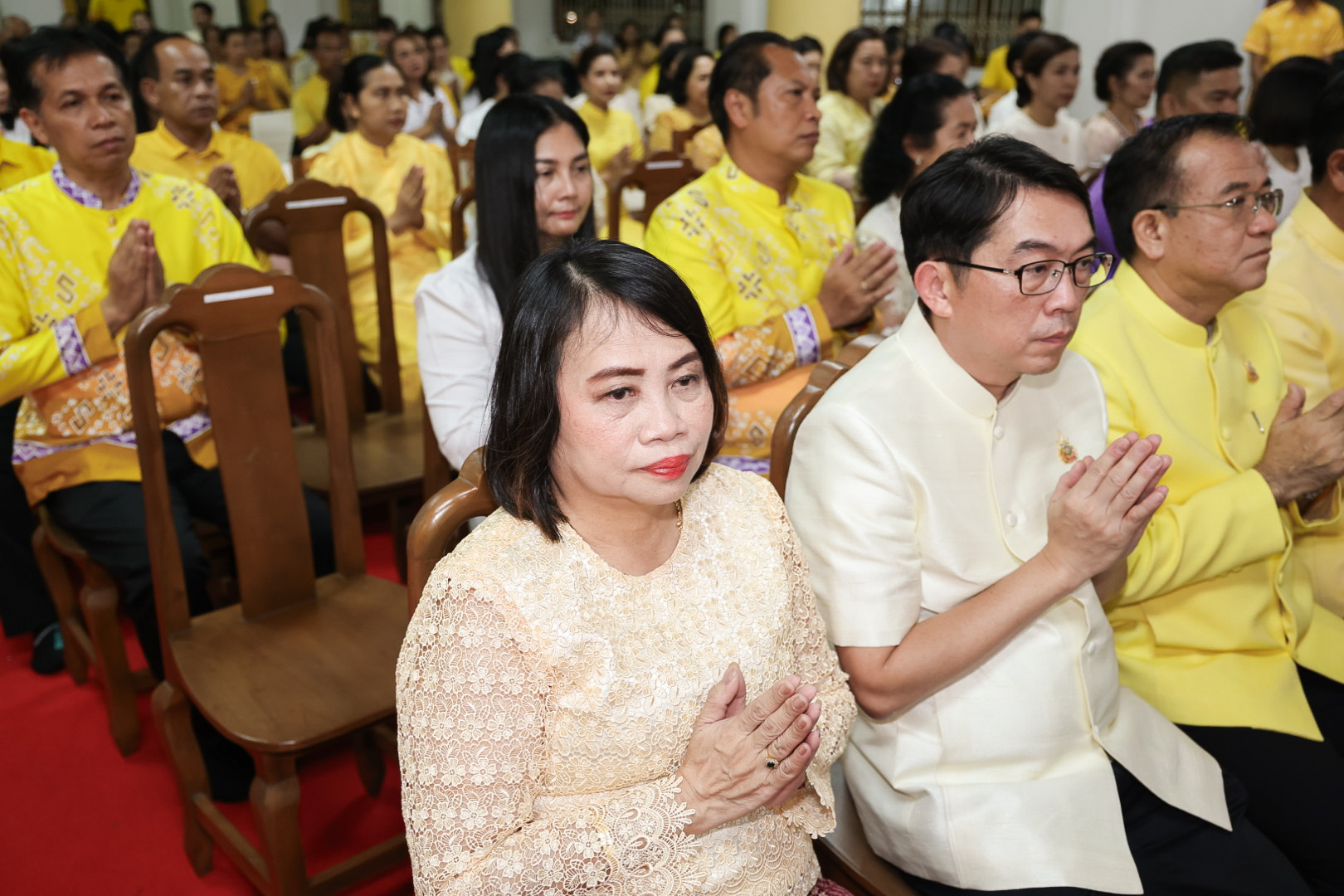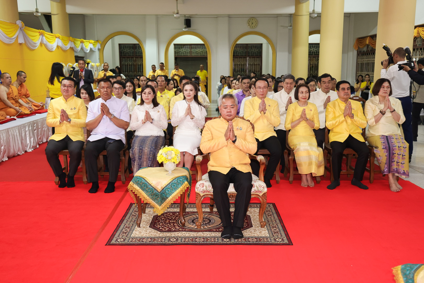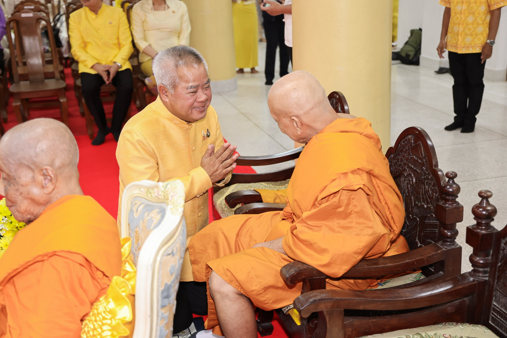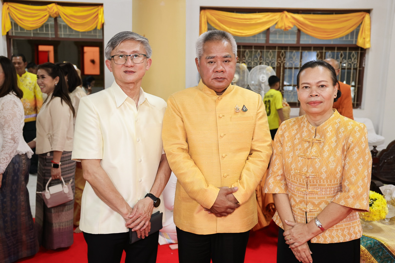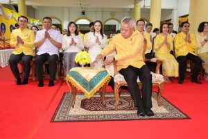นางสาวบุณยวีร์ ไขว้พันธุ์ ผู้ตรวจราชการกระทรวงแรงงาน นายสันติ นันตสุวรรณ ผู้ตรวจราชการกระทรวงแรงงาน นายพิเชษฐ์ ทองพันธ์ รองอธิบดีกรมพัฒนาฝีมือแรงงาน รักษาการในตำแหน่งผู้ตรวจราชการกระทรวงแรงงาน นางสาวกรจิรัฏฐ์ พงจันทร์ศธร ผู้ช่วยปลัดกระทรวงแรงงาน นายศักดินาถ สนธิศักดิ์โยธิน ผู้ช่วยปลัดกระทรวงแรงงานนายเกริกไกร นาสมยนต์ ผู้ตรวจราชการกรม กรมสวัสดิการและคุ้มครองแรงงาน รักษาการในตำแหน่งที่ปรึกษากฎหมาย นายณัฐวุฒิ ภัทรประยูร จัดหางานจังหวัดร้อยเอ็ด รักษาการในตำแหน่งที่ปรึกษาวิชาการแรงงาน พร้อมด้วย ผู้บริหารระดับสูงกระทรวงแรงงาน ข้าราชการ และเจ้าหน้าที่กระทรวงแรงงาน เข้าร่วมพิธี ณ ศาลาการเปรียญ วัดชัยมงคล พระอารามหลวง ตำบลบ่อยาง อำเภอเมืองสงขลา จังหวัดสงขลา