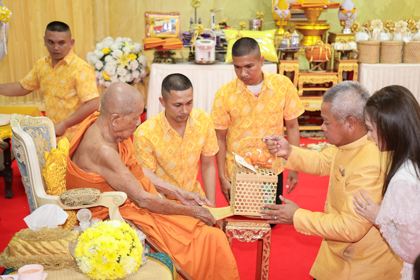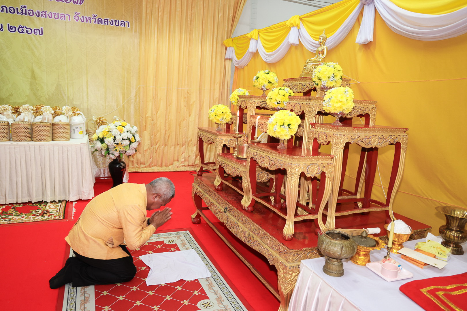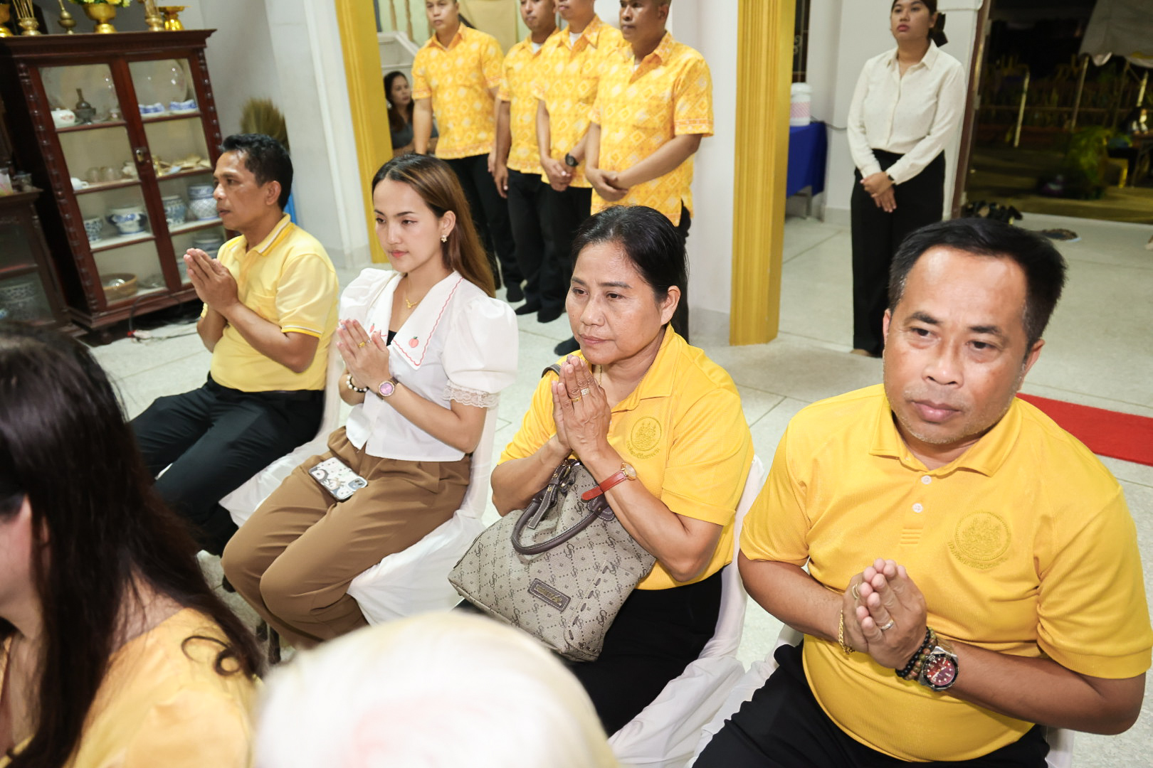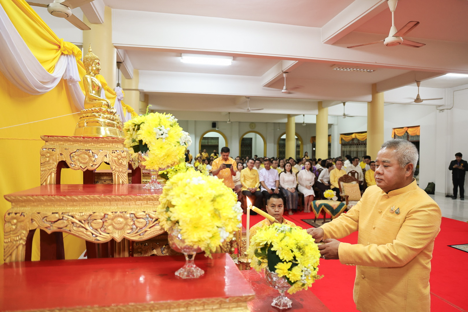 นางสาวบุณยวีร์ ไขว้พันธุ์ ผู้ตรวจราชการกระทรวงแรงงาน นายสันติ นันตสุวรรณ ผู้ตรวจราชการกระทรวงแรงงาน นายพิเชษฐ์ ทองพันธ์ รองอธิบดีกรมพัฒนาฝีมือแรงงาน รักษาการในตำแหน่งผู้ตรวจราชการกระทรวงแรงงาน นางสาวกรจิรัฏฐ์ พงจันทร์ศธร ผู้ช่วยปลัดกระทรวงแรงงาน นายศักดินาถ สนธิศักดิ์โยธิน ผู้ช่วยปลัดกระทรวงแรงงานนายเกริกไกร นาสมยนต์ ผู้ตรวจราชการกรม กรมสวัสดิการและคุ้มครองแรงงาน รักษาการในตำแหน่งที่ปรึกษากฎหมาย นายณัฐวุฒิ ภัทรประยูร จัดหางานจังหวัดร้อยเอ็ด รักษาการในตำแหน่งที่ปรึกษาวิชาการแรงงาน พร้อมด้วย ผู้บริหารระดับสูงกระทรวงแรงงาน ข้าราชการ และเจ้าหน้าที่กระทรวงแรงงาน เข้าร่วมพิธี ณ ศาลาการเปรียญ วัดชัยมงคล พระอารามหลวง ตำบลบ่อยาง อำเภอเมืองสงขลา จังหวัดสงขลา