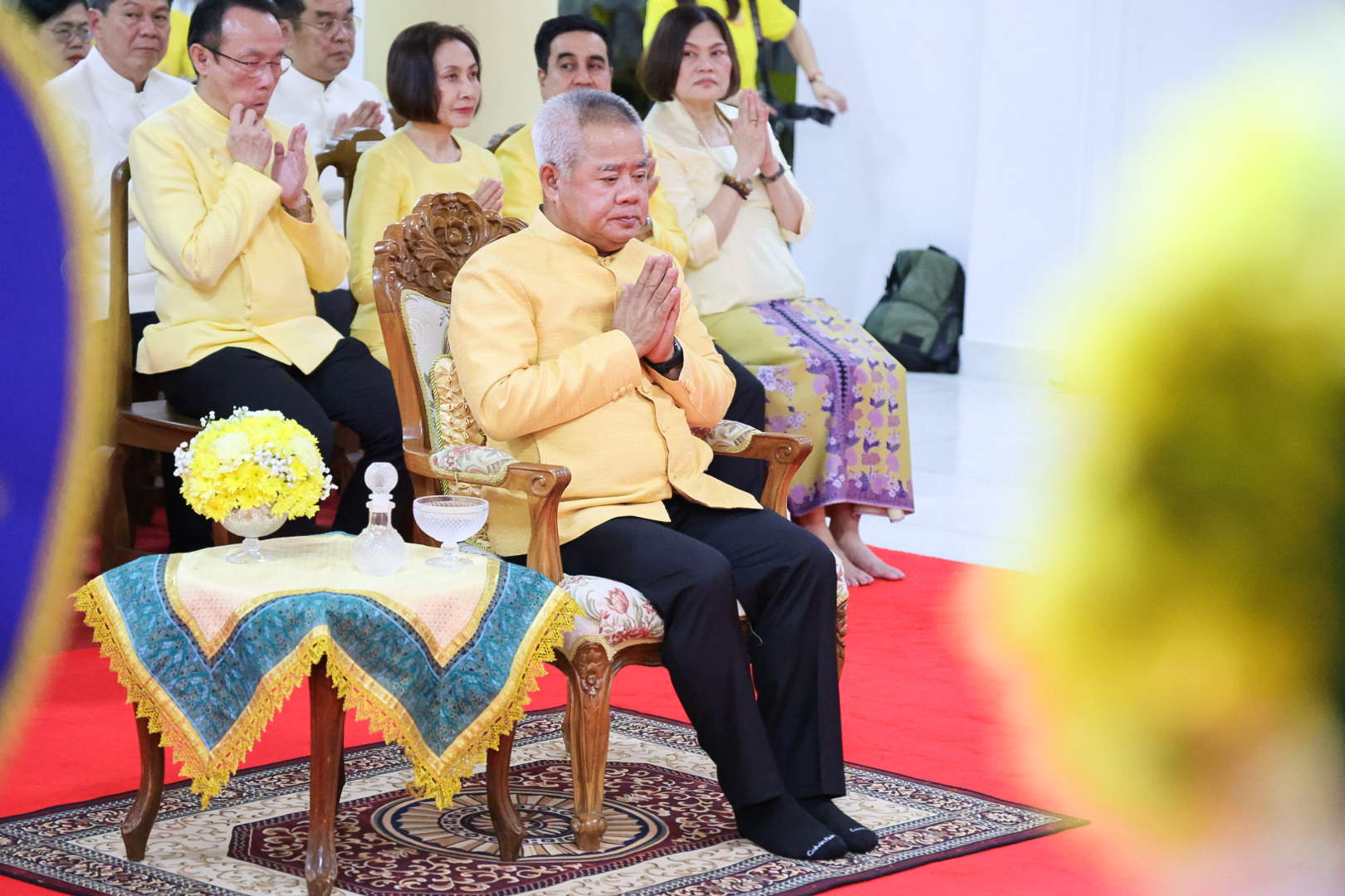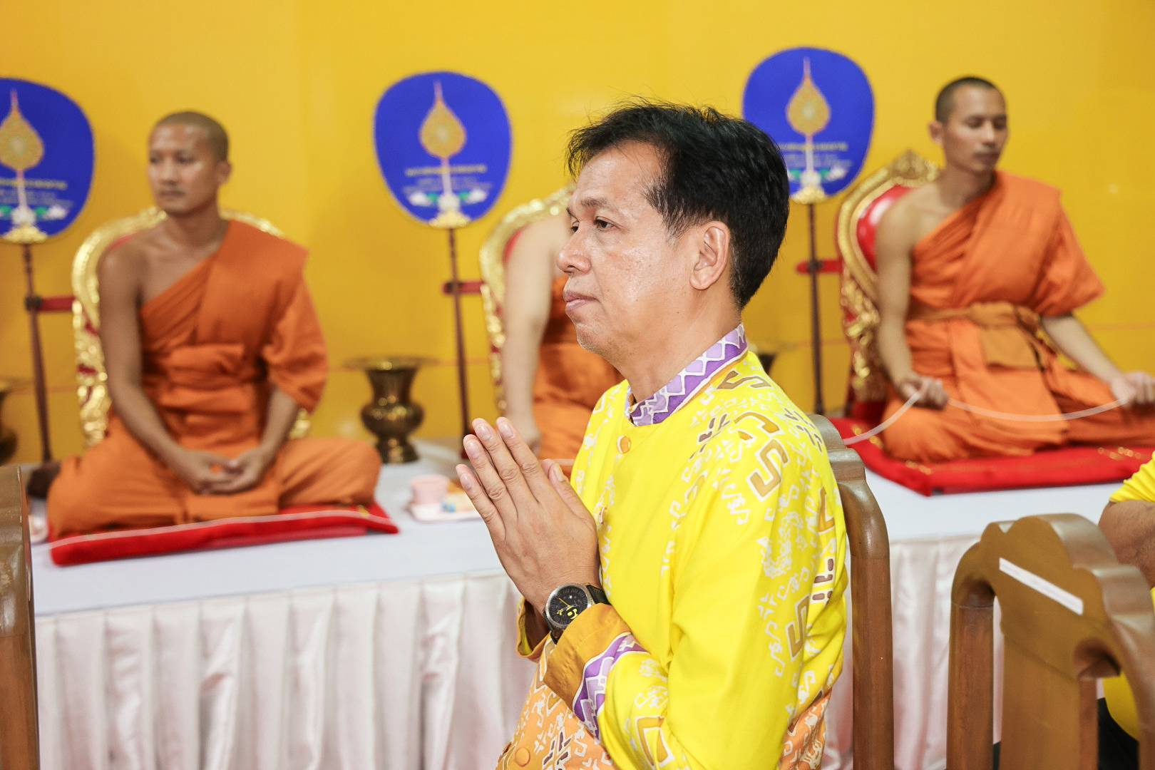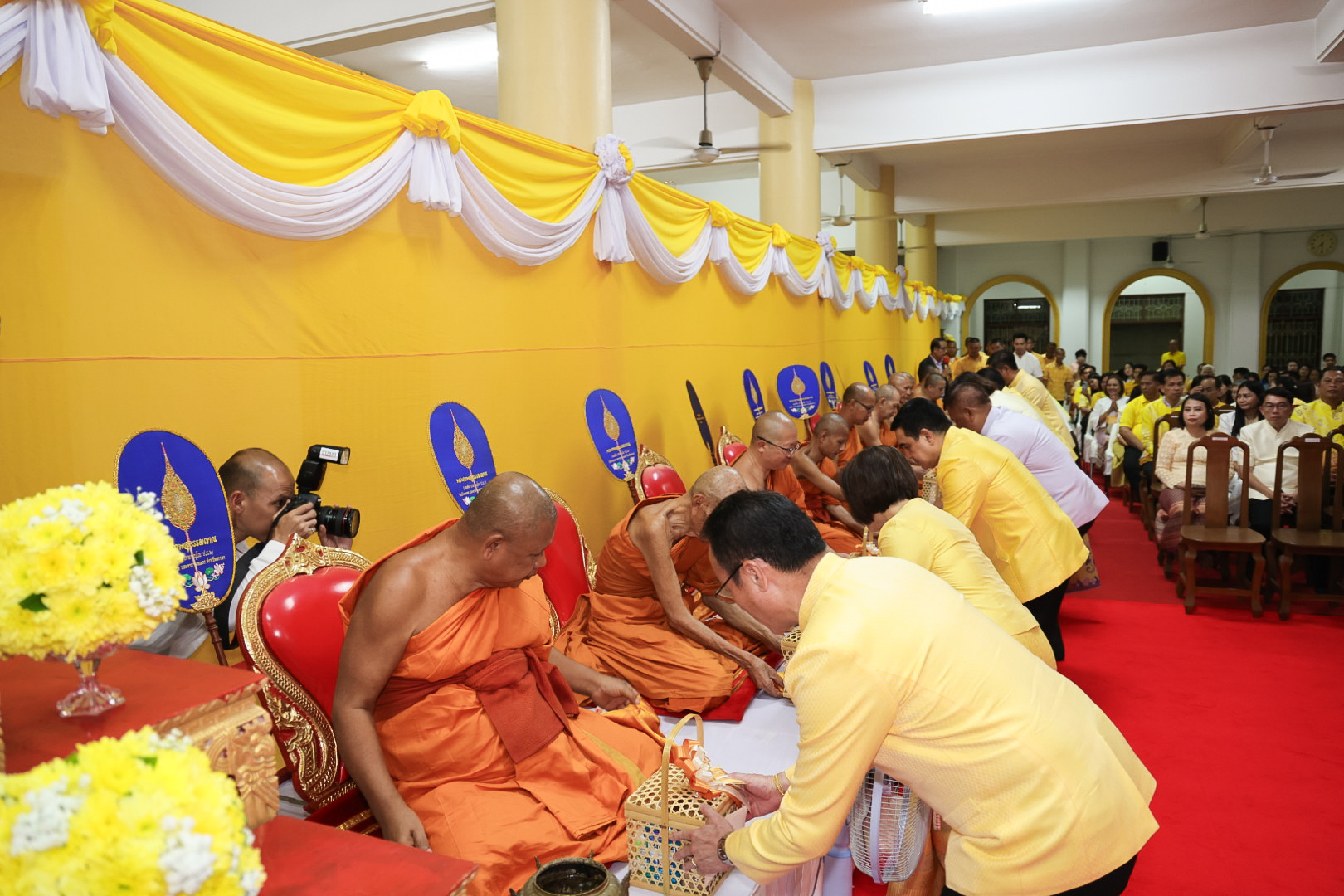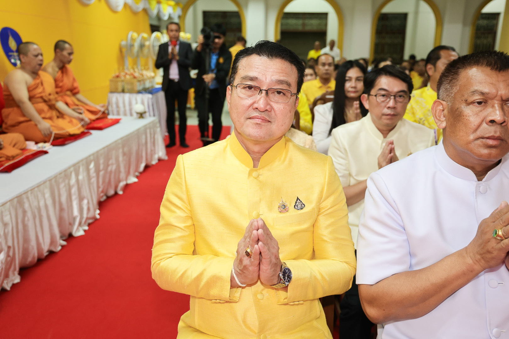 นางสาวบุณยวีร์ ไขว้พันธุ์ ผู้ตรวจราชการกระทรวงแรงงาน นายสันติ นันตสุวรรณ ผู้ตรวจราชการกระทรวงแรงงาน นายพิเชษฐ์ ทองพันธ์ รองอธิบดีกรมพัฒนาฝีมือแรงงาน รักษาการในตำแหน่งผู้ตรวจราชการกระทรวงแรงงาน นางสาวกรจิรัฏฐ์ พงจันทร์ศธร ผู้ช่วยปลัดกระทรวงแรงงาน นายศักดินาถ สนธิศักดิ์โยธิน ผู้ช่วยปลัดกระทรวงแรงงานนายเกริกไกร นาสมยนต์ ผู้ตรวจราชการกรม กรมสวัสดิการและคุ้มครองแรงงาน รักษาการในตำแหน่งที่ปรึกษากฎหมาย นายณัฐวุฒิ ภัทรประยูร จัดหางานจังหวัดร้อยเอ็ด รักษาการในตำแหน่งที่ปรึกษาวิชาการแรงงาน พร้อมด้วย ผู้บริหารระดับสูงกระทรวงแรงงาน ข้าราชการ และเจ้าหน้าที่กระทรวงแรงงาน เข้าร่วมพิธี ณ ศาลาการเปรียญ วัดชัยมงคล พระอารามหลวง ตำบลบ่อยาง อำเภอเมืองสงขลา จังหวัดสงขลา