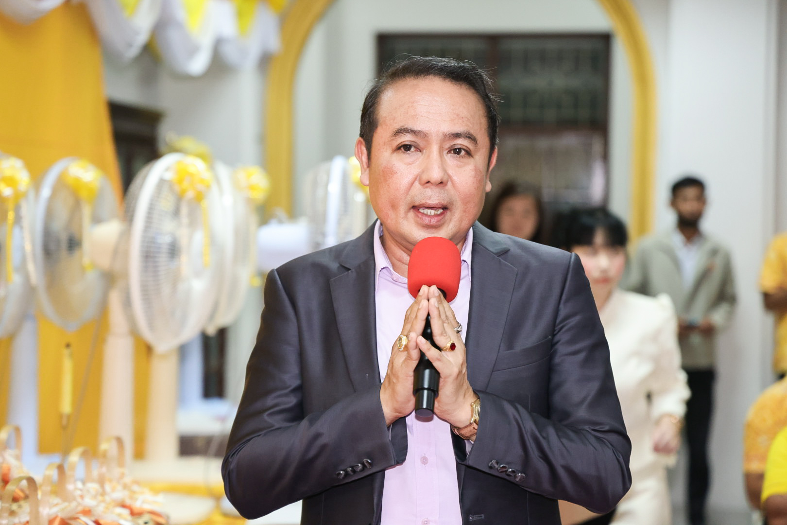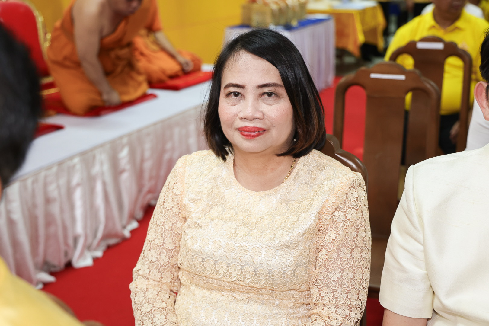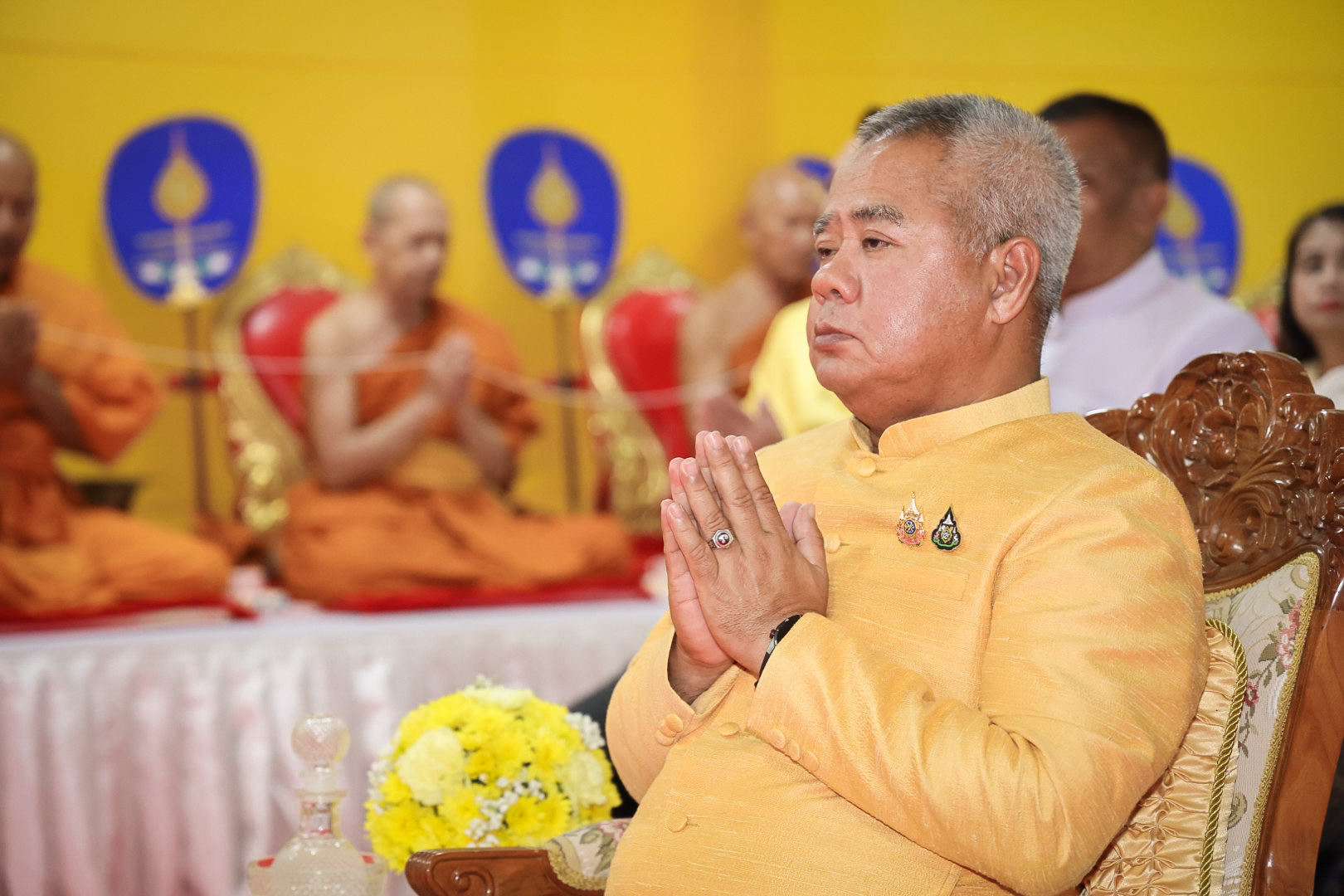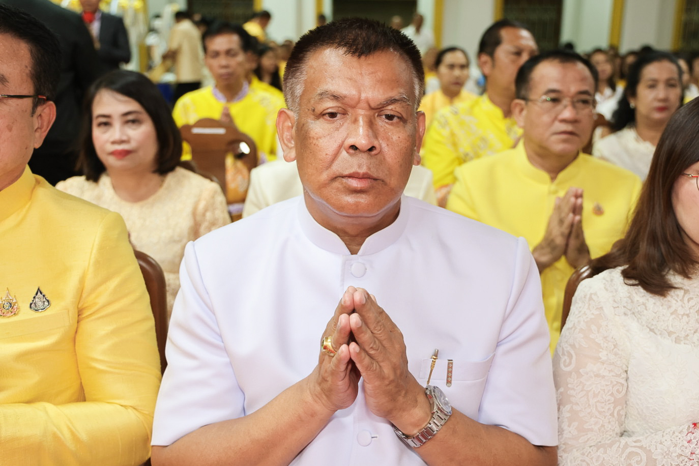 นางสาวบุณยวีร์ ไขว้พันธุ์ ผู้ตรวจราชการกระทรวงแรงงาน นายสันติ นันตสุวรรณ ผู้ตรวจราชการกระทรวงแรงงาน นายพิเชษฐ์ ทองพันธ์ รองอธิบดีกรมพัฒนาฝีมือแรงงาน รักษาการในตำแหน่งผู้ตรวจราชการกระทรวงแรงงาน นางสาวกรจิรัฏฐ์ พงจันทร์ศธร ผู้ช่วยปลัดกระทรวงแรงงาน นายศักดินาถ สนธิศักดิ์โยธิน ผู้ช่วยปลัดกระทรวงแรงงานนายเกริกไกร นาสมยนต์ ผู้ตรวจราชการกรม กรมสวัสดิการและคุ้มครองแรงงาน รักษาการในตำแหน่งที่ปรึกษากฎหมาย นายณัฐวุฒิ ภัทรประยูร จัดหางานจังหวัดร้อยเอ็ด รักษาการในตำแหน่งที่ปรึกษาวิชาการแรงงาน พร้อมด้วย ผู้บริหารระดับสูงกระทรวงแรงงาน ข้าราชการ และเจ้าหน้าที่กระทรวงแรงงาน เข้าร่วมพิธี ณ ศาลาการเปรียญ วัดชัยมงคล พระอารามหลวง ตำบลบ่อยาง อำเภอเมืองสงขลา จังหวัดสงขลา