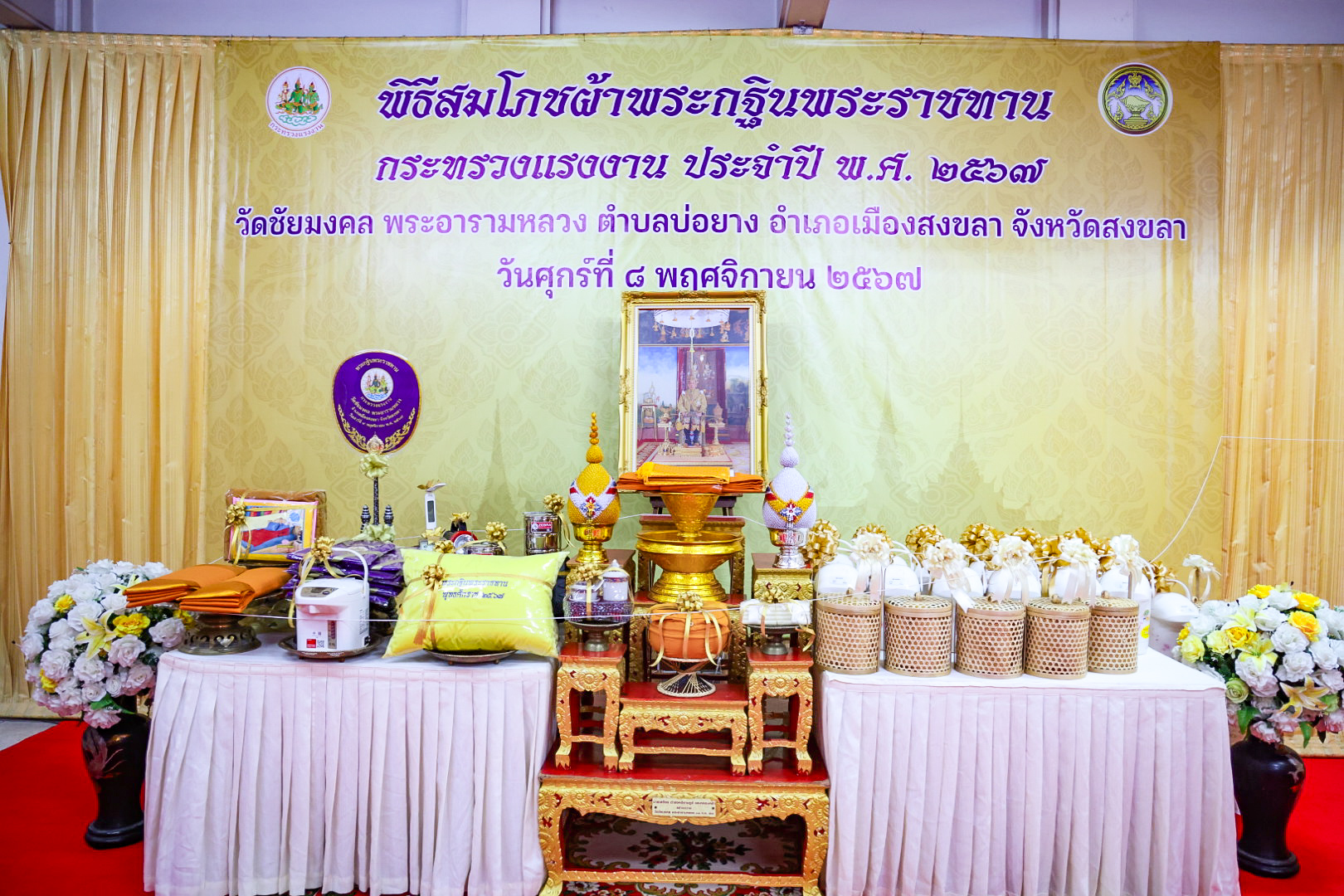 ทั้งนี้ นายพิพัฒน์ รัชกิจประการ รัฐมนตรีว่าการกระทรวงแรงงาน จะเป็นประธานในพิธีถวายผ้าพระกฐินพระราชทานกระทรวงแรงงาน ประจำปี 2567 ในวันเสาร์ที่ 9 พฤศจิกายน 2567 เวลา 10.00 น. ณ พระอุโบสถ วัดชัยมงคล พระอารามหลวง ตำบลบ่อยาง อำเภอเมืองสงขลา จังหวัดสงขลา