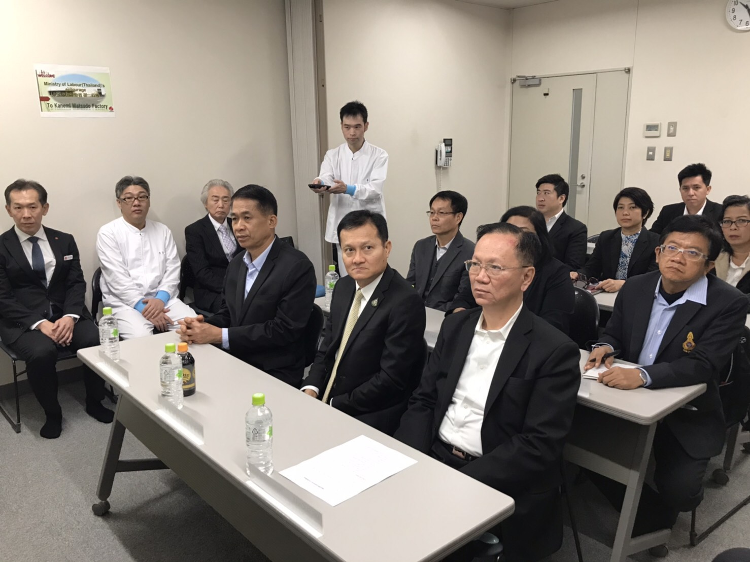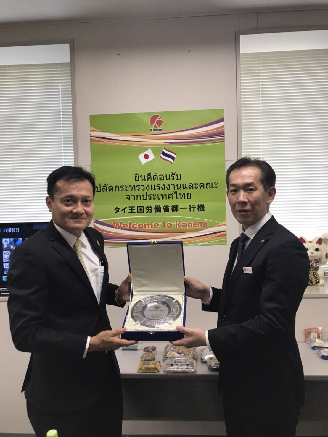 วันที่ 5 กุมภาพันธ์ 2563 นายสุทธิ สุโกศล ปลัดกระทรวงแรงงาน พร้อมคณะผู้บริหารกระทรวงแรงงาน เข้าเยี่ยมผู้ฝึกงานด้านเทคนิคไทย จำนวน 25 คน ณ บริษัท Kanemi จ.ชิบะ โดยมีนายคิวามุ นาคาตะ ผู้จัดการแผนกส่งออก บริษัท Kanemi ให้การต้อนรับ