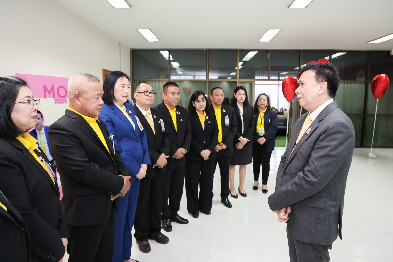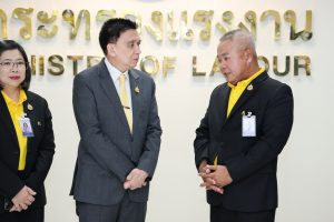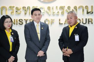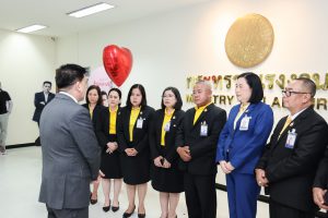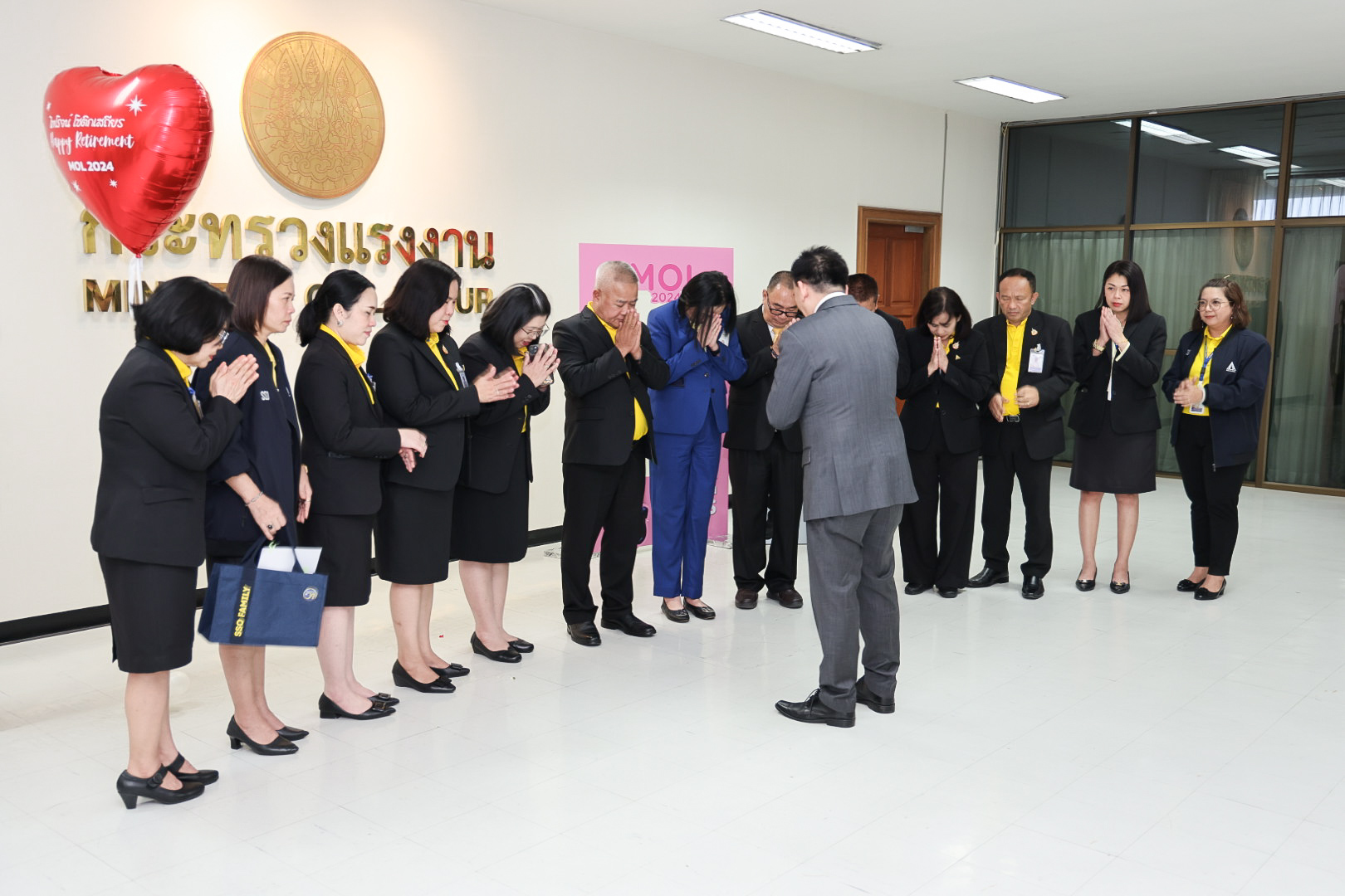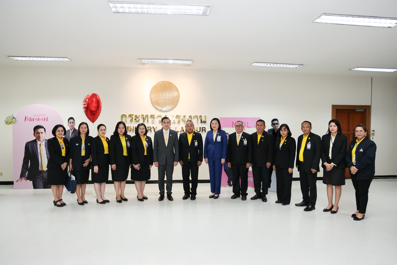 วันที่ 30 กันยายน 2567 นายไพโรจน์ โชติกเสถียร ปลัดกระทรวงแรงงาน ให้การต้อนรับ นายบุญสงค์ ทัพชัยยุทธ์ เลขาธิการสำนักงานประกันสังคม พร้อมด้วยคณะผู้บริหารและข้าราชการในสังกัดสำนักงานประกันสังคม ที่แสดงมุทิตาจิต ในวาระเกษียณอายุราชการในปี 2567 ณ บริเวณโถงหน้าห้องปลัดกระทรวงแรงงาน ชั้น 7 อาคารกระทรวงแรงงาน
