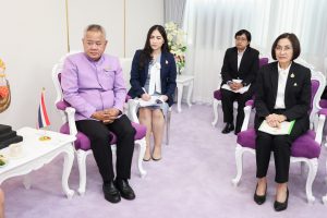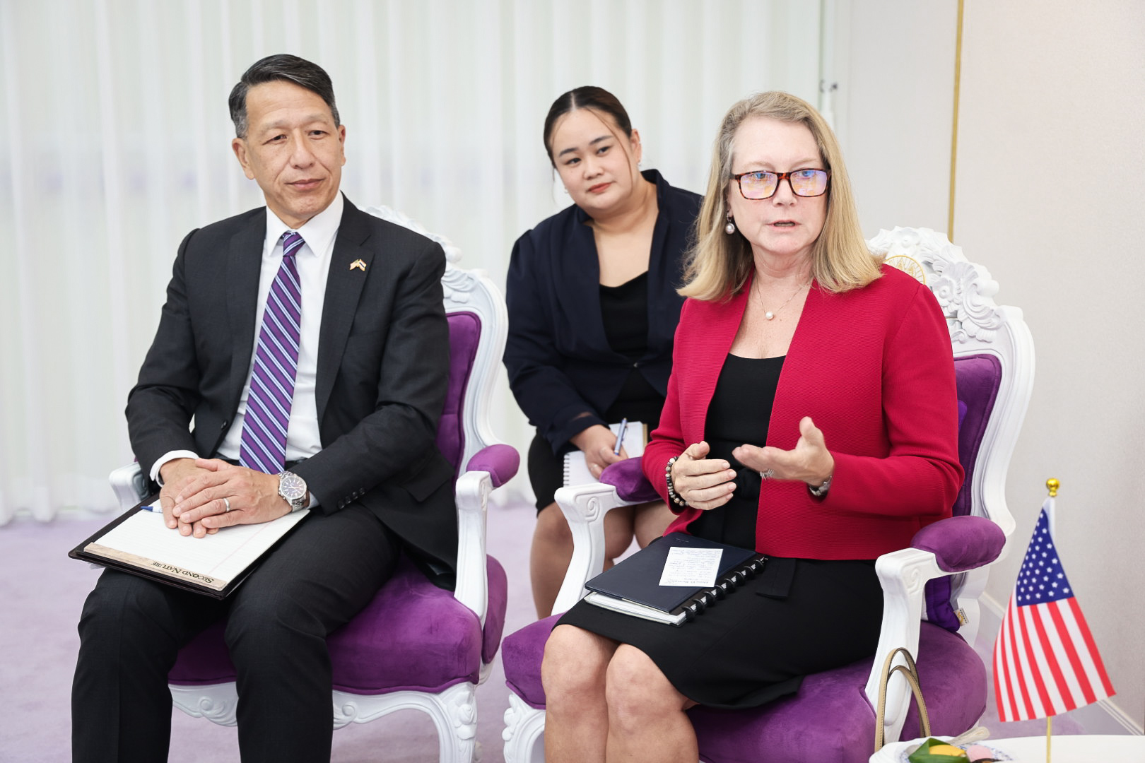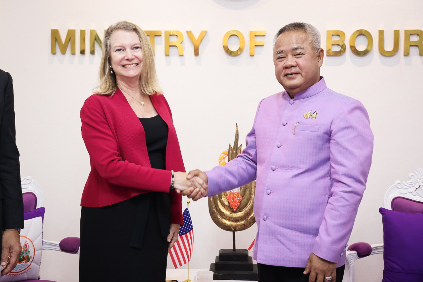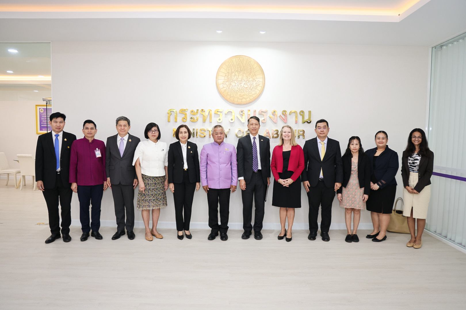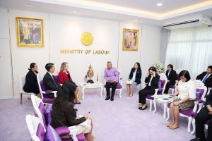 ให้การต้อนรับ คุณดิน่า บราวน์โลว์ (Ms. Dena Brownlow) ที่ปรึกษาฝ่ายการเมือง สถานเอกอัครราชทูตสหรัฐอเมริกาประจำประเทศไทย (Political Counselor) และ คุณแอนดรูว์ ชอว์ (Mr. Andrew Shaw)ที่ปรึกษาฝ่ายเศรษฐกิจ (Economic Counselor) ในโอกาสเข้าเยี่ยมคารวะและหารือข้อราชการเกี่ยวกับสถานการณ์แรงงานในประเทศไทย ณ ห้องรับรองปลัดกระทรวงแรงงาน ชั้น 7 อาคารกระทรวงแรงงาน