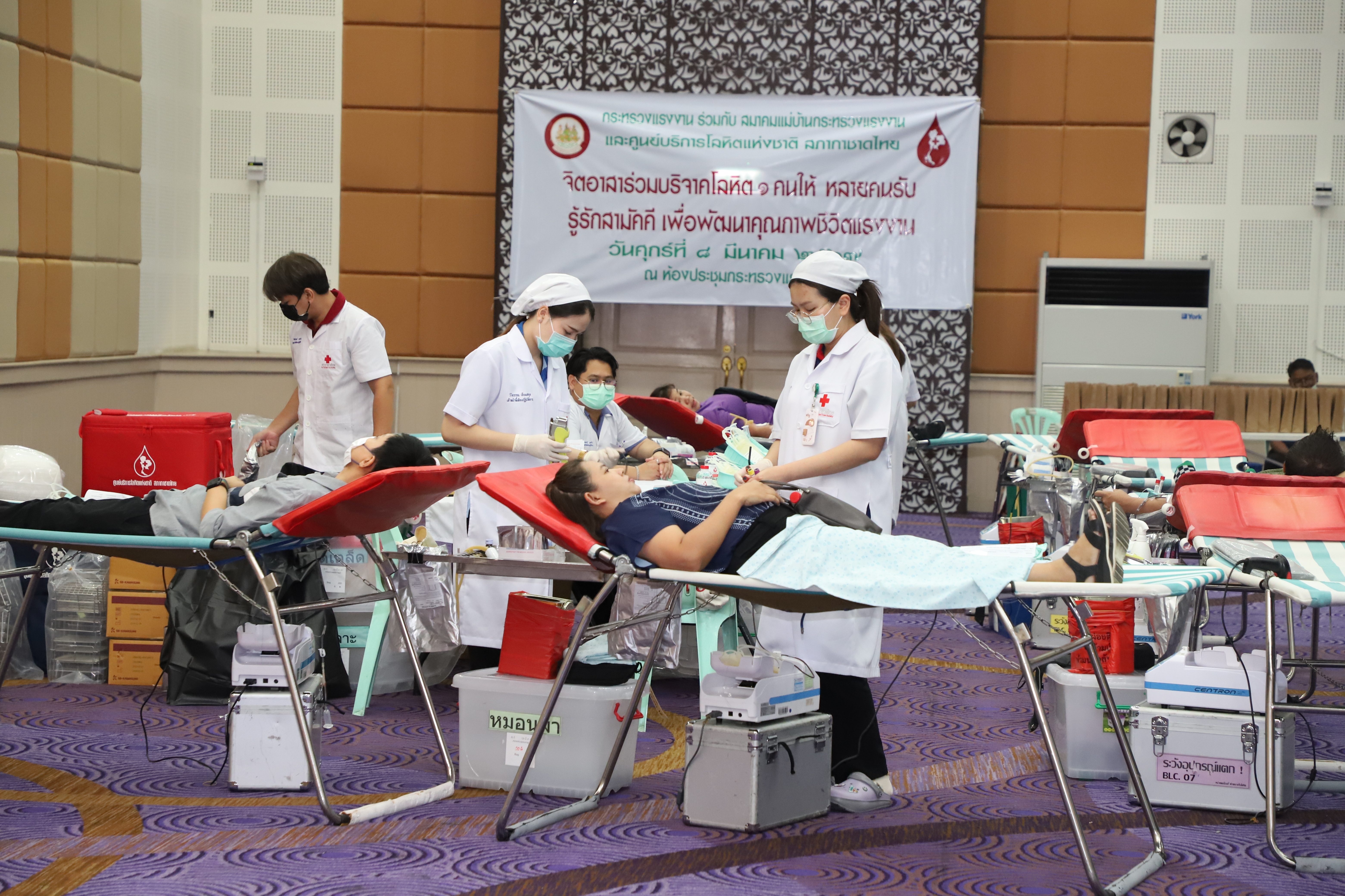 วันที่ 8 มีนาคม 2567 เวลา 09.15 น. นายไพโรจน์ โชติกเสถียร ปลัดกระทรวงแรงงาน เยี่ยมให้กำลังใจผู้บริจาคโลหิต โดยกระทรวงแรงงานร่วมกับสมาคมแม่บ้านกระทรวงแรงงาน และศูนย์บริการโลหิตแห่งชาติ สภากาชาดไทย ร่วมจัดกิจกรรมบริจาคโลหิต ภายใต้ชื่อกิจกรรม “จิตอาสาร่วมบริจาคโลหิต 1 คนให้ หลายคนรับ รู้รักสามัคคี พัฒนาคุณภาพชีวิตแรงงาน” ครั้งที่ 1/2567 ณ ห้องประชุมกระทรวงแรงงาน ชั้น 5 อาคารกระทรวงแรงงาน