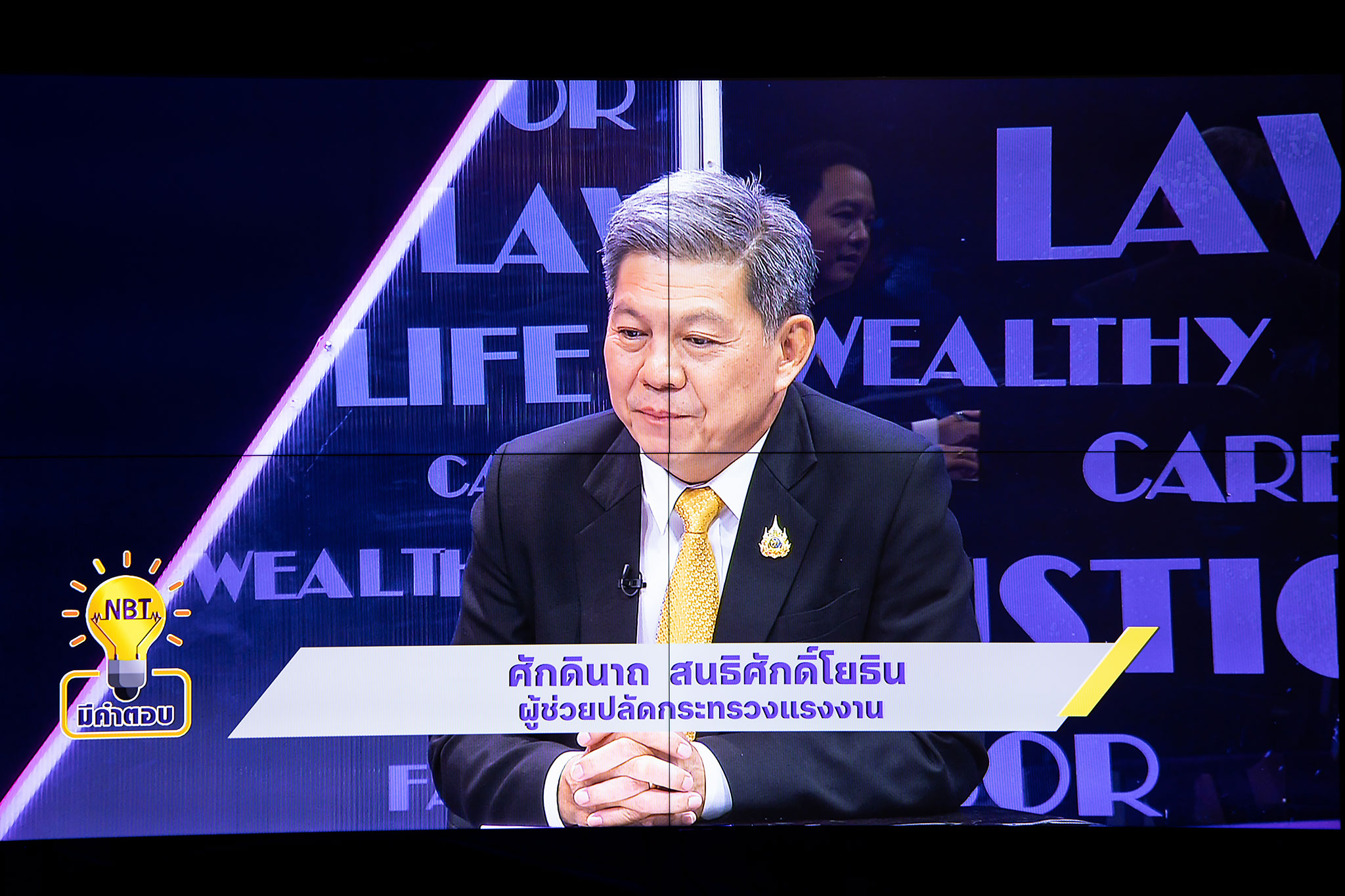 วันที่ 16 กรกฎาคม 2568 เวลา 15.30 น. นายบุญสงค์ ทัพชัยยุทธ์ ปลัดกระทรวงแรงงาน มอบหมายให้ นายศักดินาถ สนธิศักดิ์โยธิน ผู้ช่วยปลัดกระทรวงแรงงาน ให้สัมภาษณ์สดในรายการ NBT มีคำตอบ ประเด็น “ขยายตลาดต่างประเทศ เพื่อโอกาสแรงงานไทย” ณ สถานีโทรทัศน์แห่งประเทศไทย (NBT) ถนนวิภาวดีรังสิต กรุงเทพฯ