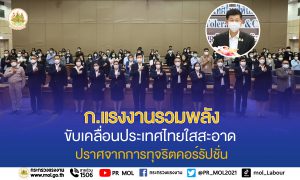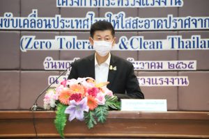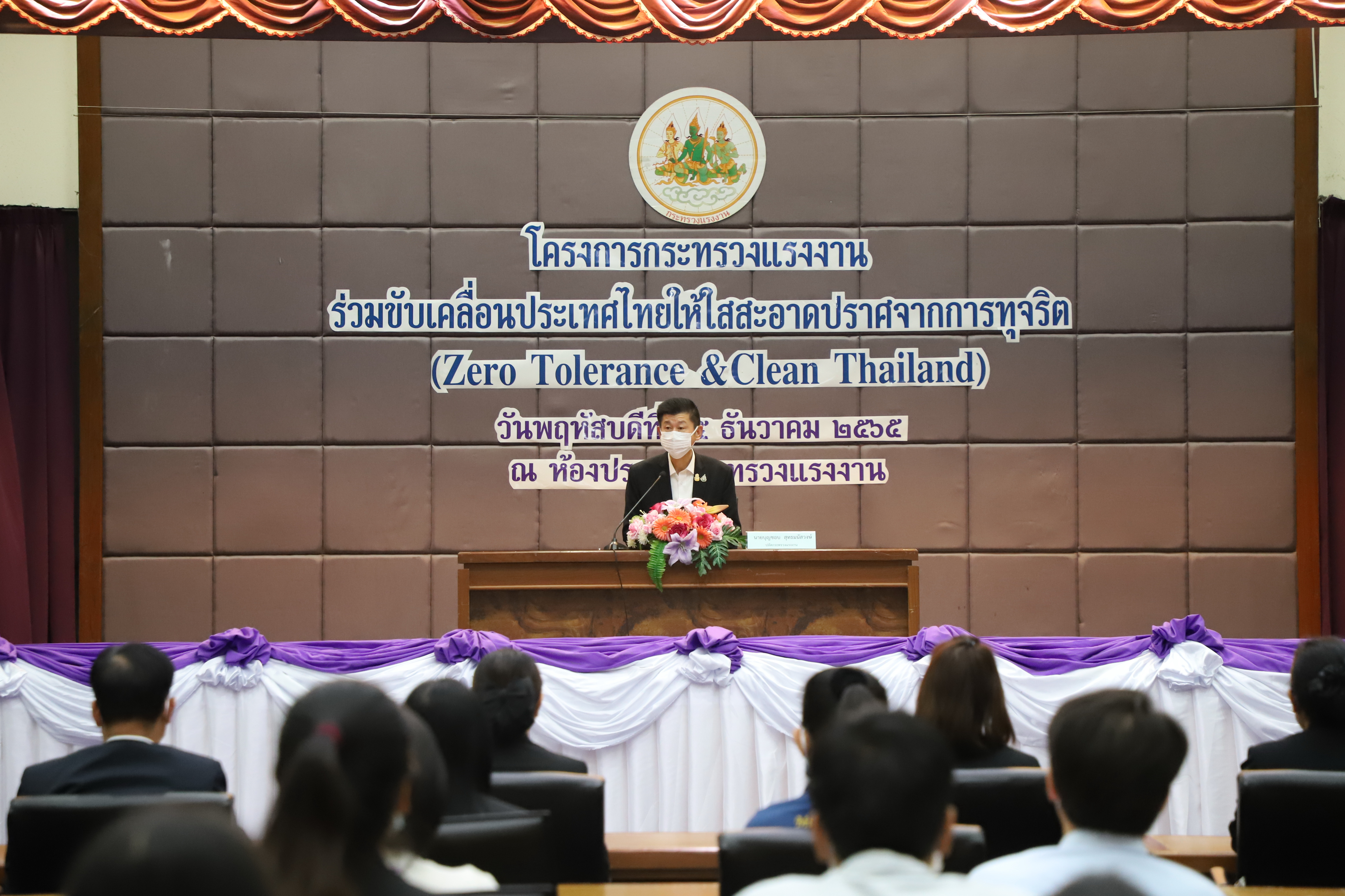 วันที่ 15 ธันวาคม 2565 นายบุญชอบ สุทธมนัสวงษ์ ปลัดกระทรวงแรงงาน เป็นประธานในพิธีเปิดโครงการกระทรวงแรงงานร่วมขับเคลื่อนประเทศไทยให้ใสสะอาดปราศจากการทุจริต (Zero Tolerance & Clean Thailand) ประจำปีงบประมาณ พ.ศ. 2566 โดยมี ผู้บริหารระดับสูง ข้าราชการ และเจ้าหน้าที่หน่วยงานในสังกัดกระทรวงแรงงานเข้าร่วมในครั้งนี้ด้วย ณ ห้องประชุมกระทรวงแรงงาน ชั้น 5 อาคารกระทรวงแรงงาน
