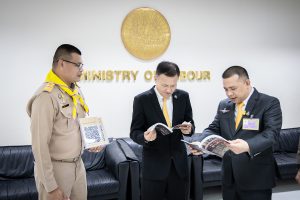 ปลัดกระทรวงแรงงาน ให้การต้อนรับ นายประสิทธิ์ เจียวก๊ก อาจารย์พิเศษโรงเรียนจิตอาสา 904 หารือแนวทางการประชาสัมพันธ์พระราชกรณียกิจของพระบาทสมเด็จพระเจ้าอยู่หัวและการดำเนินงานของโรงเรียนจิตอาสาพระราชทาน เพื่อเผยแพร่ประชาสัมพันธ์ให้ผู้บริหาร ข้าราชการ และเจ้าหน้าที่ในสังกัดกระทรวงแรงงาน มีอุดมการณ์รักชาติ ศาสนา และเทิดทูนไว้ซึ่งสถาบันพระมหากษัตริย์