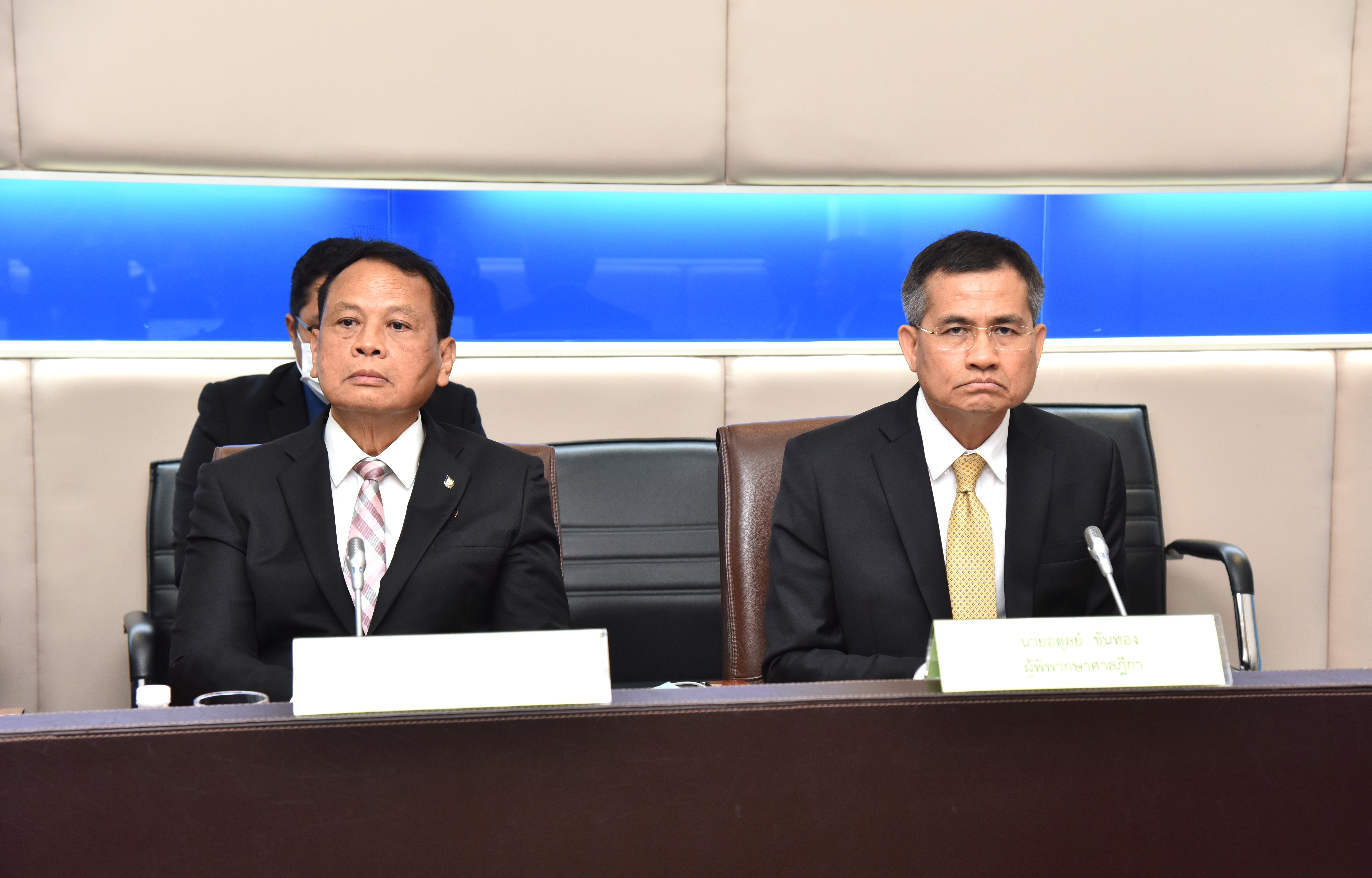 On February 6, 2024, at 13.00 hours, the Permanent Secretary of Labour, Mr. Pairoj Chotiksetian, welcomed the Chief of Justice of the Central Labour Court, Mr. Wirot Tulaphan, Judge of the Supreme Court, Mr. Adul Khanthong, Senior Judge of the Civil Court, Mr. Pratchaya Yooprasert, Deputy Chief of Justice of the Central Labour Court, Mrs. Piamprom Sukphimontri, and delegation, on the occasion of a meeting to discuss guidelines for the mediation process before filing a lawsuit in the Labour Court, to inform the Ministry of Labour and publicize the court’s labour dispute mediation process between employers and employees. The Department of Labour Protection and Welfare’s Deputy Director-General, Ms. Kanchana Poonkaew, and legal agencies under the Ministry of Labour attended the meeting at the Permanent Secretary of Labour’s meeting room, 7th floor, Ministry of Labour.