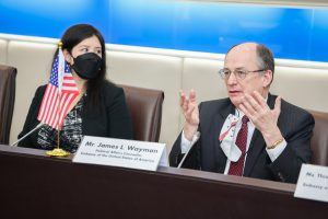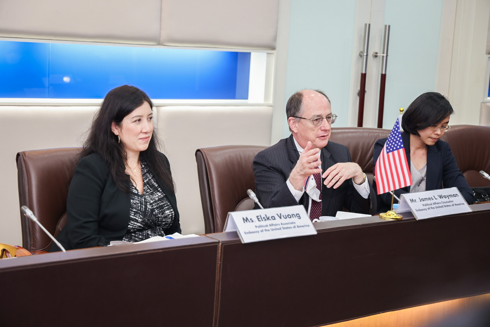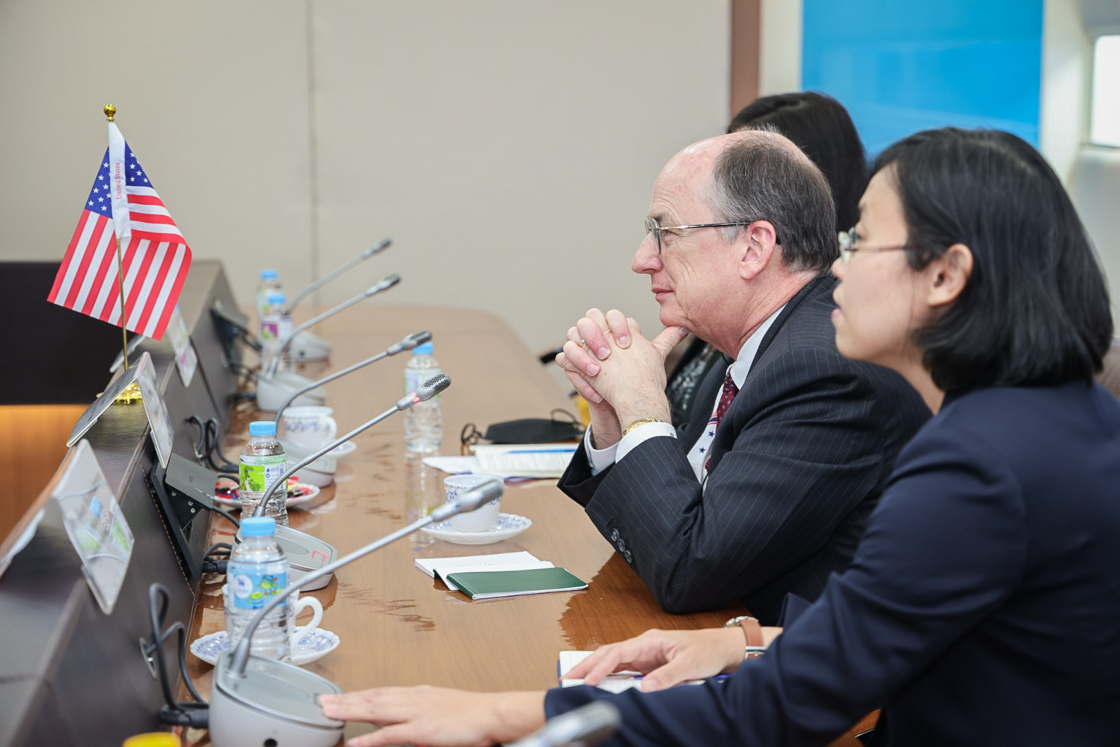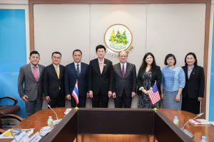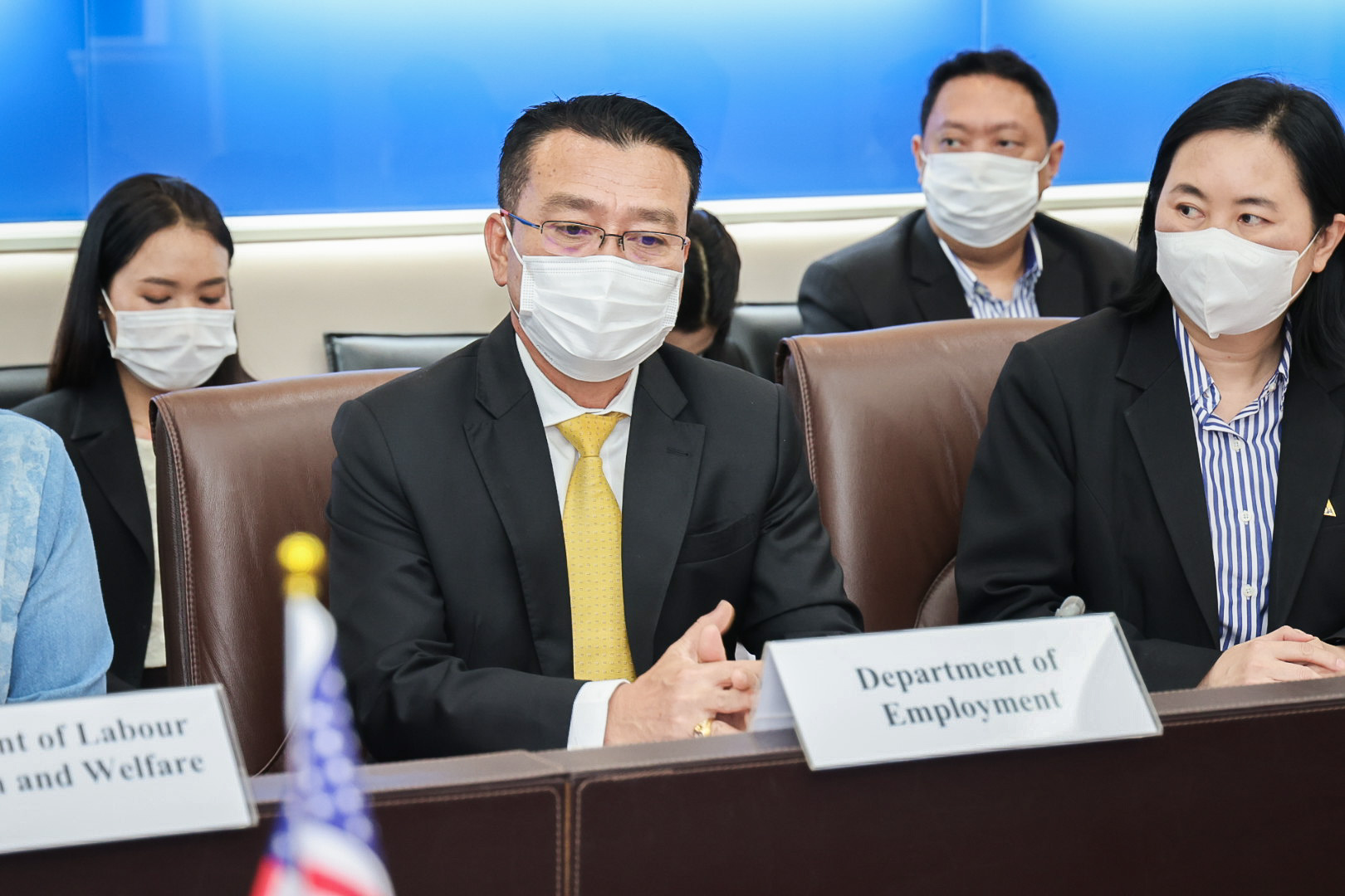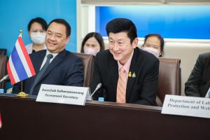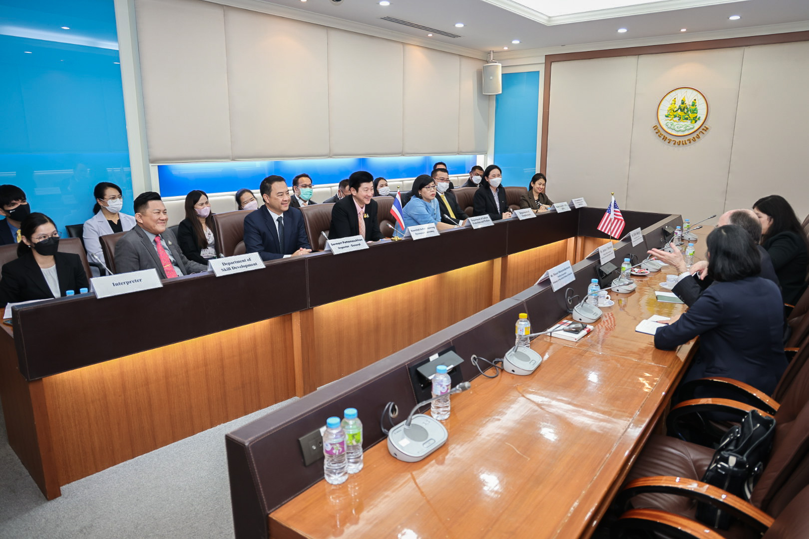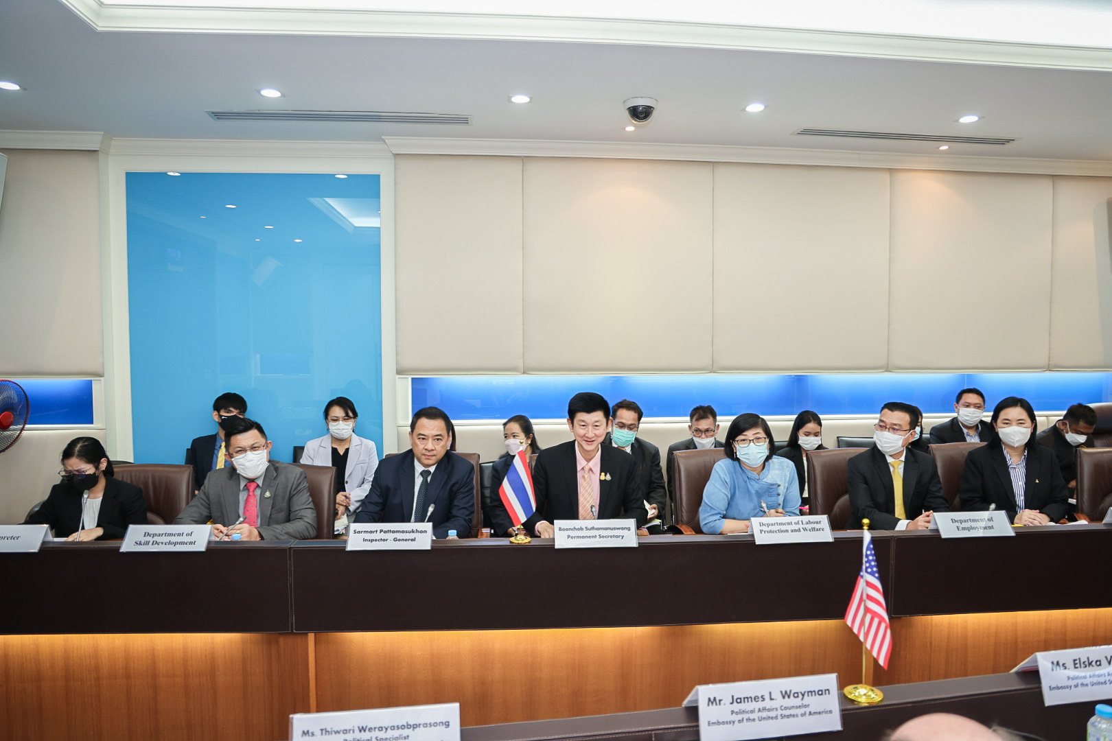 On March 9, 2023, the Permanent Secretary of Labour, Mr. Boonchob Suttamanaswong, welcomed Political Counselor to the Embassy of the United States of America in Thailand, Mr. James L. Wayman, and a delegation on a courtesy visit to discuss cooperation between Thailand and the United States on eliminating human trafficking in labour, forced labour and child labour. The Ministry of Labour’s executives joined the meeting at the Ministry of Labour’s meeting room, 7th floor, Ministry of Labour.