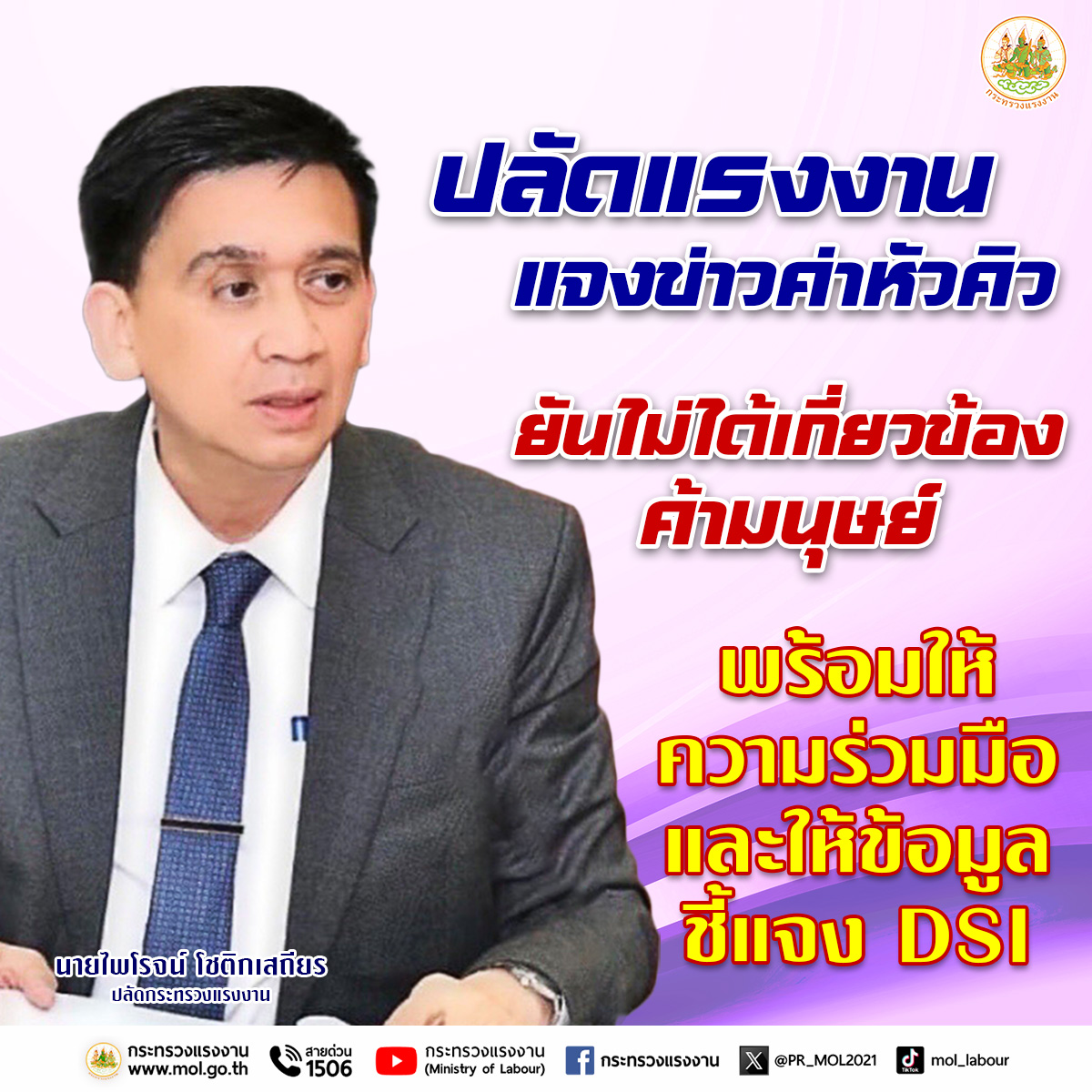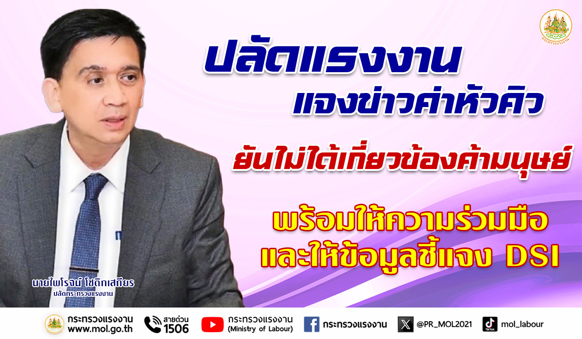 On January 11, 2024, the Permanent Secretary of Labour, Mr. Phairoj Chotikasatian, spoke about the case of the media reporting that DSI accused former ministers and high-ranking civil servants under the Ministry of Labour of reaping benefits and charging Thai workers a fee for traveling to work in Finland. The Labour Minister confirmed no involvement in any human trafficking activity and affirmed that they work with integrity. He said that every worker’s travel to work abroad is legal, and they are unaware of any payment to the Ministry of Labour, as claimed. On this issue, he assigned the Department of Employment to gather details to clarify and provide accurate information to the DSI and NACC. This will include travel information from 2020 – 2023, on the number of workers traveling to Finland, the cost, the name of the employer, and who they paid 3,000 Baht to, in order to make the alleged information clearer, based on facts.