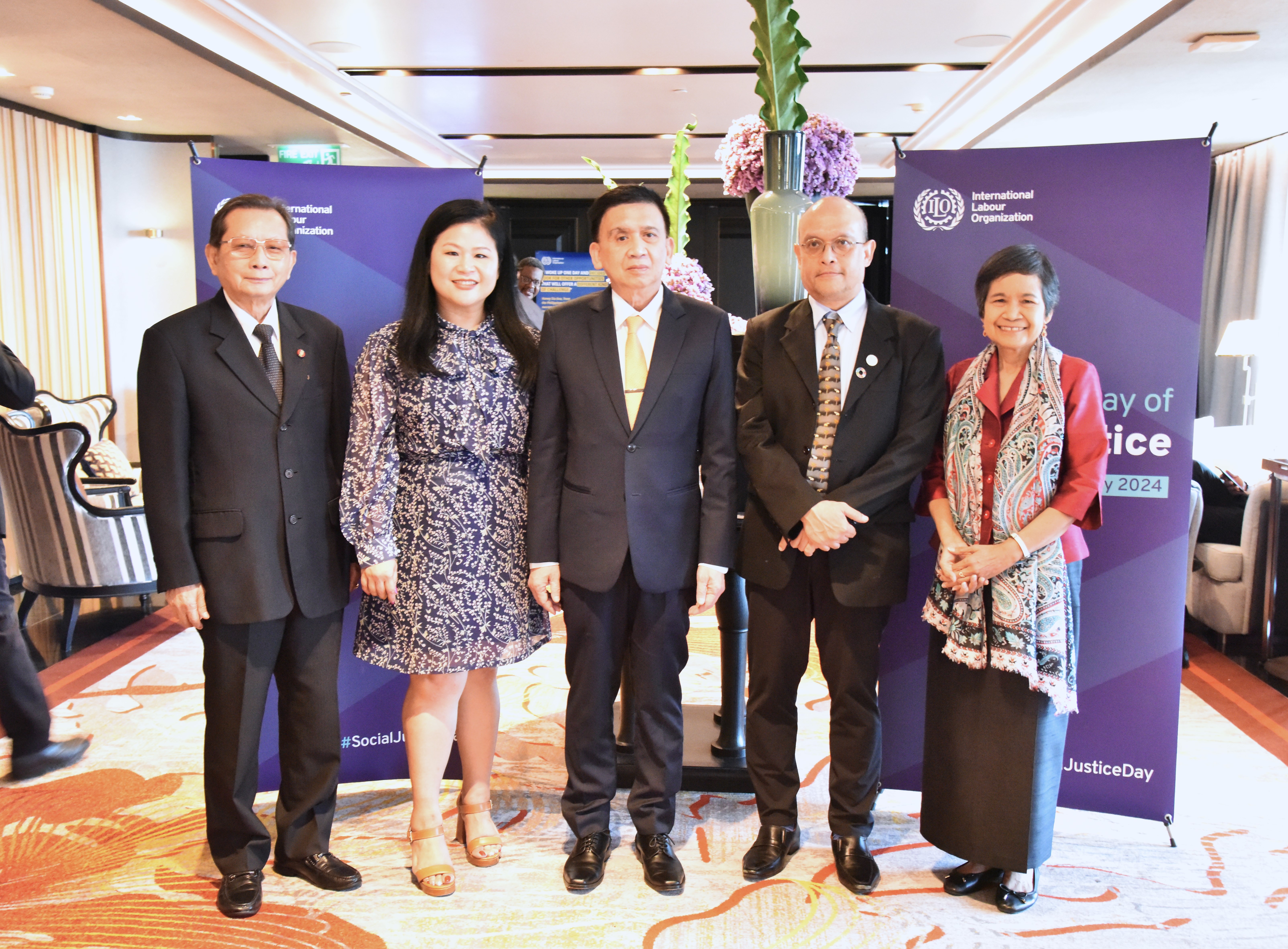 วันที่ 8 กุมภาพันธ์ 2567 เวลา 14.00 น. นายไพโรจน์ โชติกเสถียร ปลัดกระทรวงแรงงาน ได้รับมอบหมายจากนายพิพัฒน์ รัชกิจประการ รัฐมนตรีว่าการกระทรวงแรงงาน เป็นประธานเปิดการเสวนาระดับสูง เนื่องในโอกาสวันแห่งความยุติธรรมทางสังคมสากล ประจำปี 2567 ในหัวข้อ “มุ่งสู่ความยุติธรรมทางสังคมสำหรับทุกคนในโลกแห่งการทำงาน”ณ ห้อง Ballroom ชั้น 12 โรงแรมวี กรุงเทพฯ โดยมีคุณกิลเบิร์ท เอฟ โฮงโบ ผู้อำนวยการใหญ่องค์การแรงงานระหว่างประเทศ คุณชิโฮโกะ อาซาดะ มิยากาวะ ผู้ช่วยผู้อำนวยการใหญ่และผู้อำนวยการ สำนักงานแรงงานระหว่างประเทศประจำภูมิภาคเอเชียและแปซิฟิก ผู้แทนรัฐบาล องค์กรนายจ้าง และองค์กรลูกจ้างในภูมิภาคเอเชียและแปซิฟิก เอกอัครราชทูต ผู้แทนจากองค์กรระหว่างประเทศ ภาคประชาสังคม ร่วมงาน