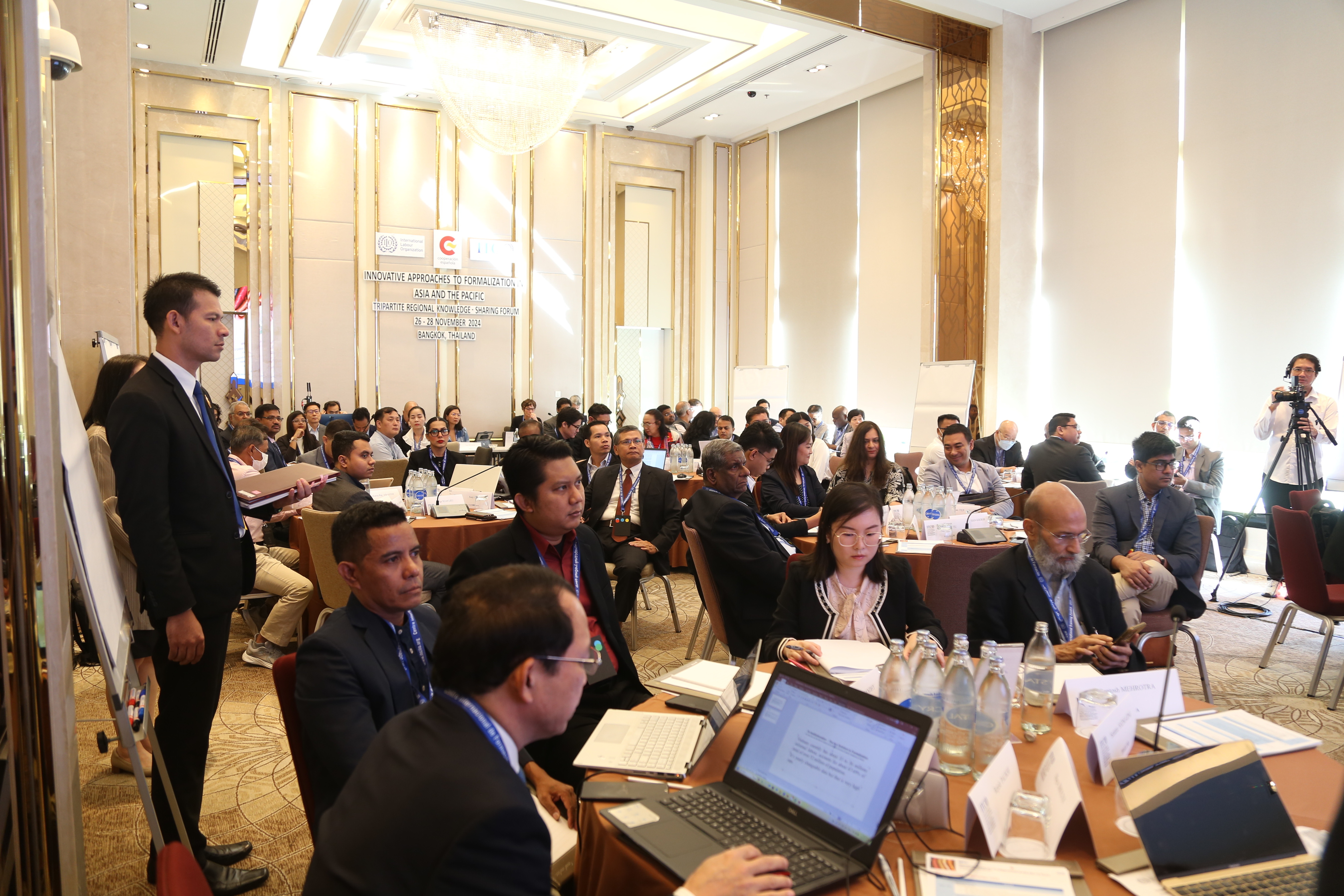 นายศักดินาถ กล่าวต่อว่า ในปี 2567 ประเทศไทยได้มีความพยายามในการส่งเสริมและขยายความคุ้มครองทางสังคมให้มีความครอบคลุมแรงงานกลุ่มเปราะบาง รวมถึงแรงงานทำงานบ้าน โดยประเทศไทยได้มีความก้าวหน้าที่สำคัญคือ การออกกฎกระทรวงแรงงานฉบับที่ 15 ว่าด้วยแรงงานทำงานบ้าน ซึ่งได้มีการกำหนดและเพิ่มข้อตกลงขั้นพื้นฐานในการจ้างงาน เช่น ค่าจ้างขั้นต่ำ ชั่วโมงการทำงาน วันหยุด และสิทธิในการลาคลอด โดยกฎกระทรวงฉบับนี้ถือเป็นตัวอย่างที่ชัดเจนของความมุ่งมันของประเทศไทยในการปรับปรุงการคุ้มครองแรงงานและบูรณาการการบริหารจัดการการจ้างงานนอกระบบให้เปลี่ยนผ่านไปสู่ระบบการจ้างงานที่เป็นทางการ แม้ว่ามาตรการเหล่านี้จะถือเป็นก้าวที่สำคัญในการเปลี่ยนผ่านไปสู่ระบบการจ้างงานที่เป็นทางการ แต่ก็เป็นเพียงจุดเริ่มต้น เนื่องจากความท้าทายของการจ้างงานนอกระบยังคงเป็นเรื่องที่หยั่งรากลึก และมีความเกี่ยวเนื่องกับปัญหาความไม่เท่าเทียม การศึกษา และการเข้าถึงทรัพยากร ดังนั้น จึงเป็นเหตุผลว่าทำไมเวทีในวันนี้จึงมีความสำคัญอย่างยิ่ง โดยเวทีนี้จะเปิดโอกาสให้ทุกท่านได้แลกเปลี่ยนแนวคิด แบ่งปันแนวทางเชิงนวัตกรรมที่สร้างสรรค์ และสร้างแรงบันดาลใจจากความสำเร็จและบทเรียนของกันและกัน