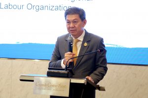 วันที่ 26 พฤศจิกายน เวลา 09.00 น. นายบุญสงค์ ทัพชัยยุทธ์ ปลัดกระทรวงแรงงาน มอบหมายให้ นายศักดินาถ สนธิศักดิ์โยธิน ผู้ช่วยปลัดกระทรวงแรงงาน กล่าวเปิดเวทีแลกเปลี่ยนเรียนรู้ไตรภาคีในระดับภูมิภาคเกี่ยวกับแนวทางเชิงนวัตกรรมในการส่งเสริมการเปลี่ยนผ่านไปสู่ระบบการจ้างงานที่เป็นทางการ ณ ห้องเพลินจิต ชั้น F โรงแรมแกรนด์ เซนเตอร์พอยต์ เพลินจิต กรุงเทพฯ