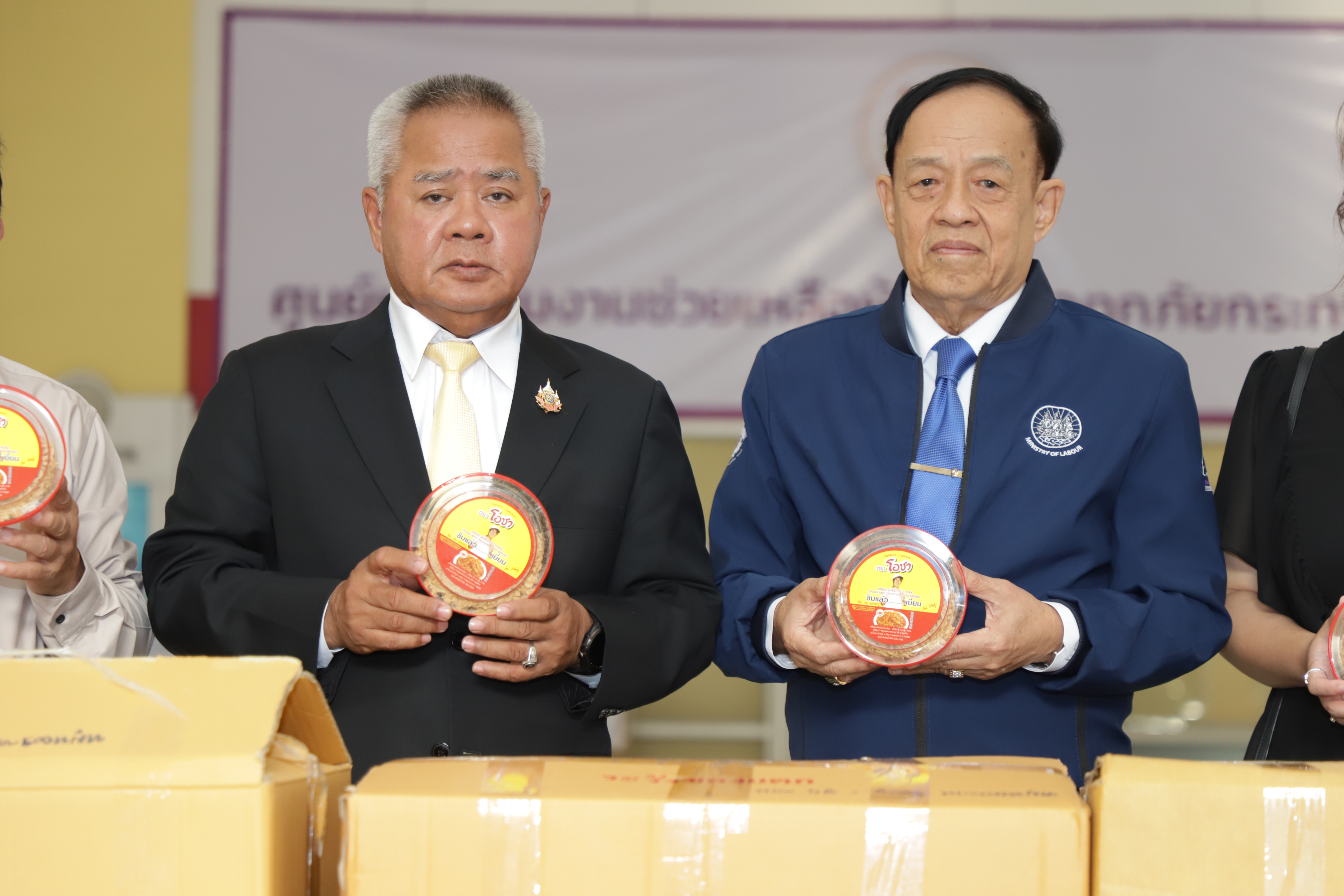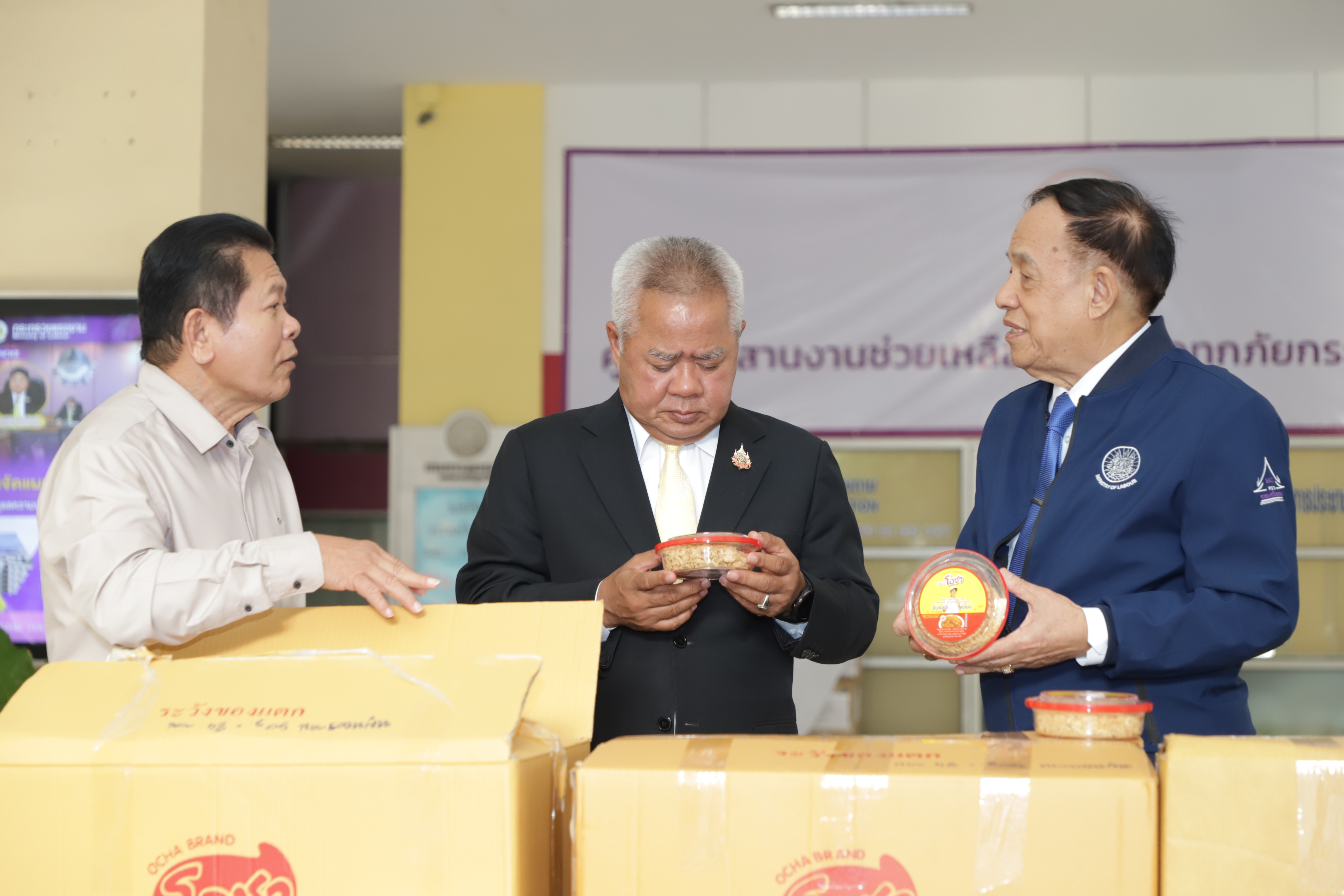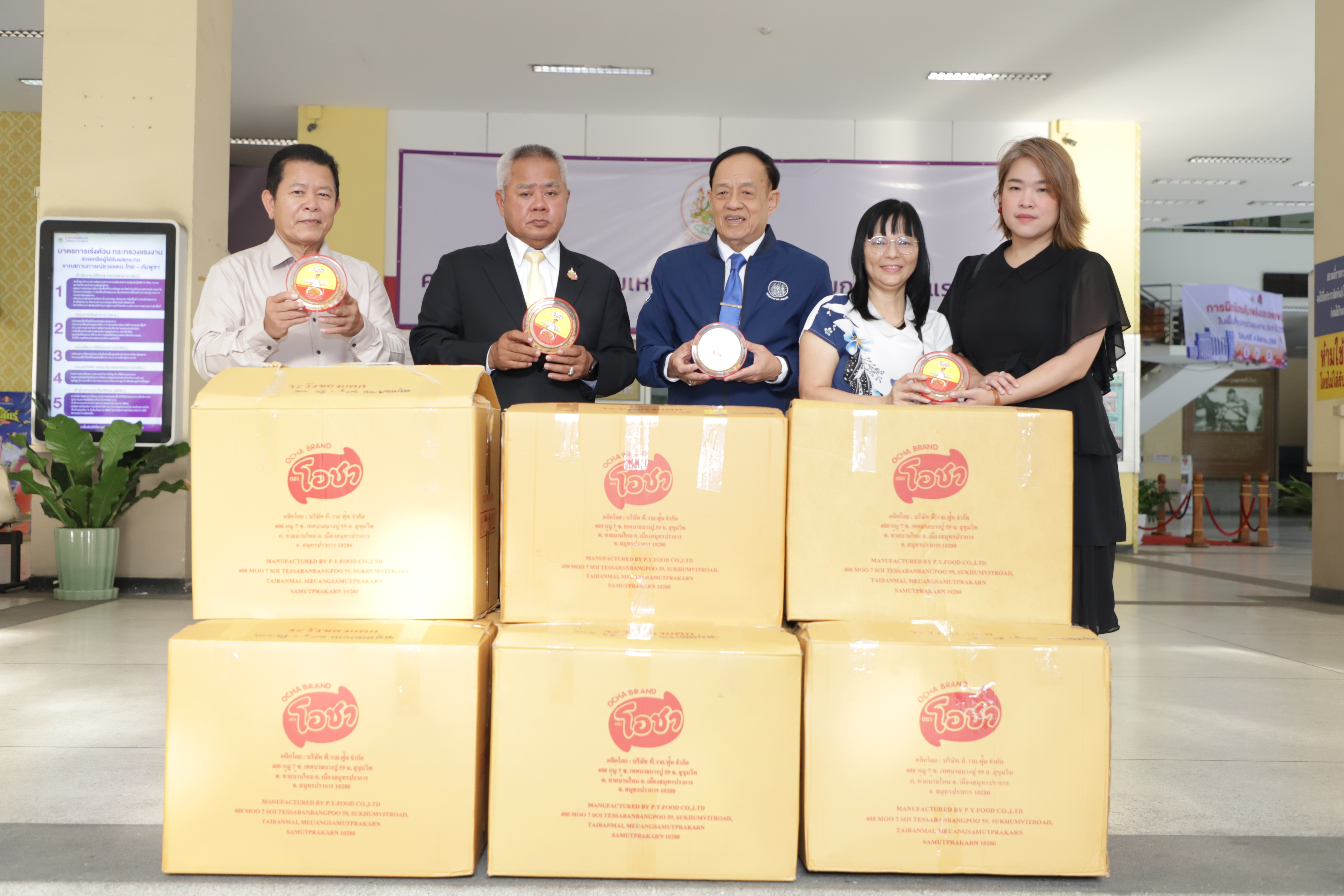 วันที่ 1 สิงหาคม 2568 เวลา 17.30 น. นายบุญสงค์ ทัพชัยยุทธ์ ปลัดกระทรวงแรงงาน รับมอบหมูหยอง ตราโอชา จำนวน 500 ชิ้น มูลค่า 15,000 บาท จาก บริษัท พี.วาย. ฟู้ด จำกัด นำโดย คุณชัยโรจน์ ฤทธิเมธีเศรษฐ์ เพื่อให้กระทรวงแรงงานนำไปช่วยเหลือผู้ประสบอุทกภัยในพื้นที่จังหวัดภาคเหนือภาคตะวันออกเฉียงเหนือ และผู้ประสบภัยจากการสู้รบบริเวณชายแดนไทย – กัมพูชา ณ บริเวณโถงชั้นล่าง อาคารกระทรวงแรงงาน