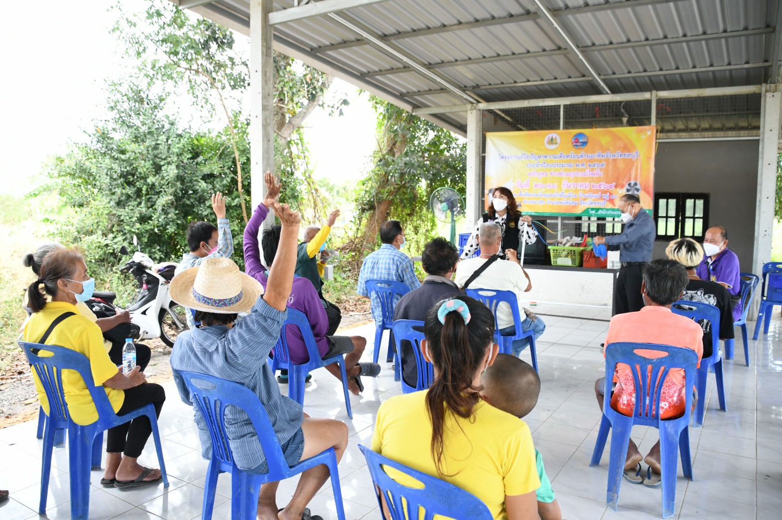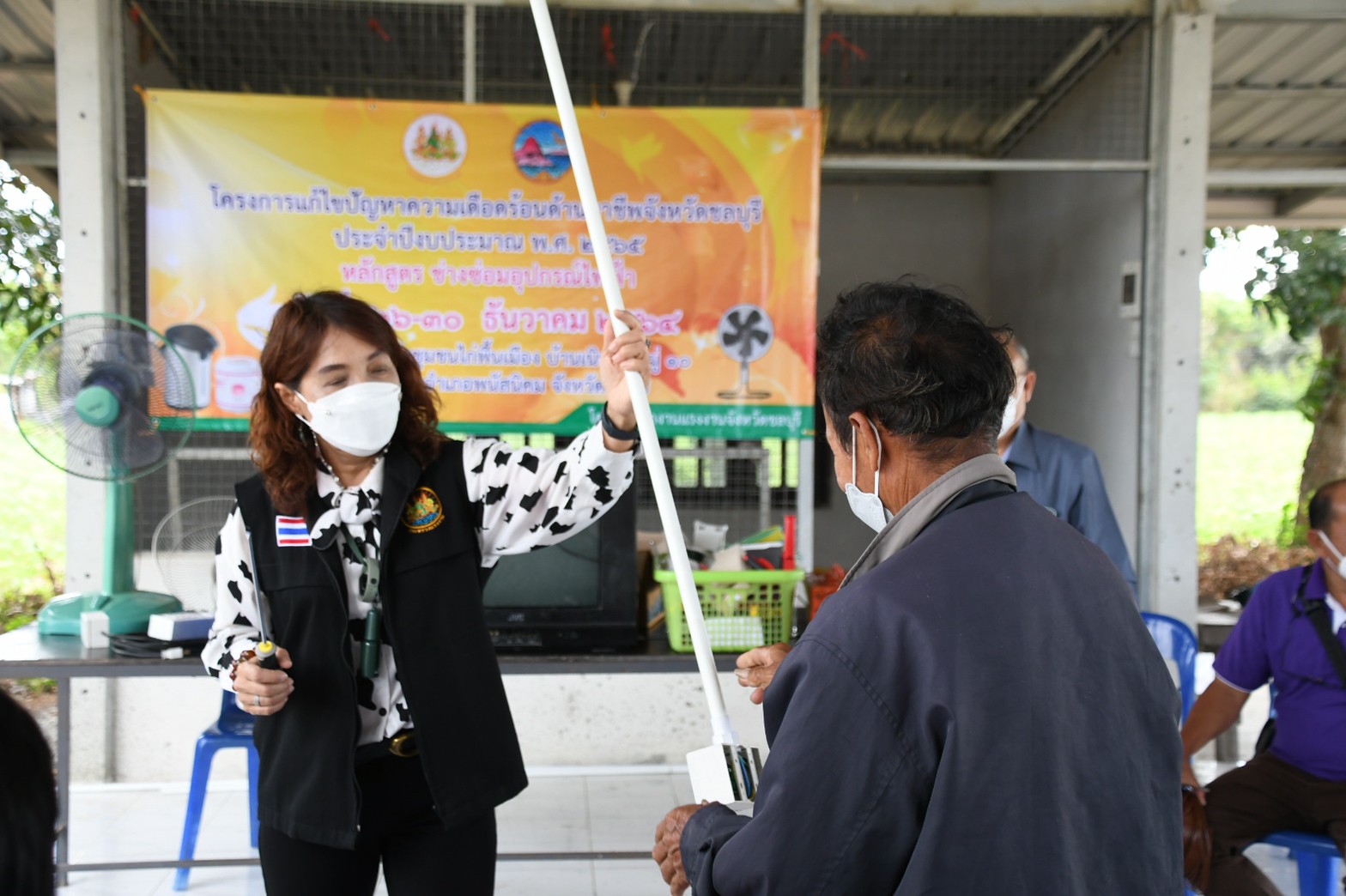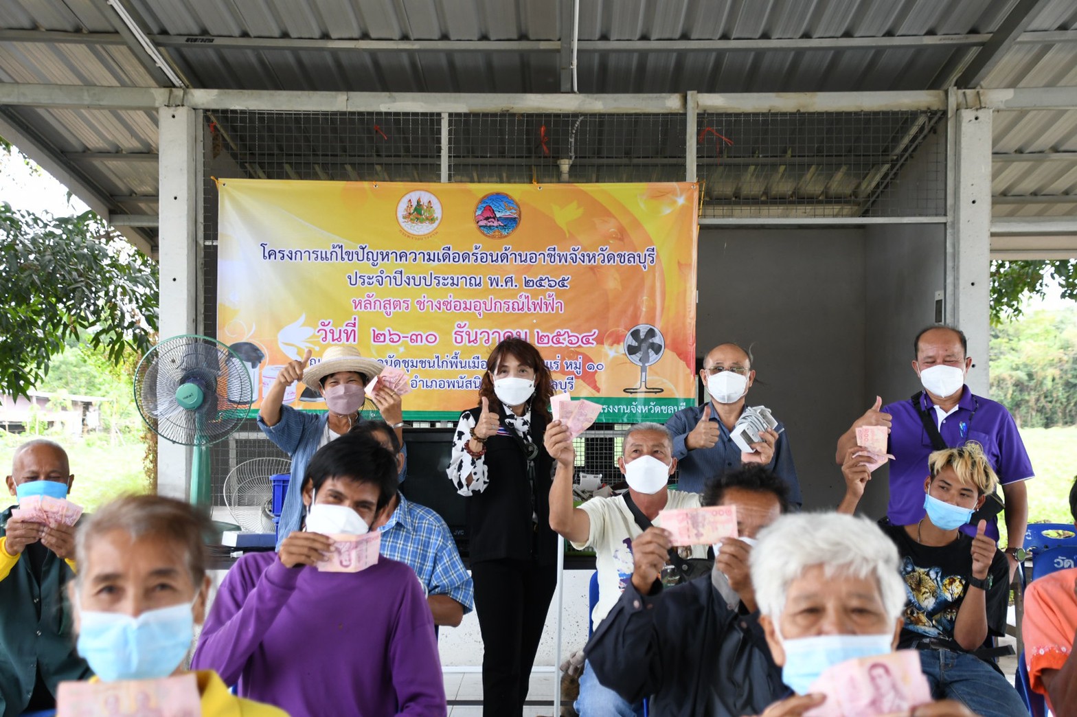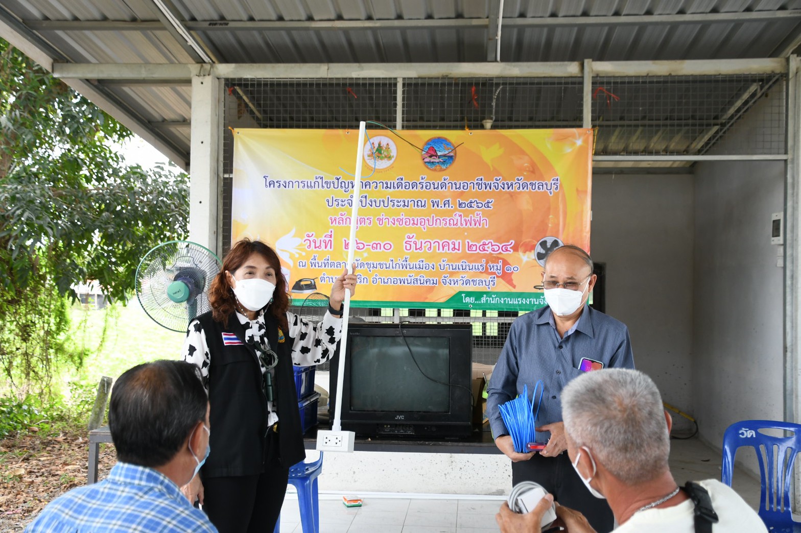 วันที่ 30 ธันวาคม 2564 เวลา 10.00 น. นางสาวกรจิรัฏฐ์ พงจันทร์ศธร แรงงานจังหวัดชลบุรี ลงพื้นที่ปิดโครงการแก้ไขปัญหาความเดือดร้อน ด้านอาชีพ กิจกรรมพัฒนาทักษะฝีมือ หลักสูตร “ช่างซ่อมอุปกรณ์ไฟฟ้า” ณ ตลาดนัดชุมชนไก่พื้นเมือง บ้านเนินแร่ หมู่ 10 ตำบลนาเริก อำเภอพนัสนิคม จังหวัดชลบุรี มีผู้เข้ารับการฝึกอบรม จำนวน 16 คน